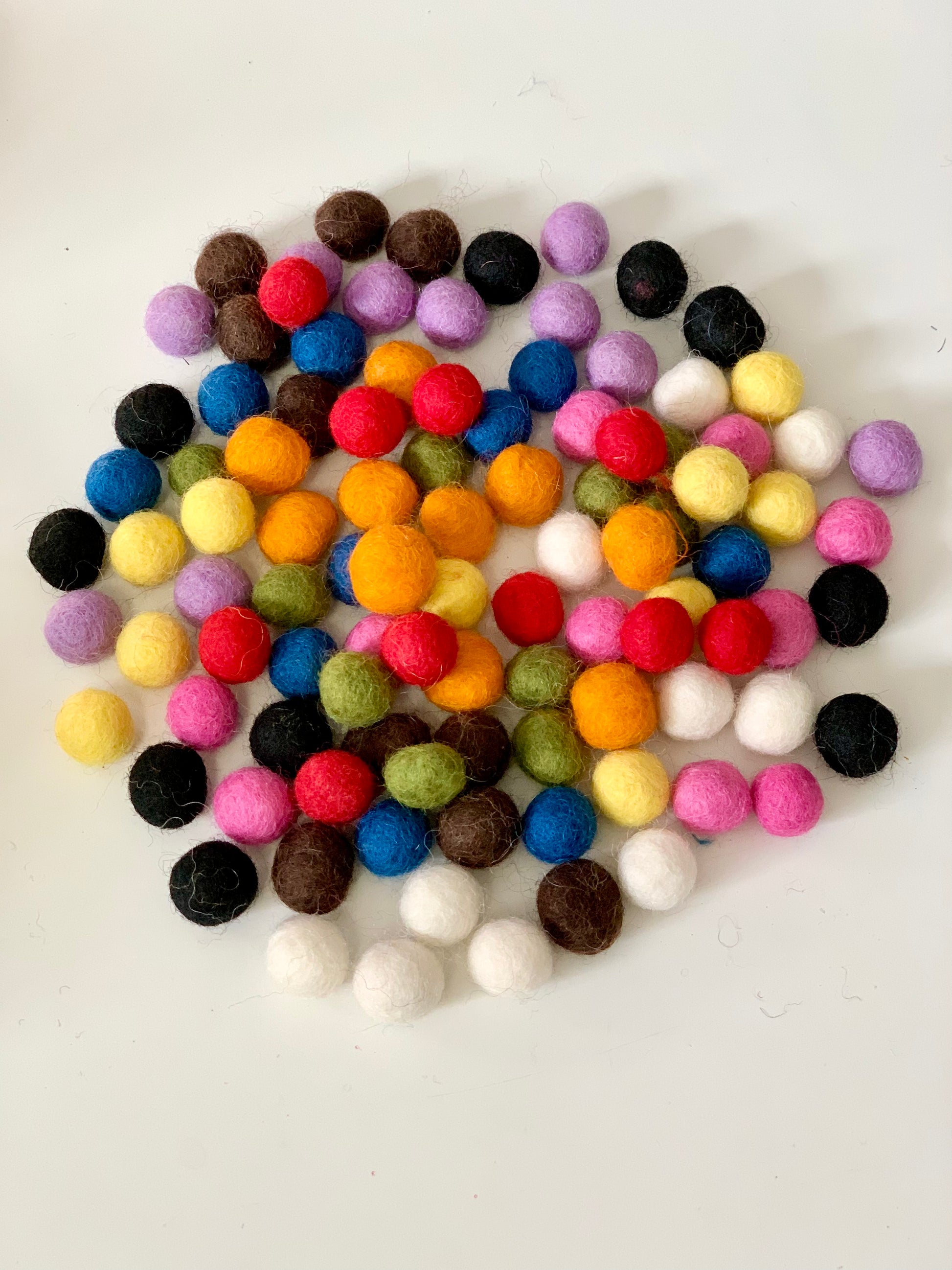 100 felt balls. Each ball is approximately 1.2cm - 1.5cm in size.
