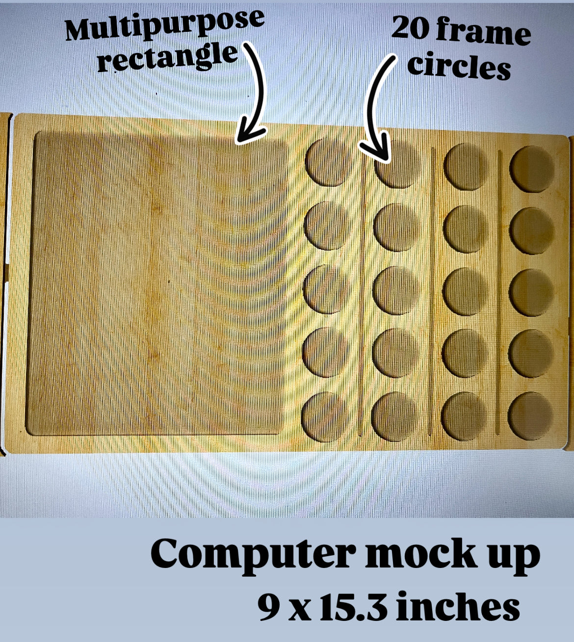Rectangle is the same size as the rectangle for our large multipurpose board. All of the inserts found here and here for the rectangle portion will fit inside. It also fits 20 of our 1.1” dry erasable discs.