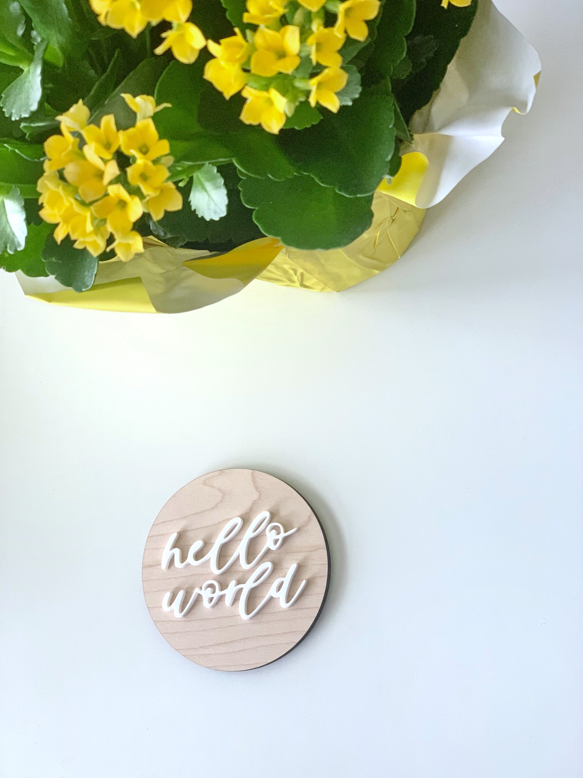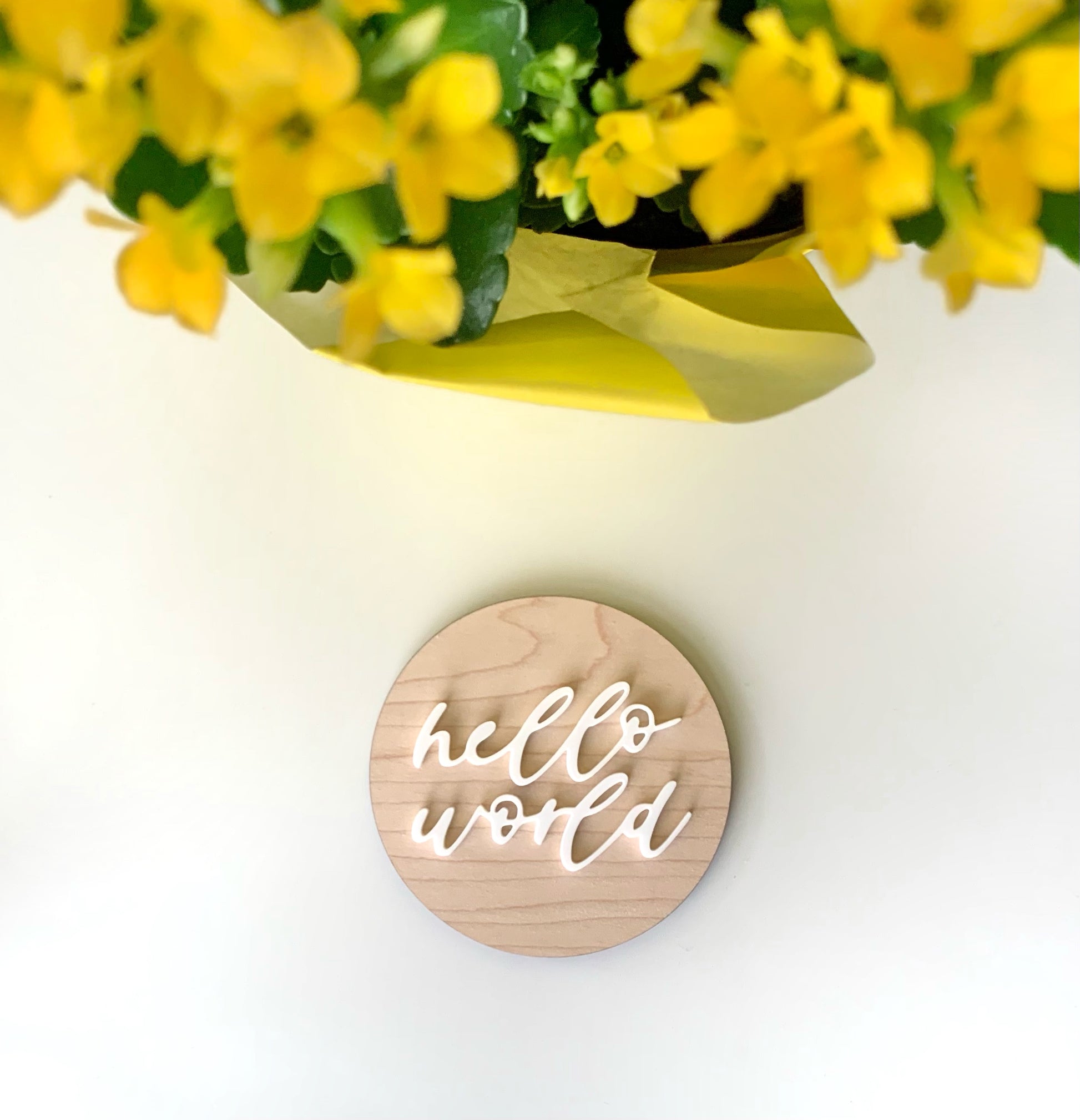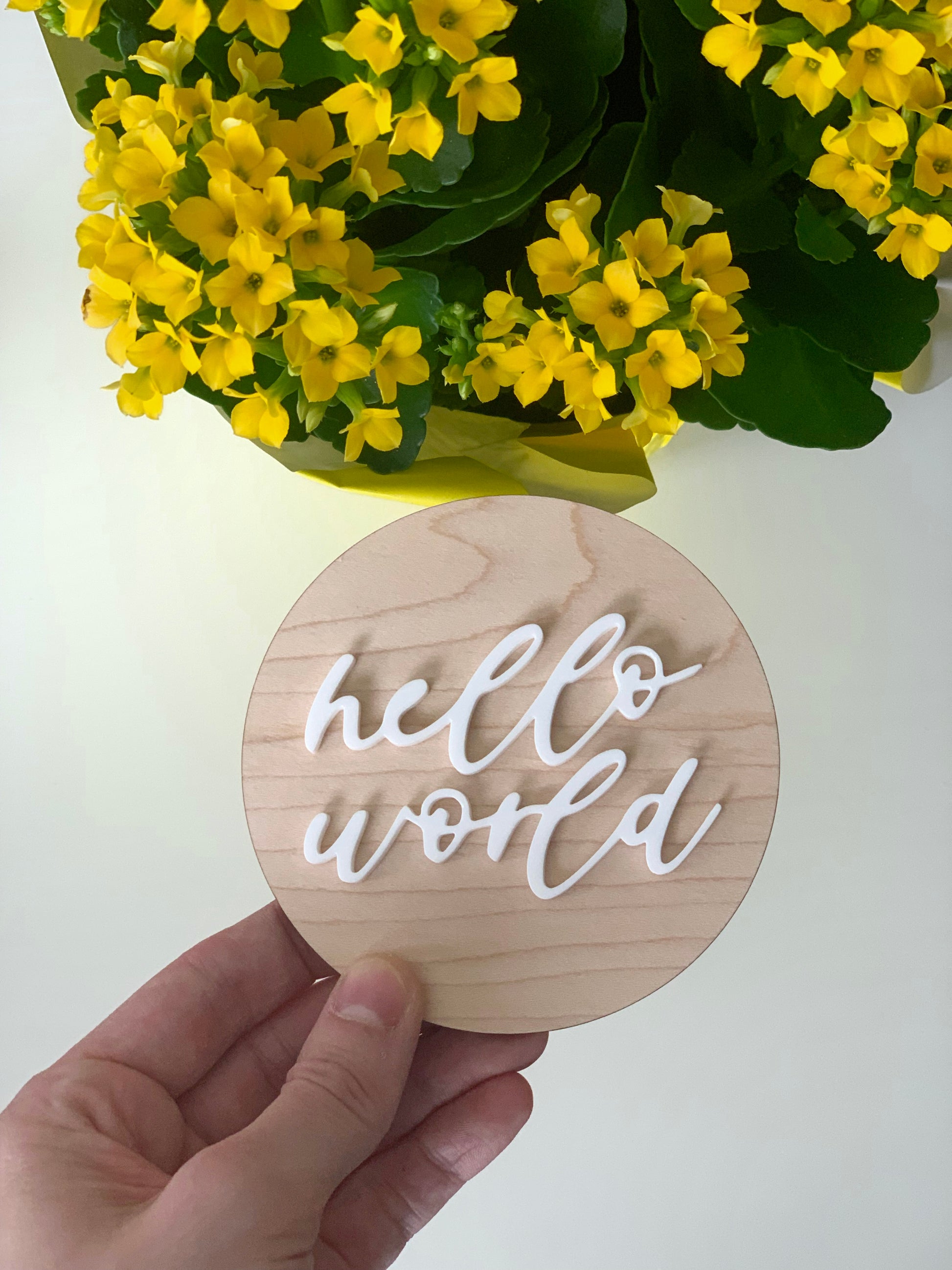Each disc is 4” in diameter and made from 1/4” maple plywood and 1/8” acrylic. It is a formaldehyde free plywood — being fused together with soy instead of yucky air contaminant formaldehyde. It contains 100% natural wood bonded with a food-grade soy-based adhesive that does not emit toxic air contaminants. The 3D portion is made from acrylic (plexiglass).