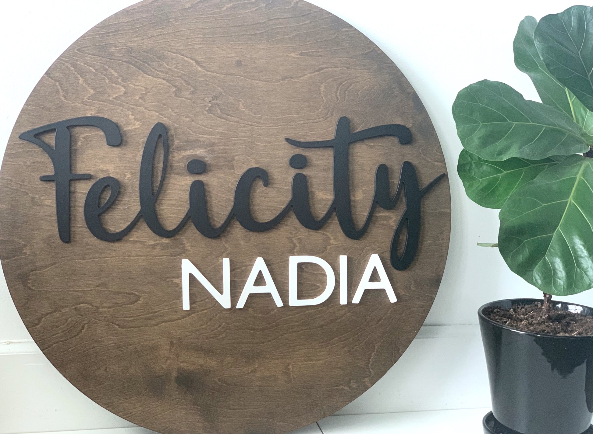 Each sign is made in house in our small family shop. Everything is cut in house — Each piece is hand sanded and hand painted with love. They are not mass produced and may have small perfect imperfections. We feel these perfect imperfections add to the beauty and uniqueness of your sign.