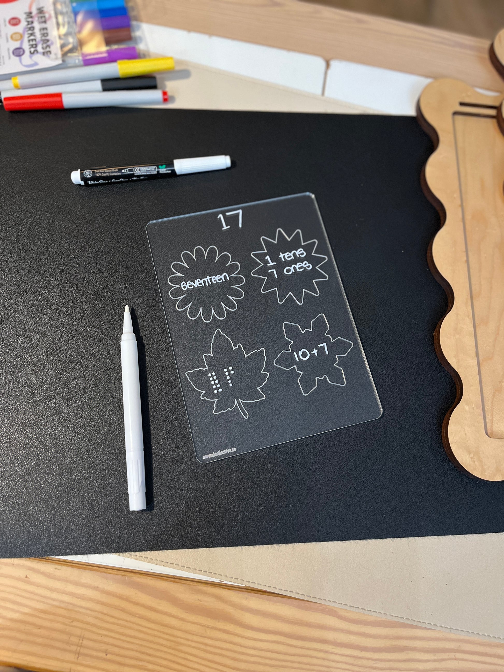 Use them with dry erase markers, chalk markers or wet erase markers and pair with your favourite trays or learning stations for an easy grab and go activity.
