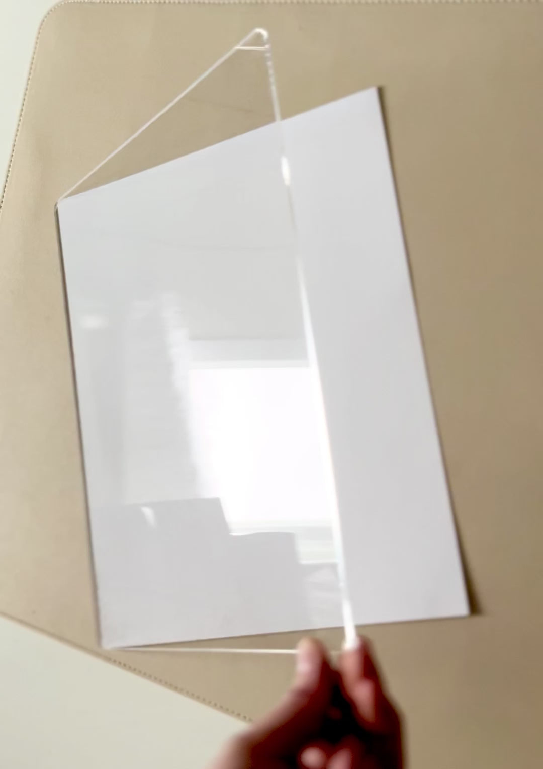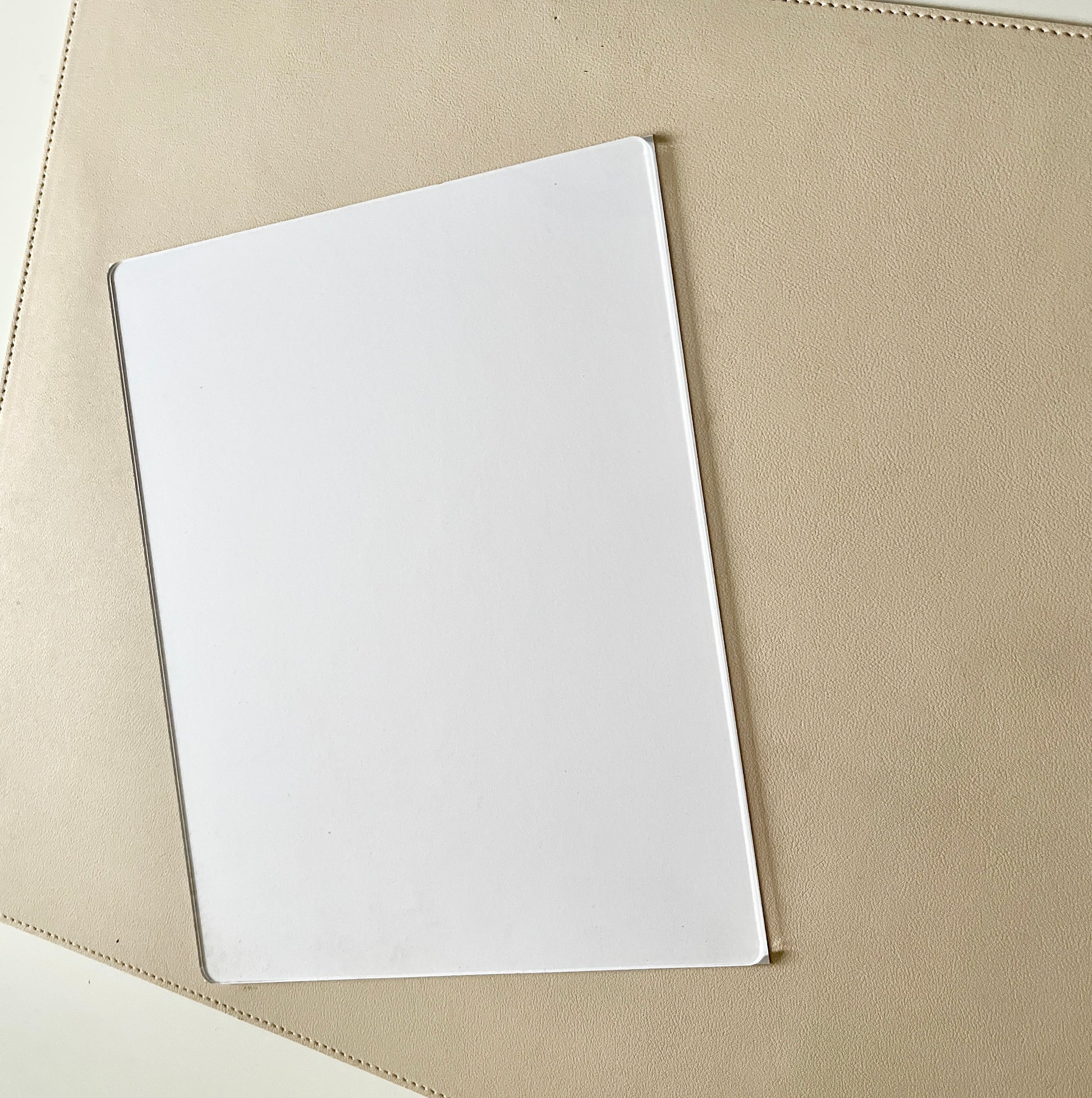 An 8.5 x 11 inch (printer paper size) clear dry erase acrylic sheet. Use this over top your homeschool workbooks and worksheets to be able to use them over and over again and leave them unmarked.