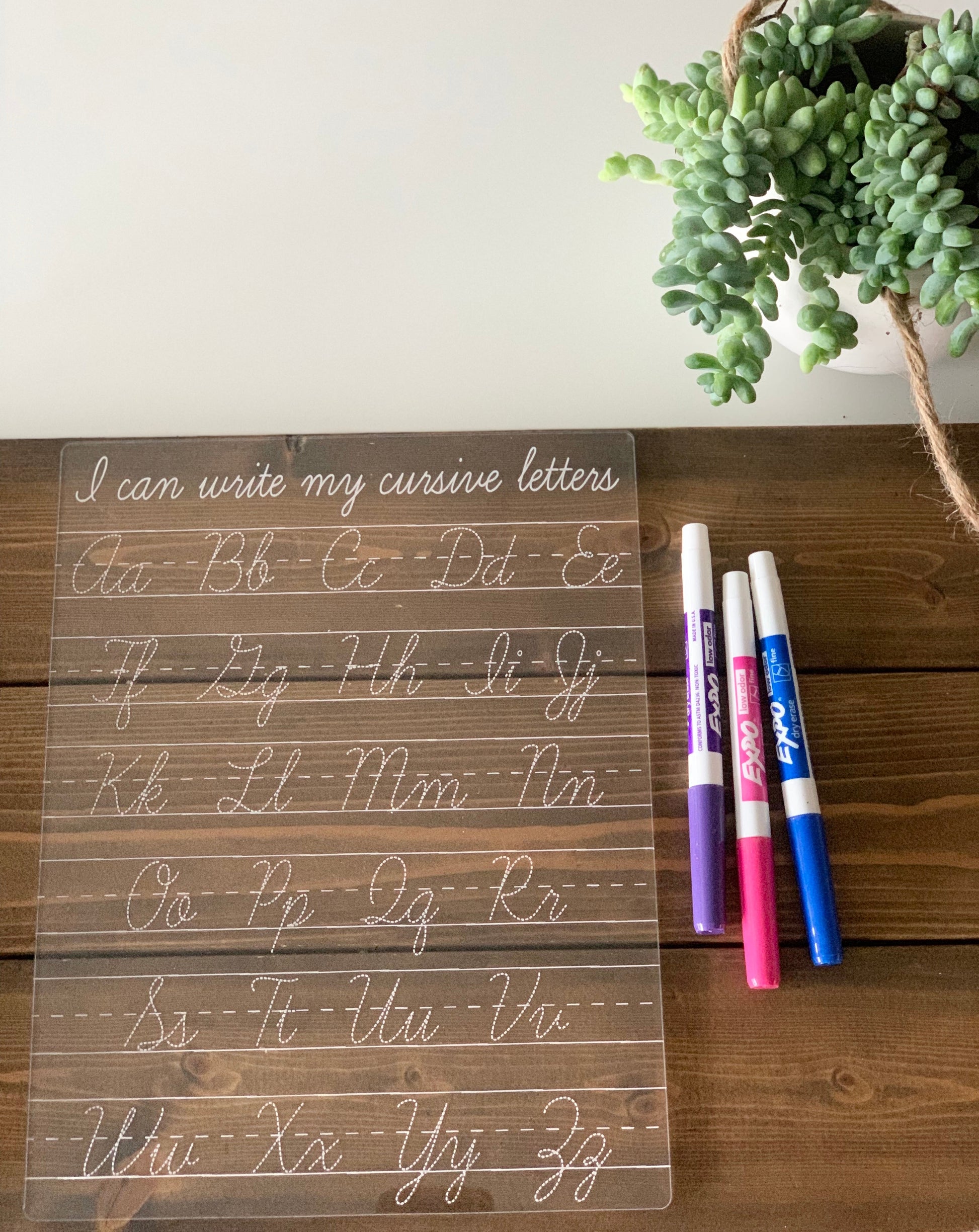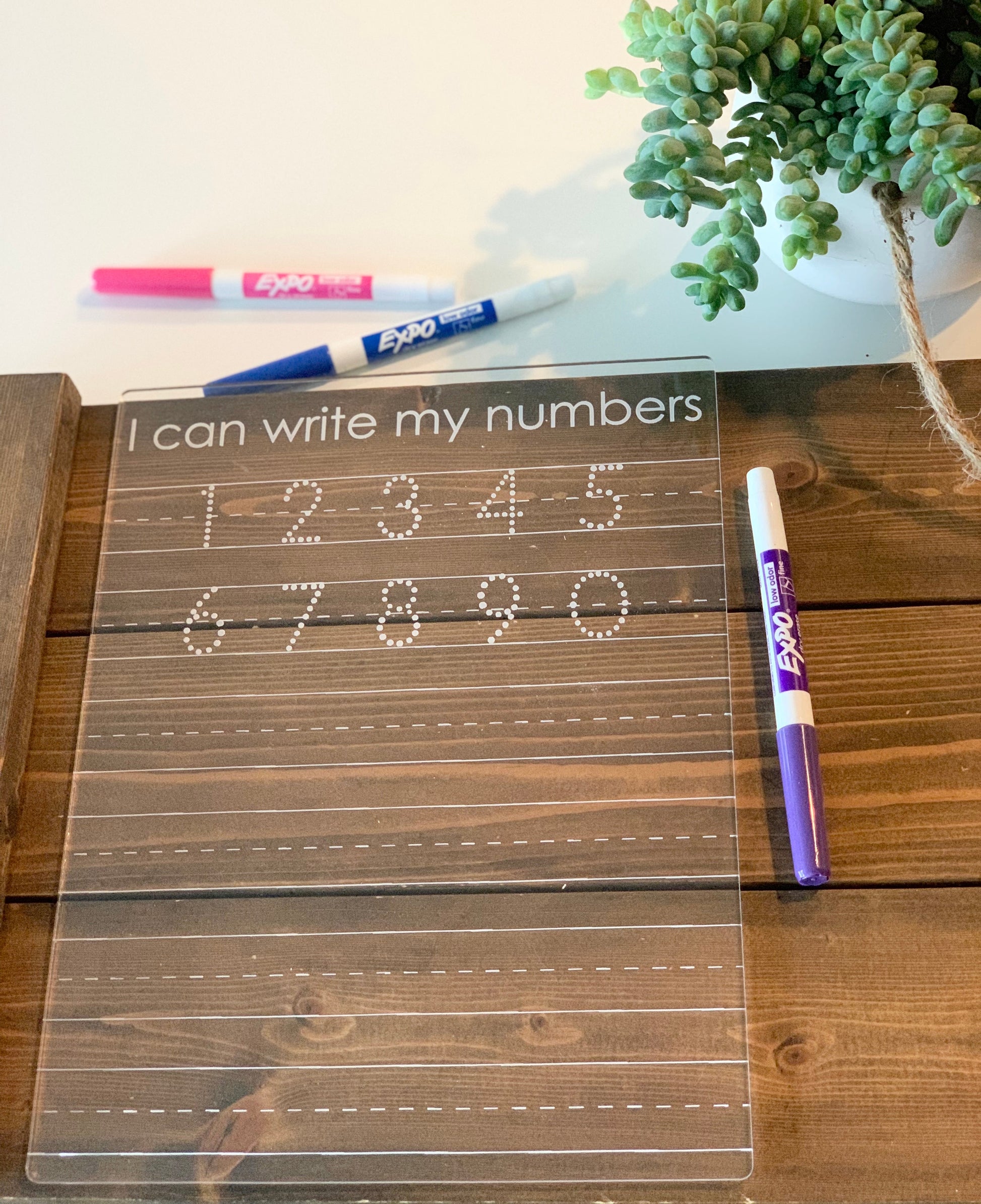 Tracing & Writing Boards made from Acrylic (Plexiglass). Please leave name(s) for the name tracing board (if chosen) in the personalization details area. Sizing of letters may vary depending on name length, but will be kept as close to the sample as possible.