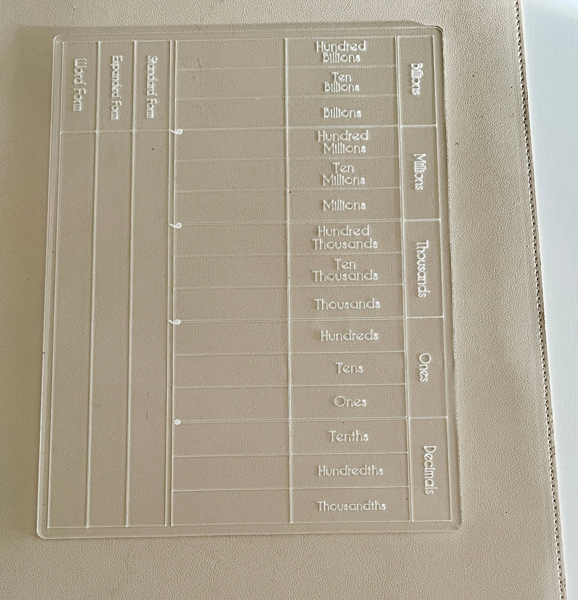 Acrylic Dry Erase Tracing Board — Place Value Chart Math