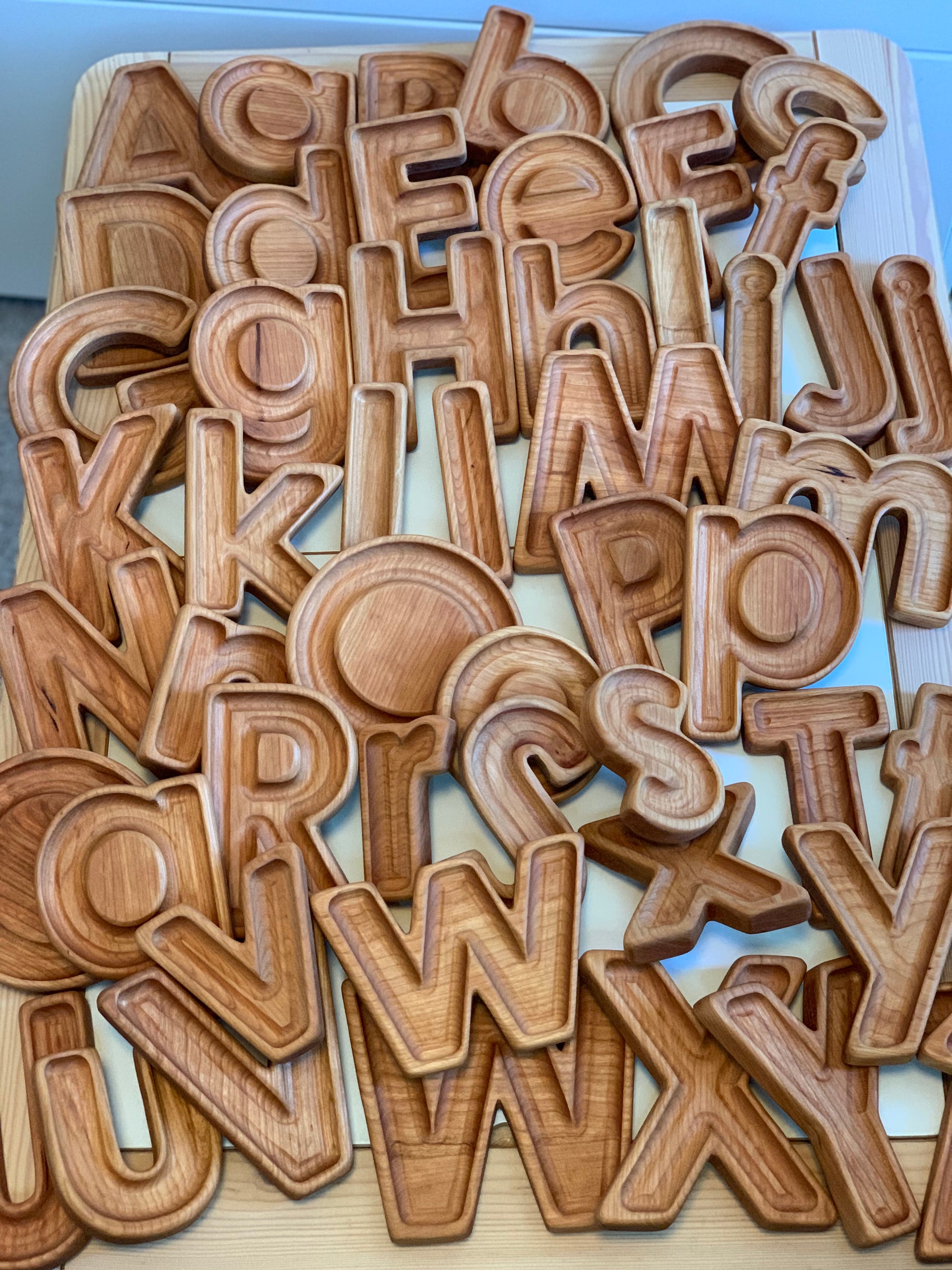 These are just beautiful. Heirloom quality. Solid wood, great size and the smell of the freshly burned image on the one side is amazing. The image comes out nice and clean in playdough and no bits get stuck in the stamp (at least from what I’ve tried so far). I’m going to order the upper case ones as well.