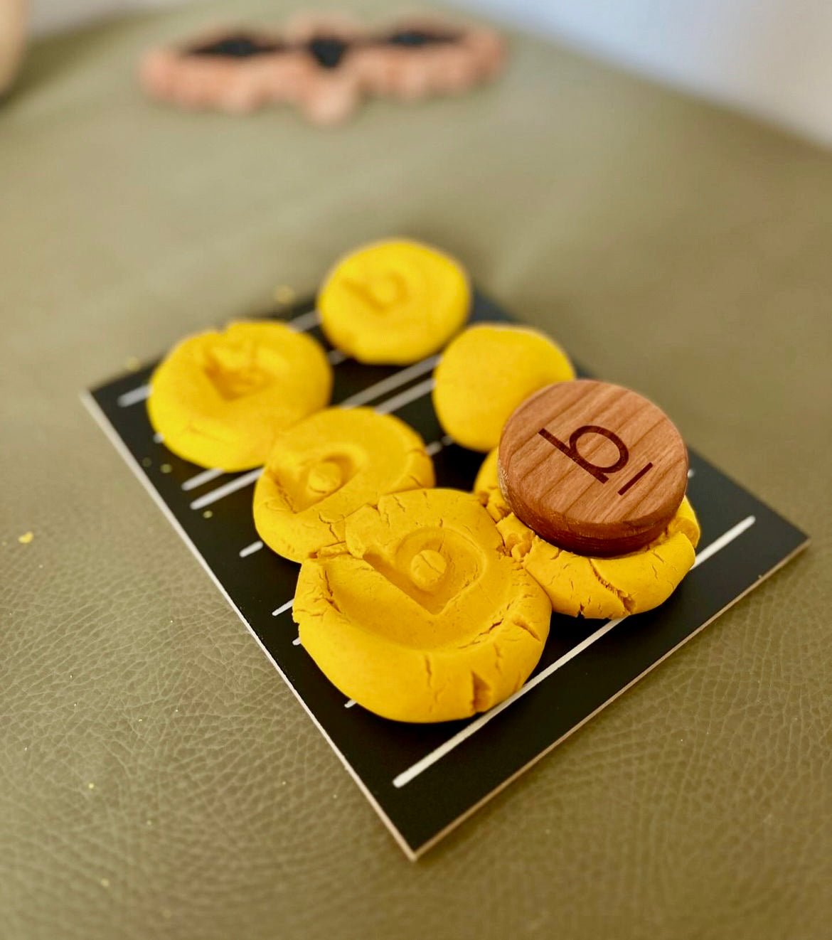 Help your little one learn their letters while playing with their play dough! Expanding their play with learning, these stamps can help your little one to learn their letters while playing with their favourite sensory dough, dirt, sand or clay! Have them spell out objects in their view, their names, and the alphabet!