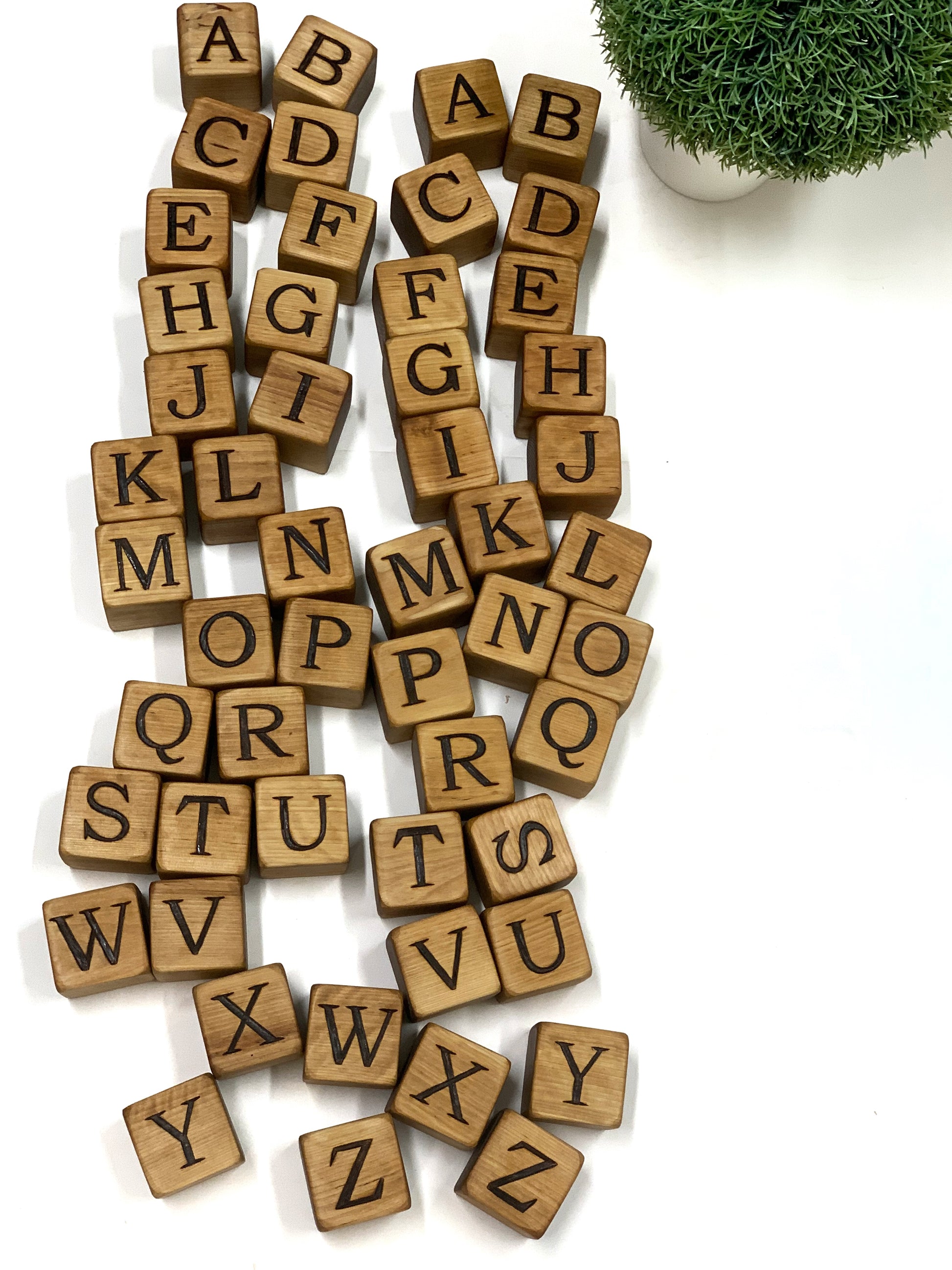 A classic learning toy, wood alphabet blocks help improve motor skills and hand eye coordination. They are also the perfect baby gift; these wood blocks will help children learn to play by stacking and knocking over the blocks as they grow up. These can also be a great learning tool for your child to learn how to spell. These natural wood toys are sourced from North America, and will be a cherished and long lasting toy for generations to come.