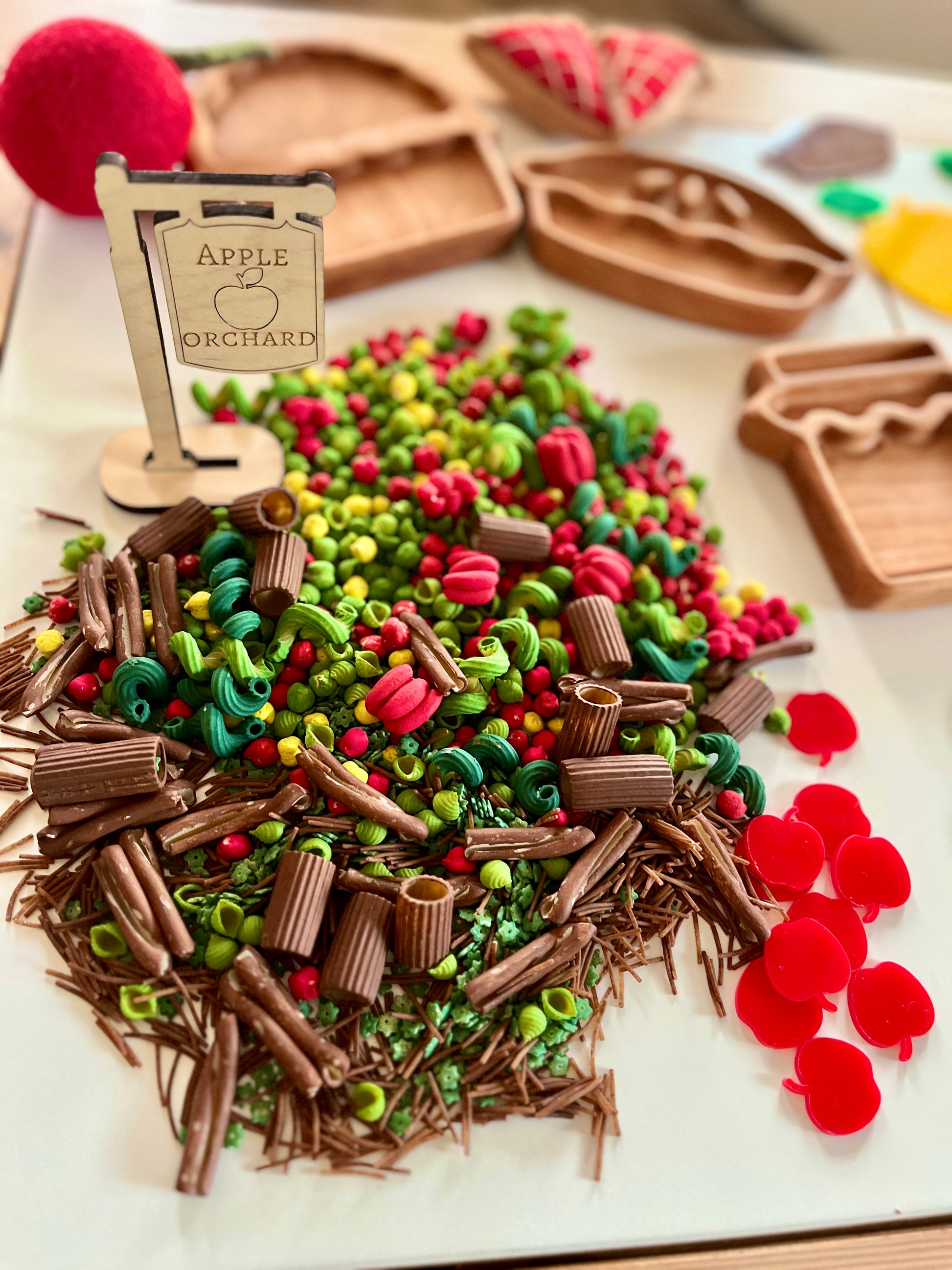 Perfect for sensory bins, small world play, and learning activities, this mix invites children to scoop, pour, and explore the textures of apple orchards. We pride ourselves on having sensory mixes with a wide variety of shapes and textures to explore. Pair it with our apple orchard trays, apple little dry erasables, felt apples, or more for endless open-ended fun!