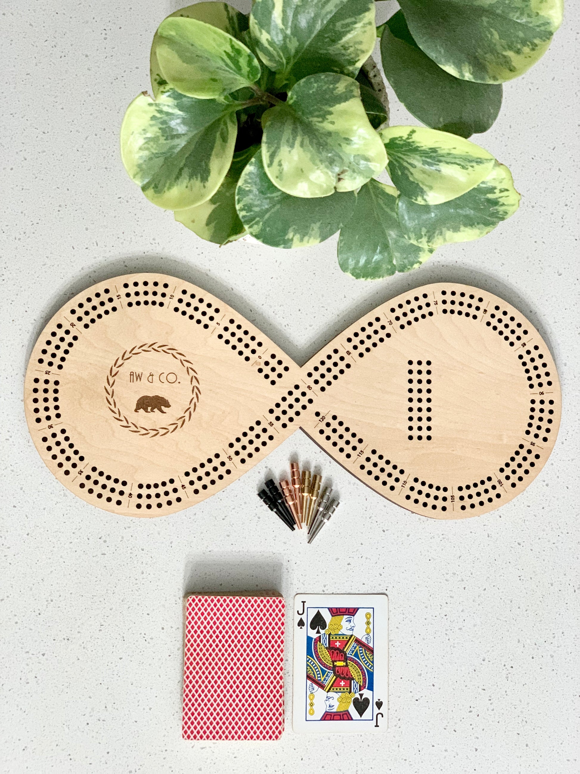 Introducing our beautifully crafted crib board, the perfect companion for classic card game enthusiasts! This elegantly designed crib board features a smooth wooden surface with intricate detailing, allowing you to keep score with ease during intense cribbage matches. Its compact size makes it ideal for travel, and the included metal pegs ensure durability and a touch of sophistication. Enhance your gaming experience with this timeless crib board, blending tradition with modern craftsmanship. Whether you're a seasoned player or new to the game, our crib board will elevate your cribbage sessions to new heights of enjoyment!