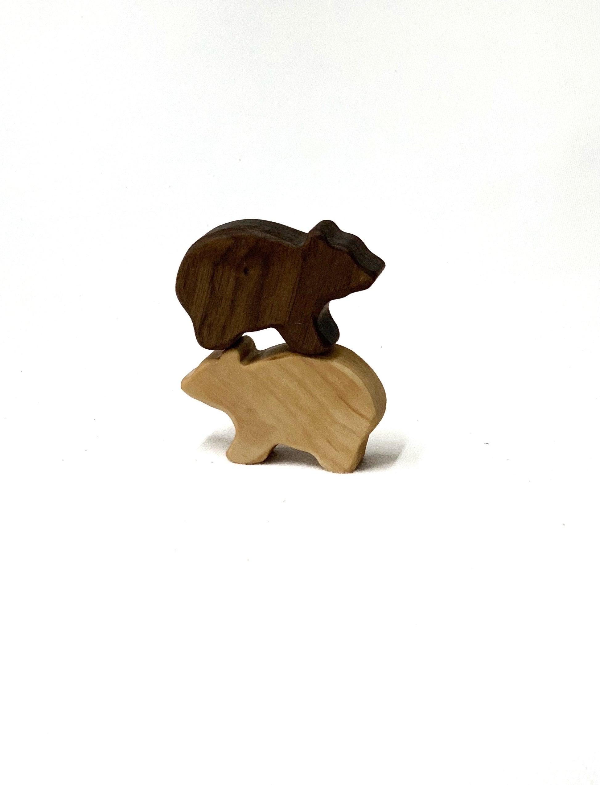 Each animal is cut in house, meticulously sanded smooth in every corner, nook and cranny; and finished with love. These heirloom quality toys are made to be passed down for generations. These are eco-friendly, safe, natural and long-lasting. Choose from beautiful light hardwood (maple) or rich dark hardwood (walnut).