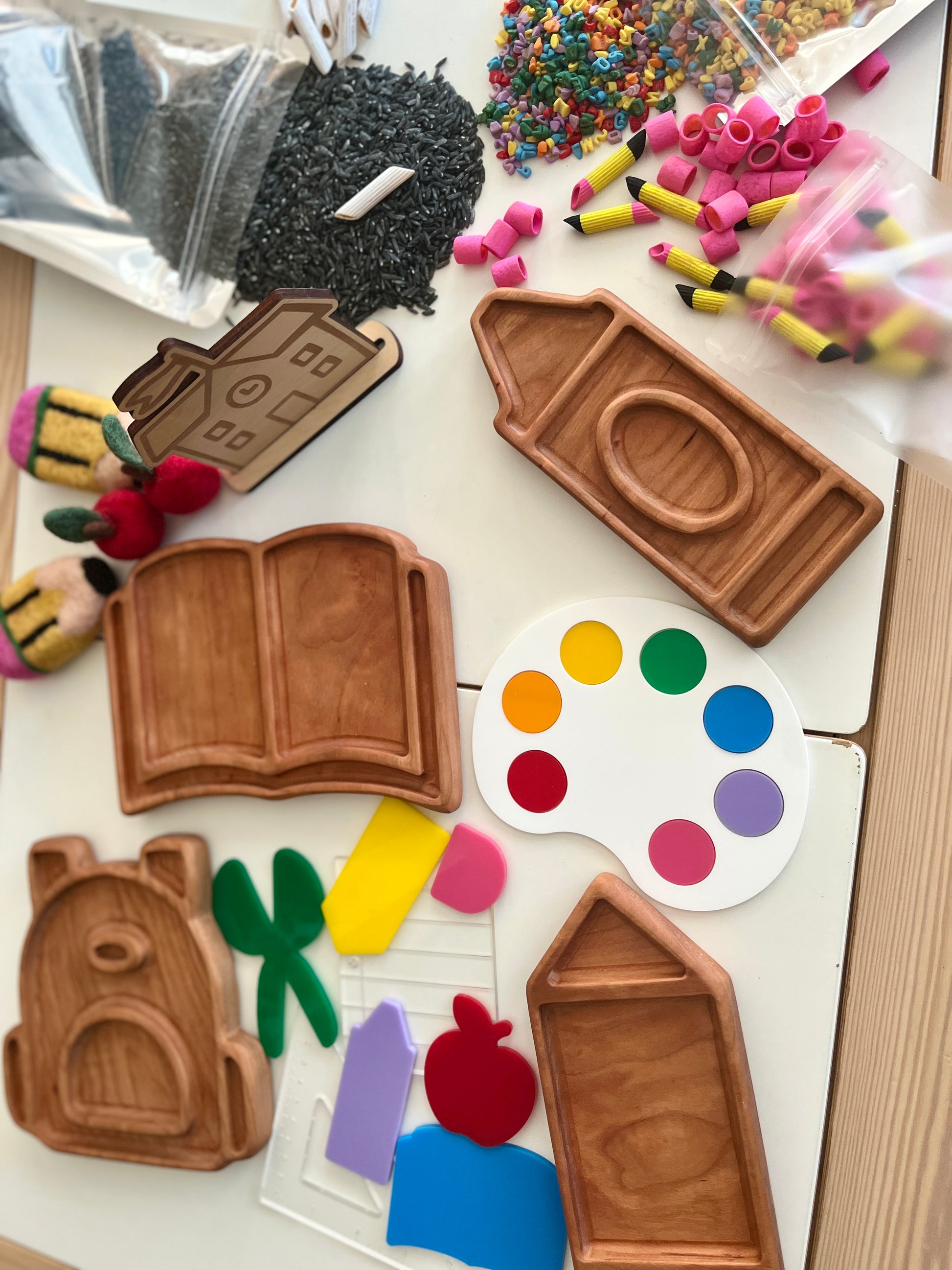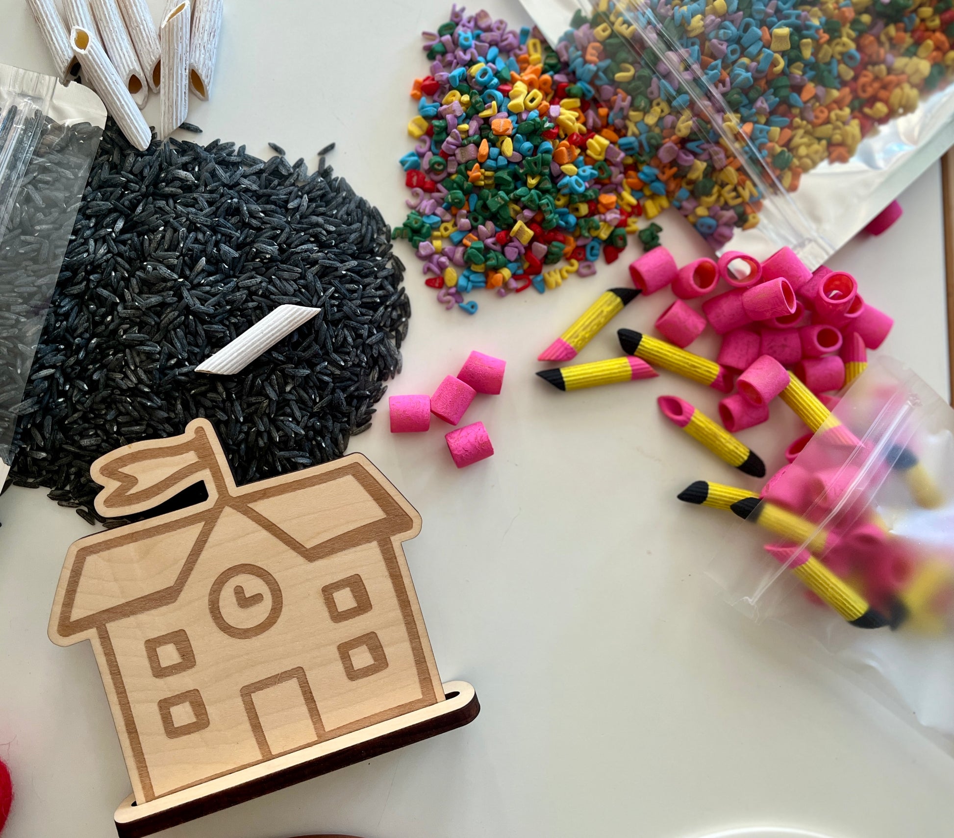 Back to School Fun Filler Sensory Kit with Laser Cut Wooden Schoolhouse