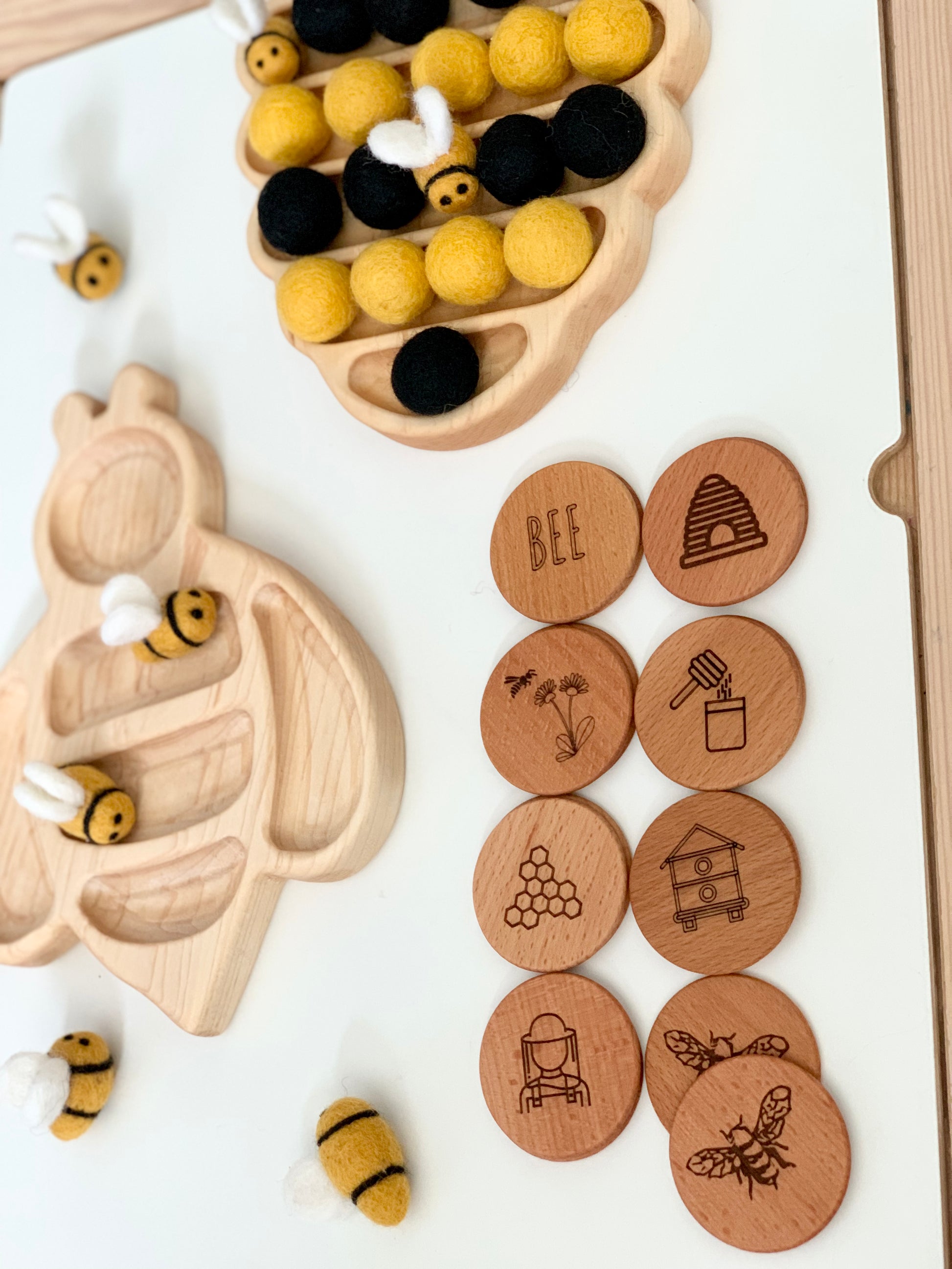 All images are laser burned into the wood, creating a permanent non toxic image. Order a set today to keep your little one busy.