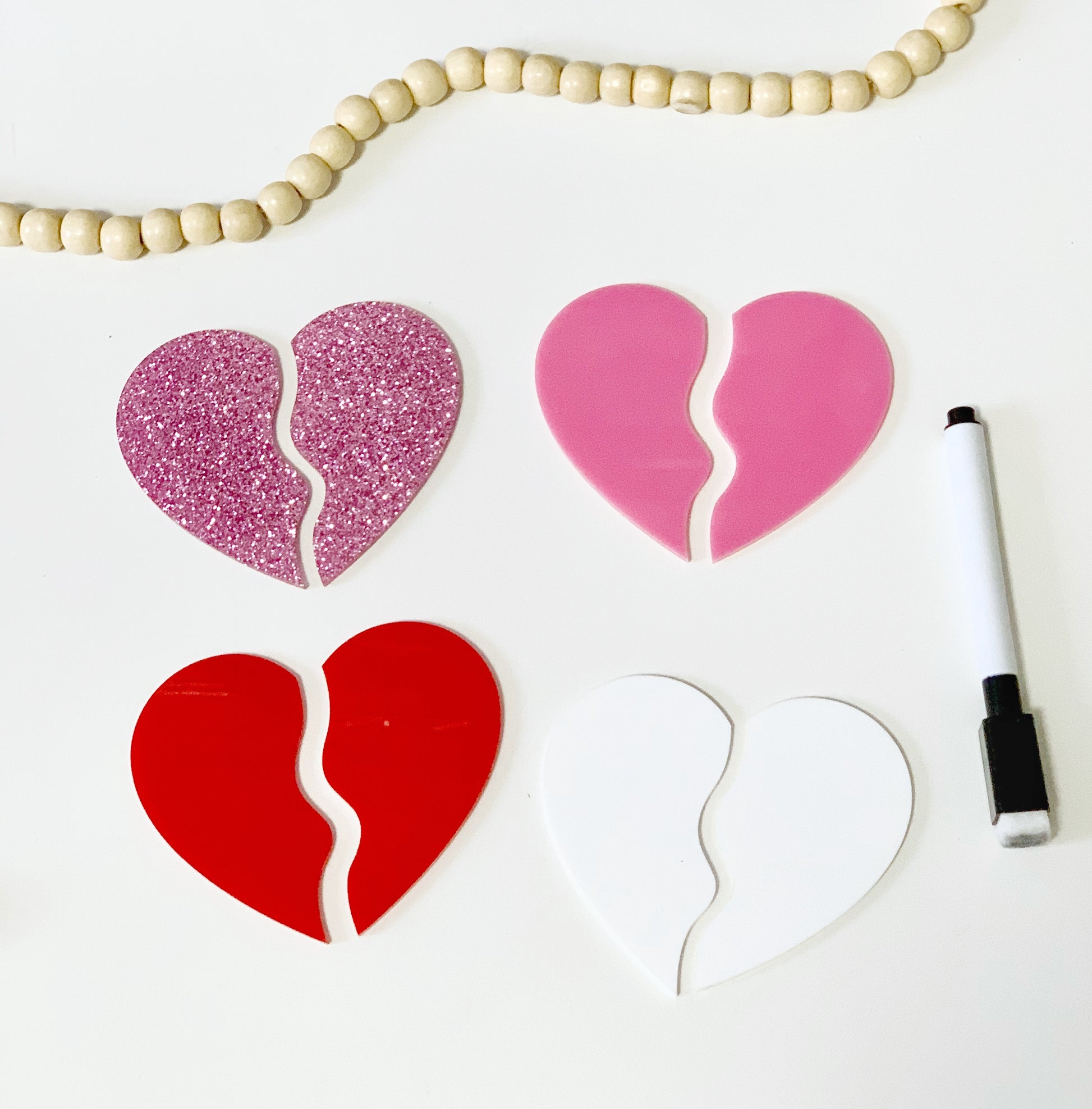 Little Dry Erasables - Broken Hearts - Set of 4 hearts / 8 pcs - more colours available
