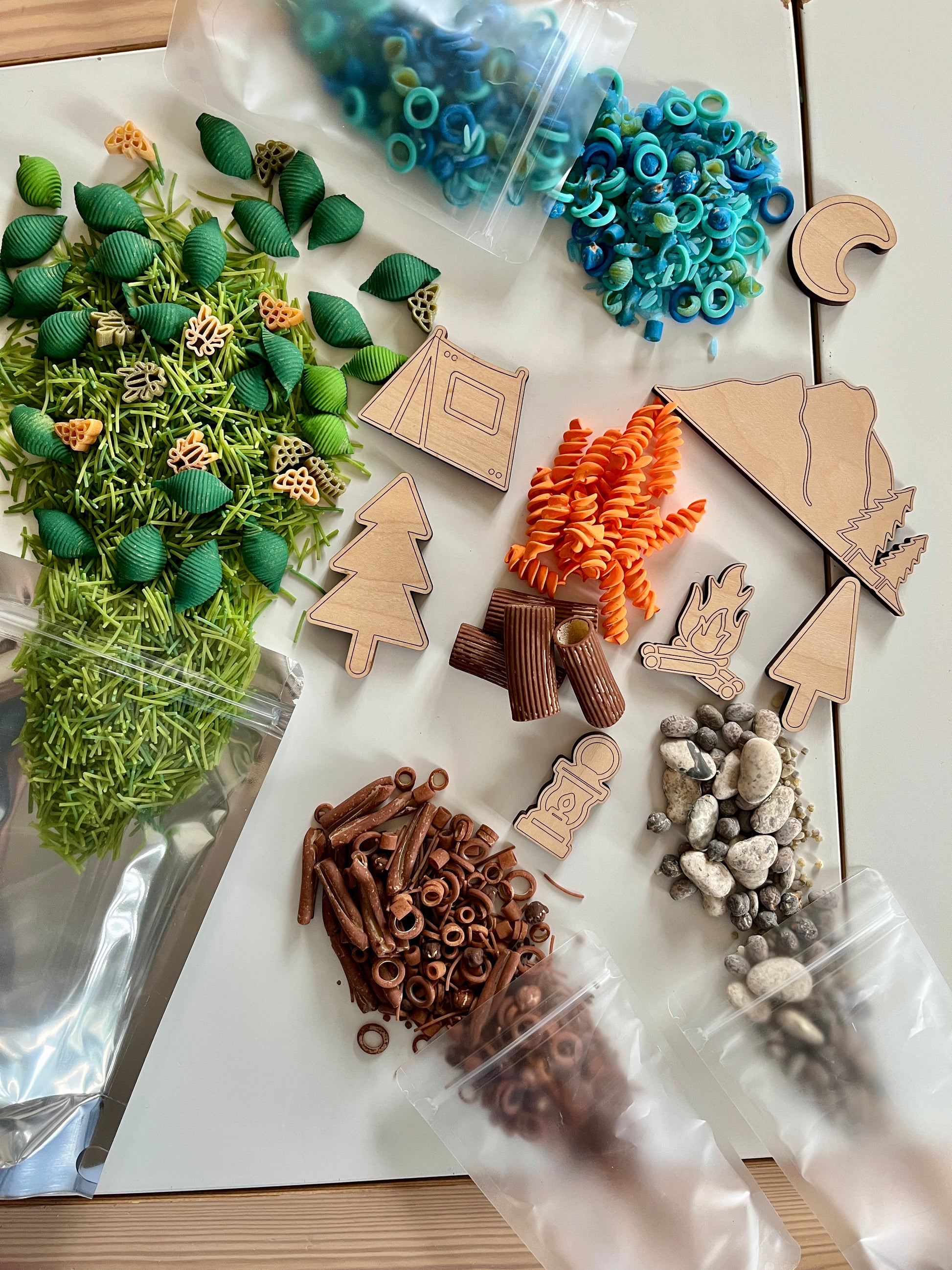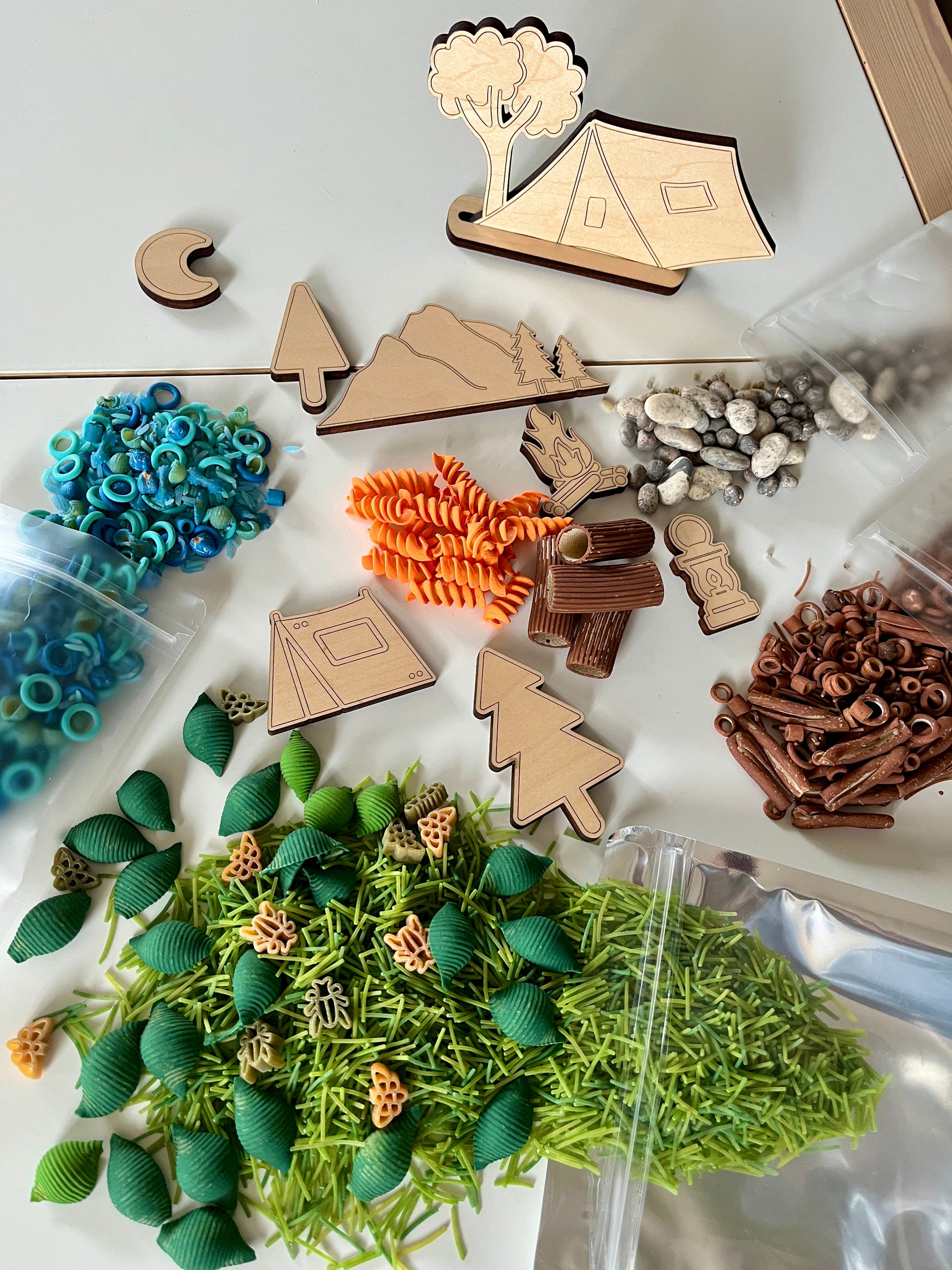 Camping Fun Filler Sensory Kit with Wood Parts