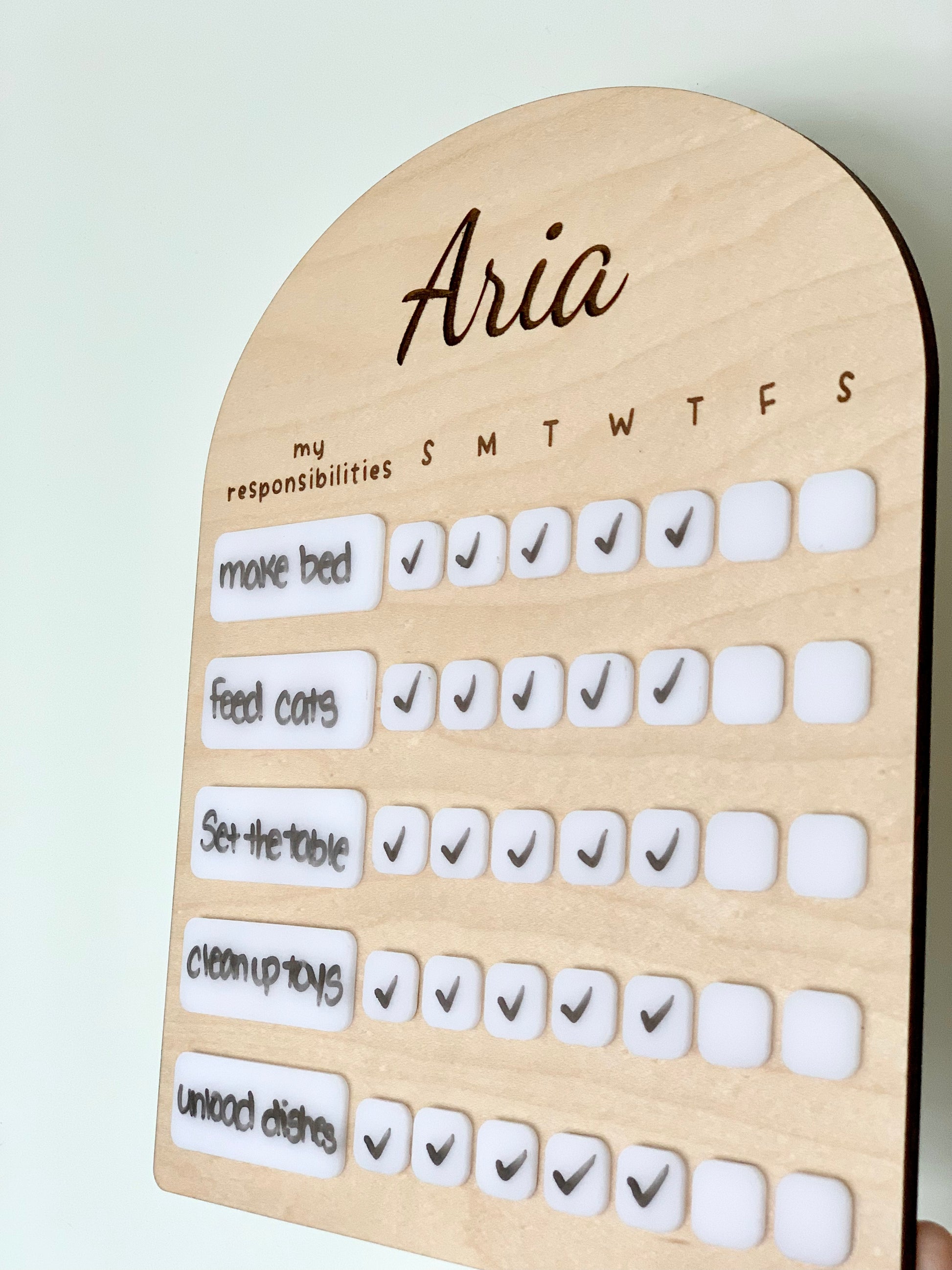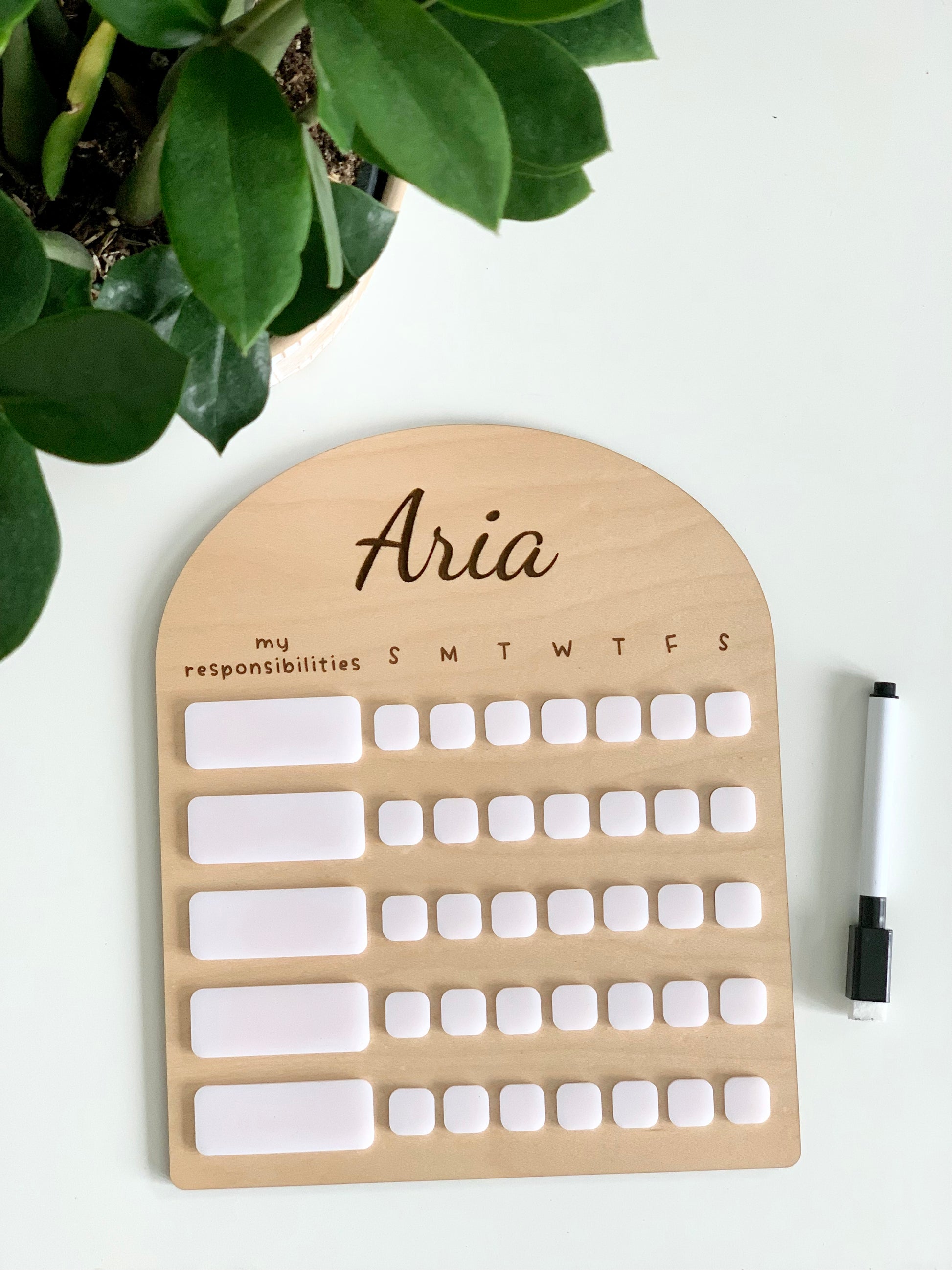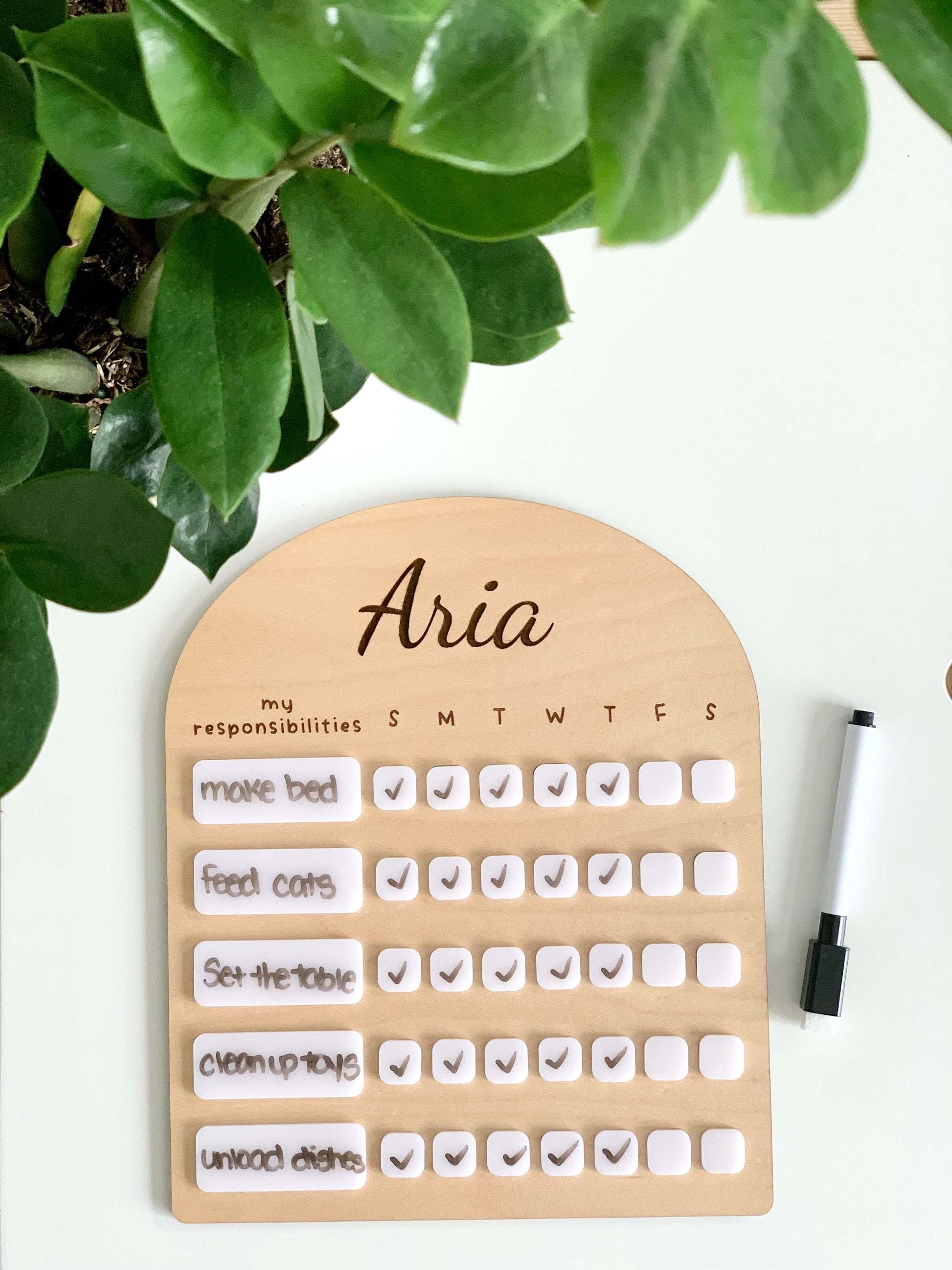 Personalized Chore Chart with White Acrylic Dry Erase 3D pieces. Please leave Personalization in the Personalization Details area.