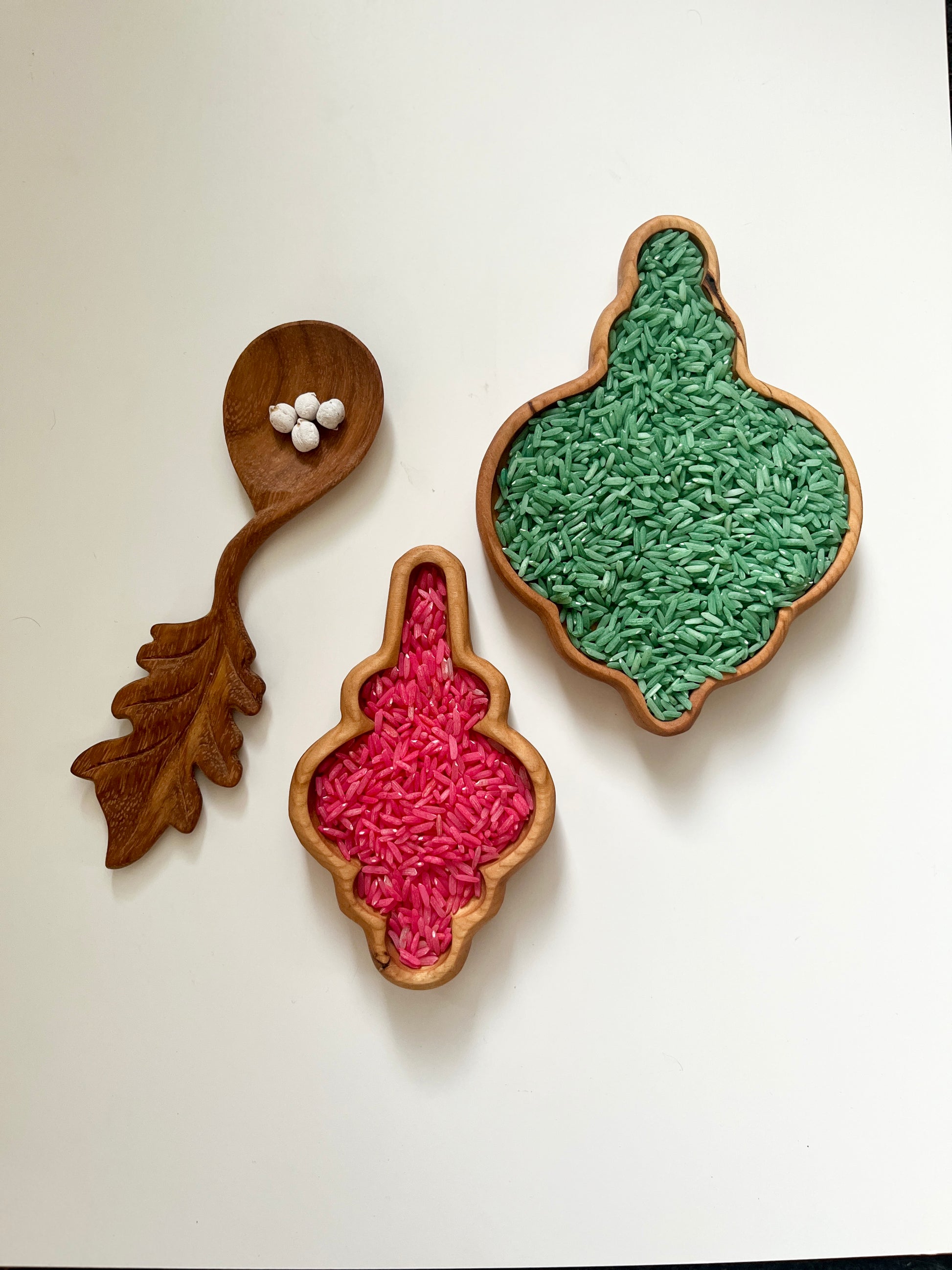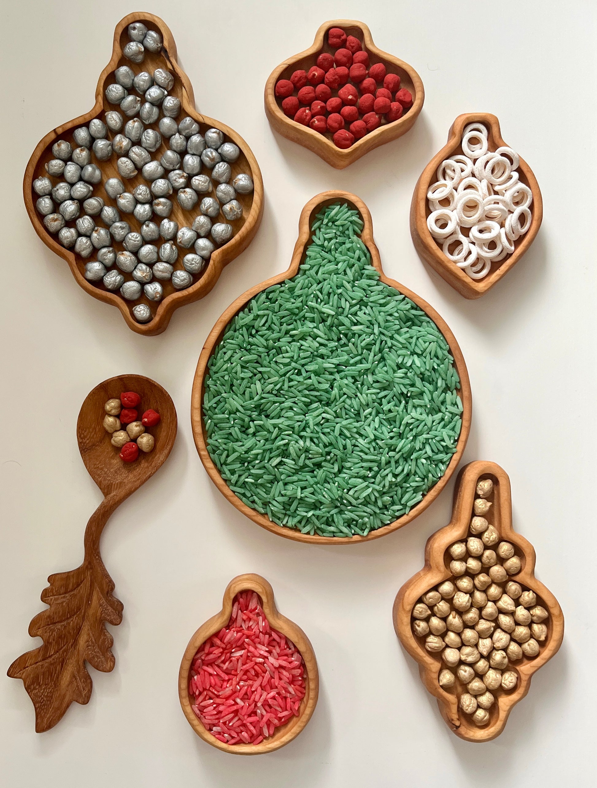 Sensory bin filler — rice, chickpeas or pasta rings. Spoon & Trays not included.
