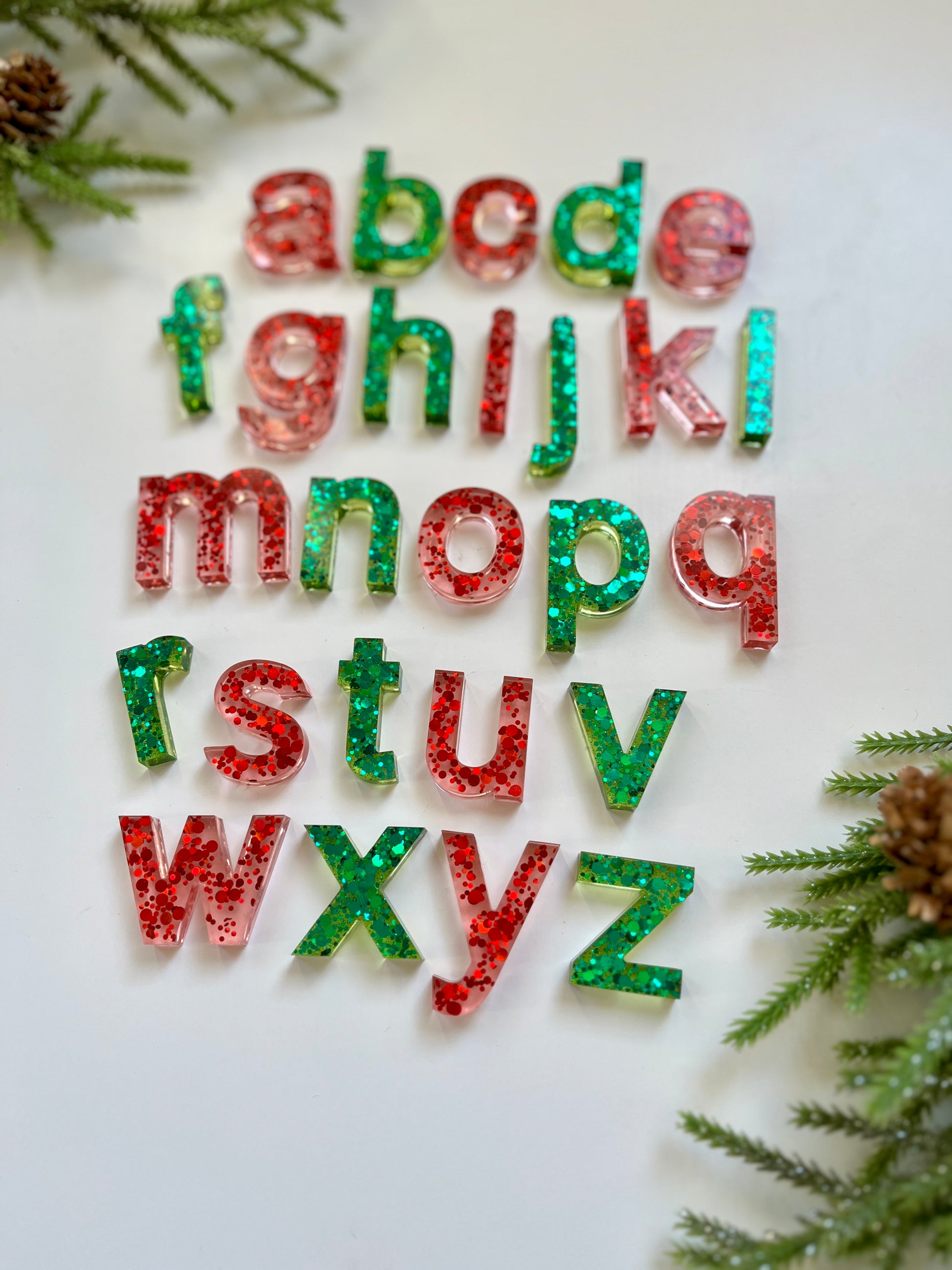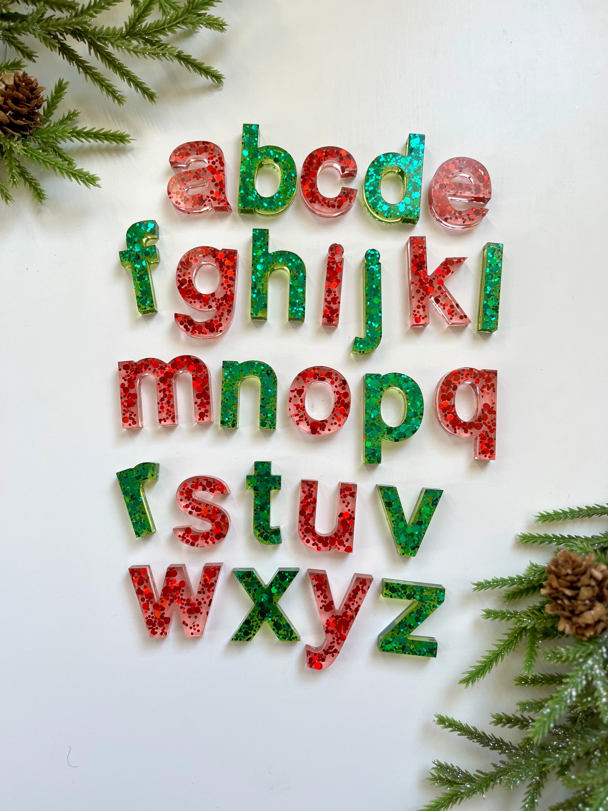 Christmas Glitter Resin Lowercase Alphabet • Fits Resin Letter Flisat Insert