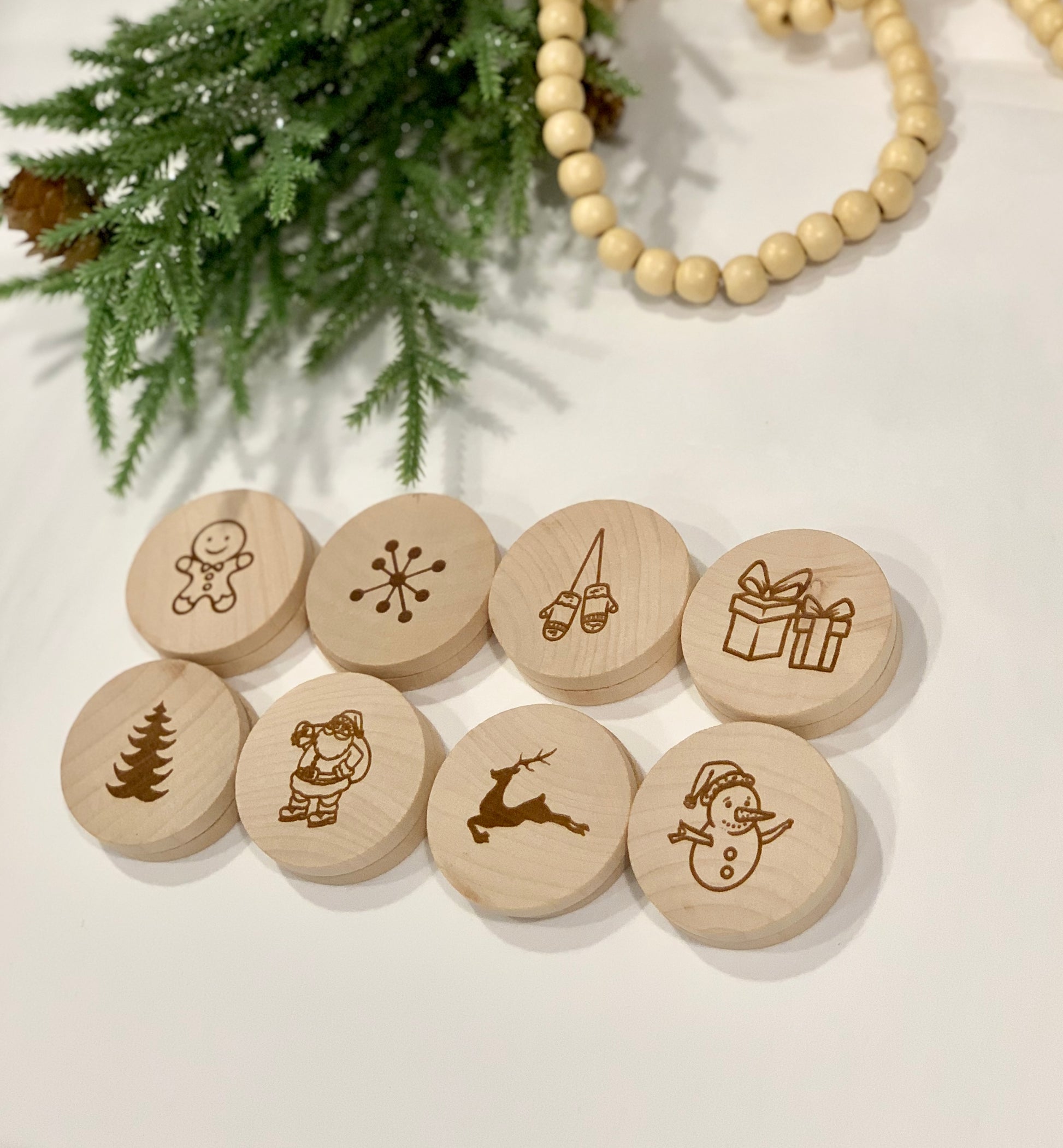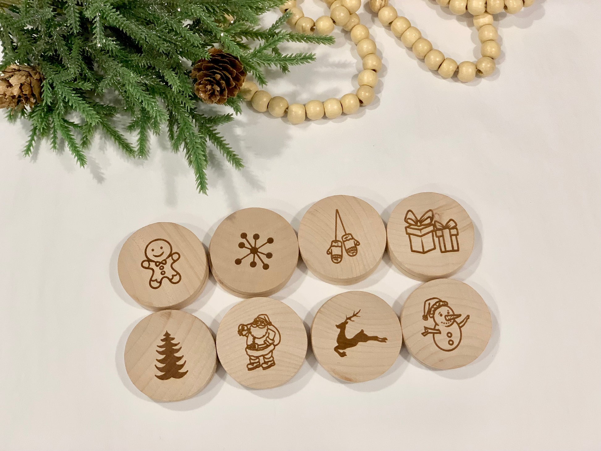 All images are laser burned into the wood, creating a permanent non toxic image. Order a set today to keep your little one busy.