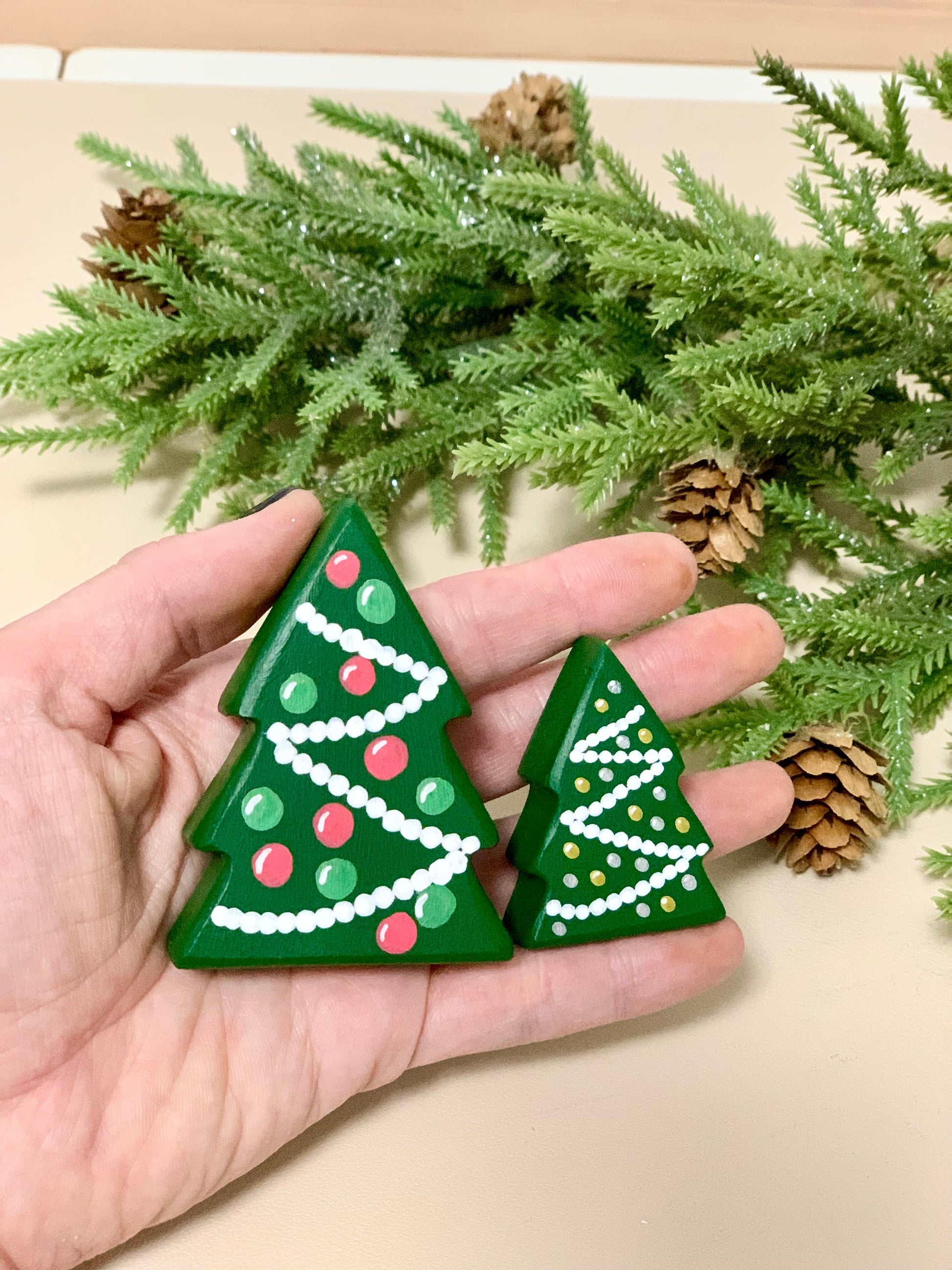 - Trees are 3 inches tall and 2 inches tall, 3/4 inches thick and come in a set of 2.