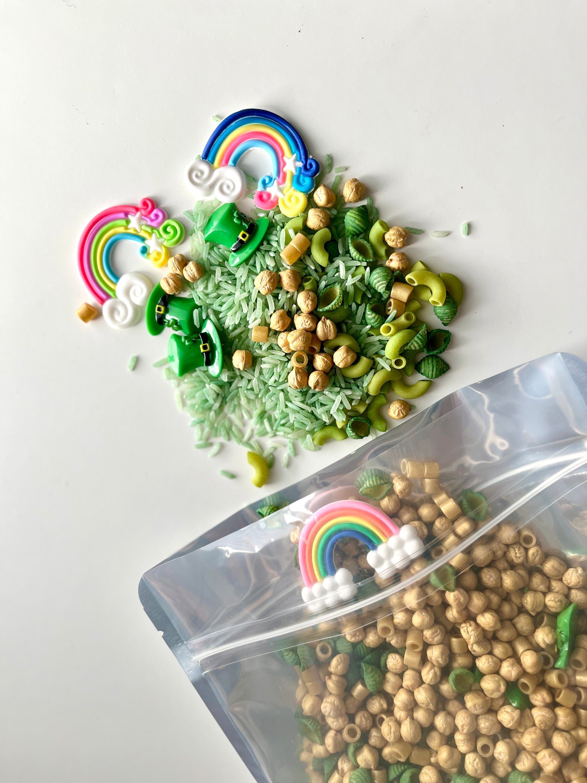 Each Kit comes with 5 1/2 cups of filler, some mini rainbows, and leprechaun hats. Optional add on pot of gold. 5 1/2 cups is more than enough to cover the bottom of a large Trofast bin and have room for scooping.