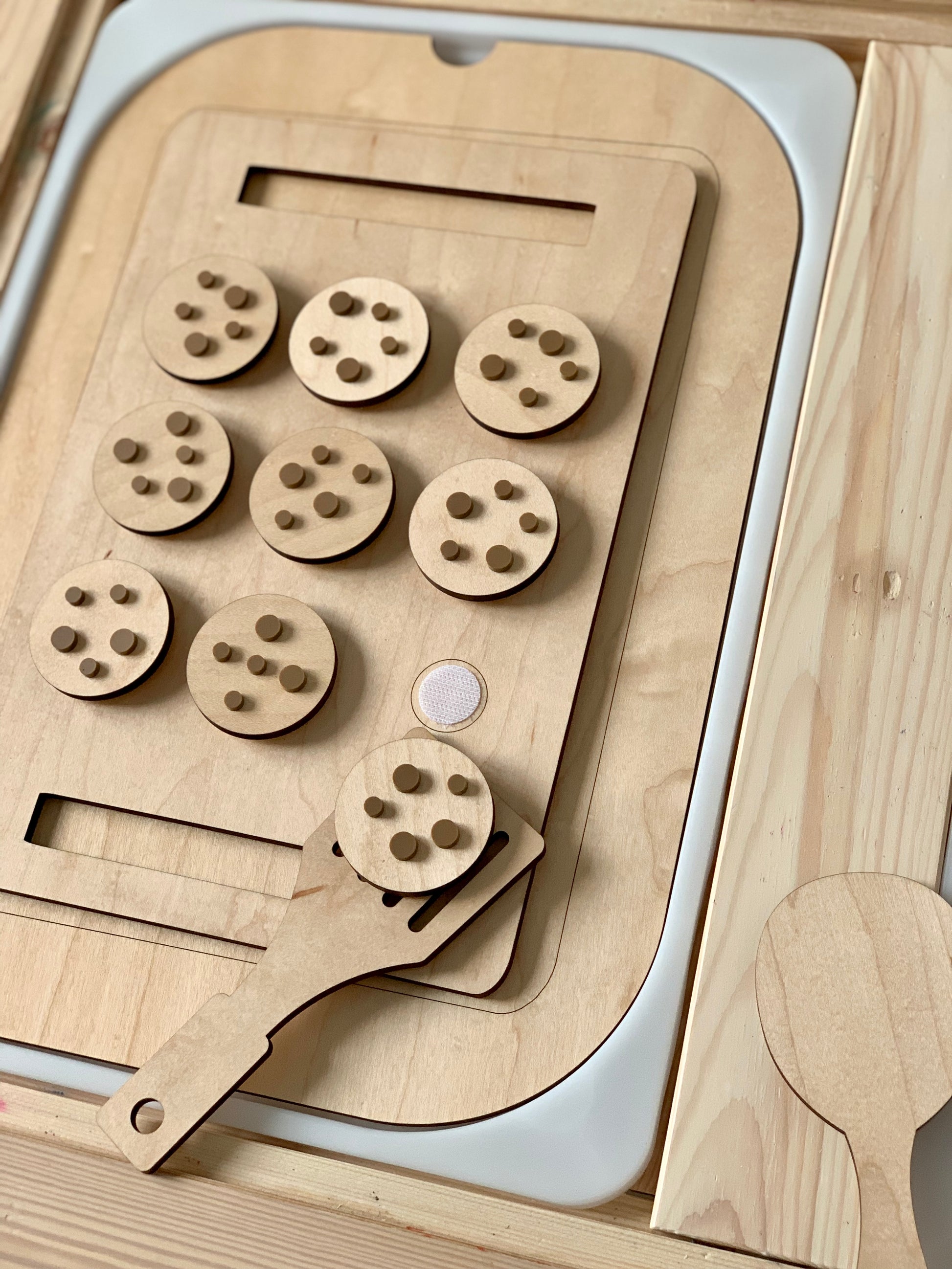 Love this! We have done so much including sensory, playdough, wool balls. Craftsmanship is beautiful, I highly recommend