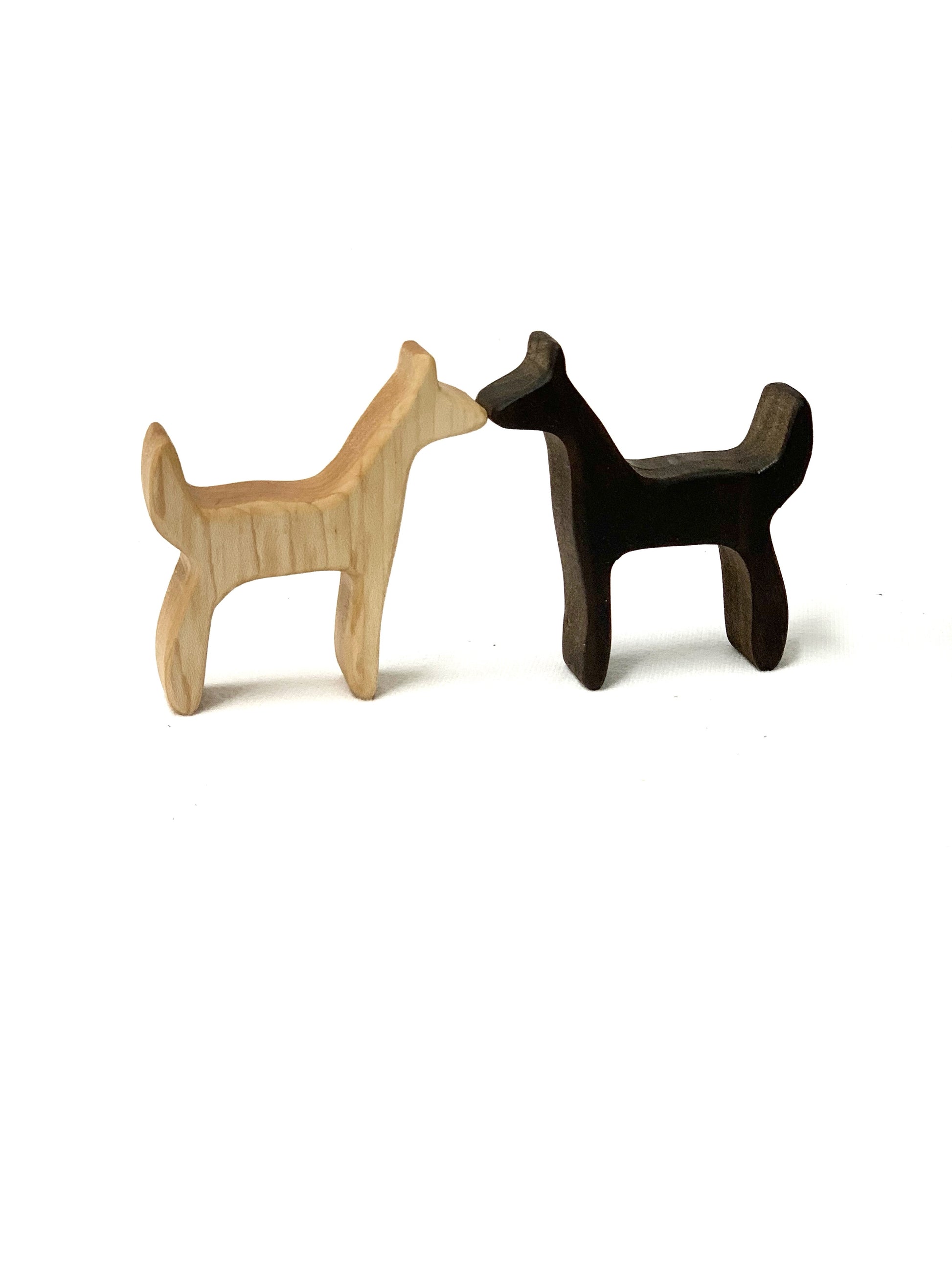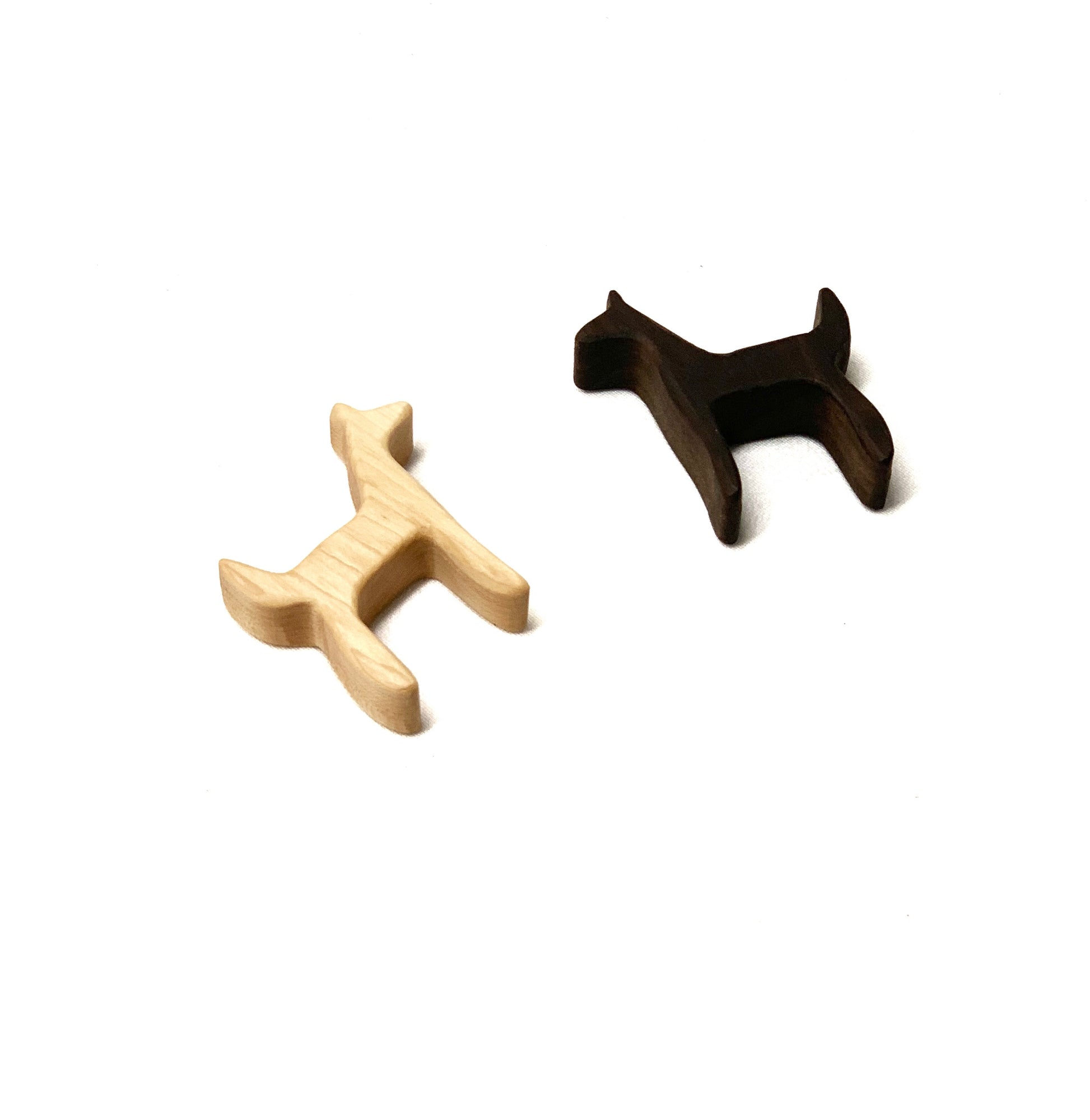 Each animal is cut in house, meticulously sanded smooth in every corner, nook and cranny; and finished with love. These heirloom quality toys are made to be passed down for generations. These are eco-friendly, safe, natural and long-lasting. Choose from beautiful light hardwood (maple) or rich dark hardwood (walnut).