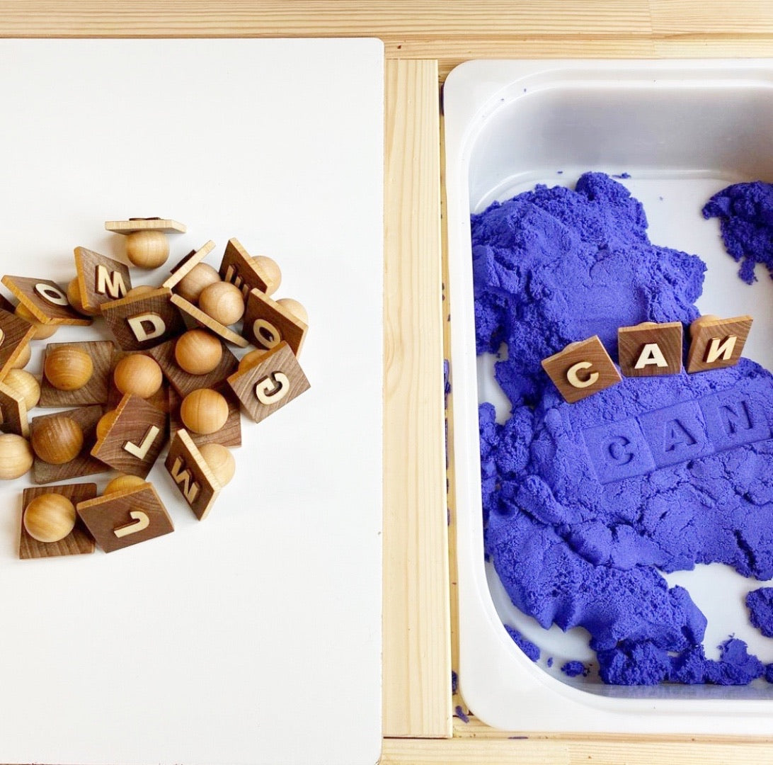 Help your little one learn their letters while playing with their play dough! Expanding their play with learning, these stamps can help your little one to learn their letters while playing with their favourite sensory dough, dirt, sand or clay! Have them spell out objects in their view, their names, and the alphabet!