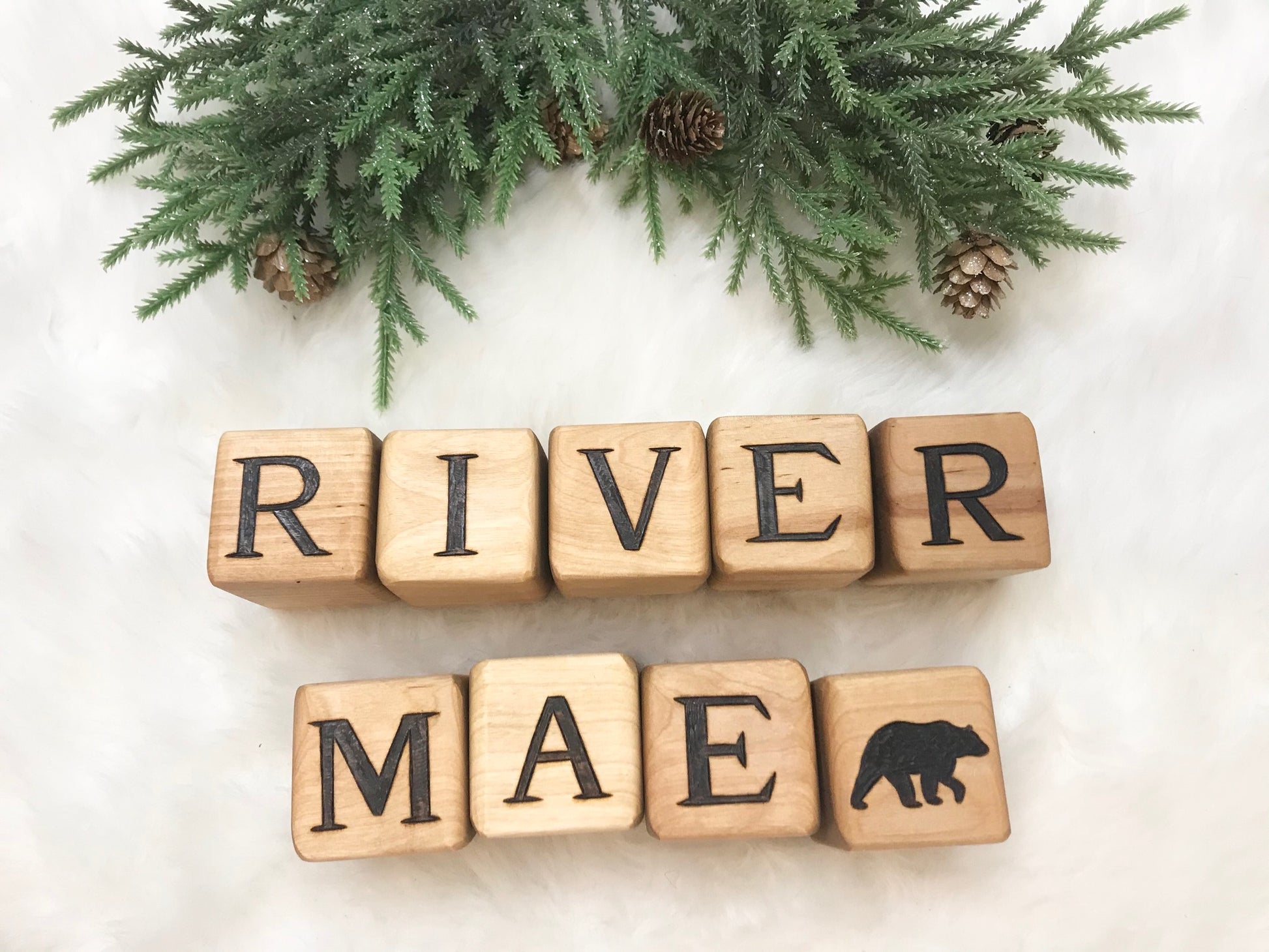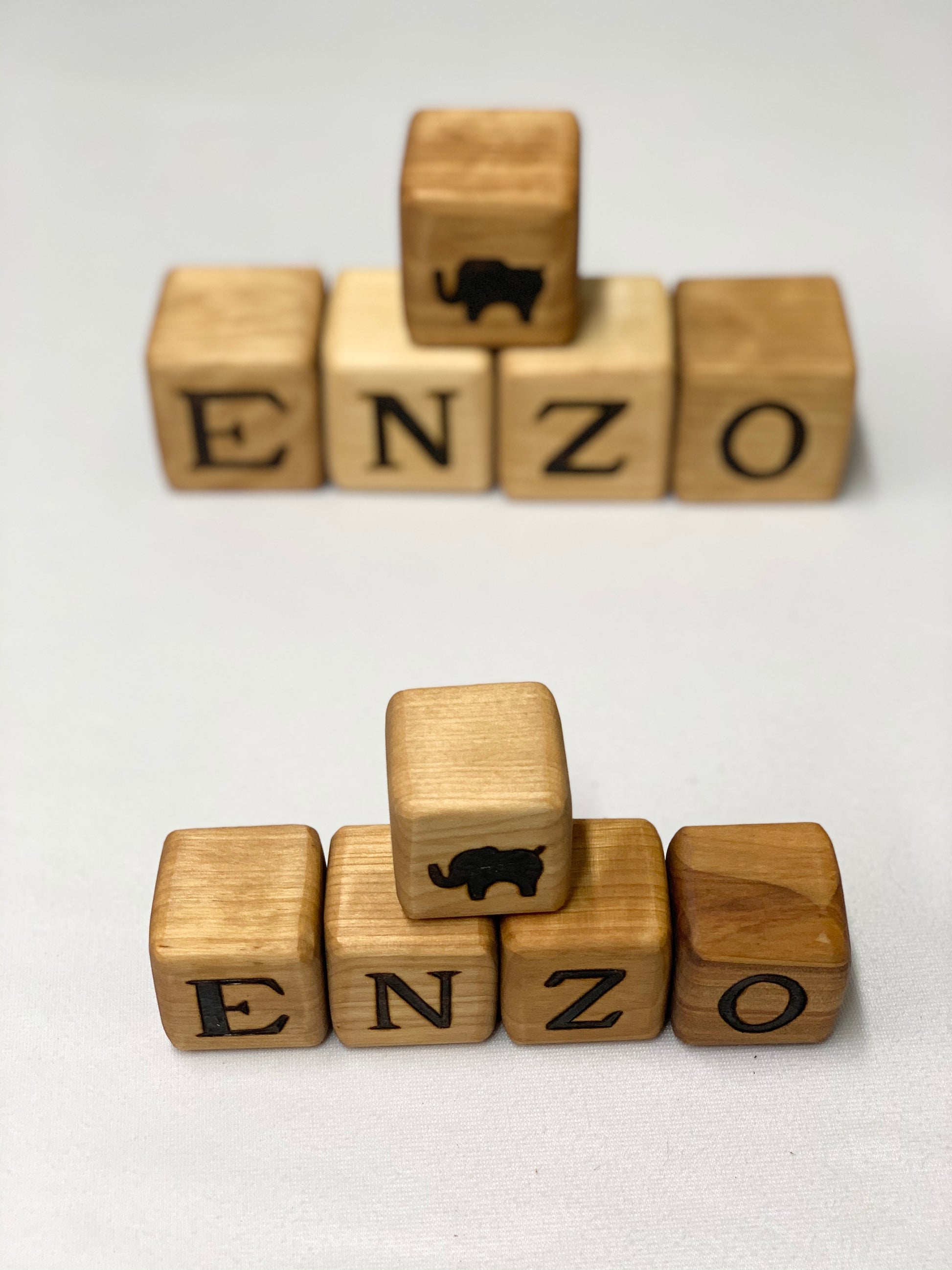 A classic learning wood toy, wood alphabet blocks help improve motor skills and hand eye coordination. They are also the perfect baby gift; these wood blocks will help children learn to play by stacking and knocking over the blocks as they grow up. Personalized with your child's name, these custom wood blocks/baby name blocks can also be a great learning tool for your child to learn how to spell their name. These natural wood toys are sourced from North America, and will be a cherished and long lasting toy for generations to come.
