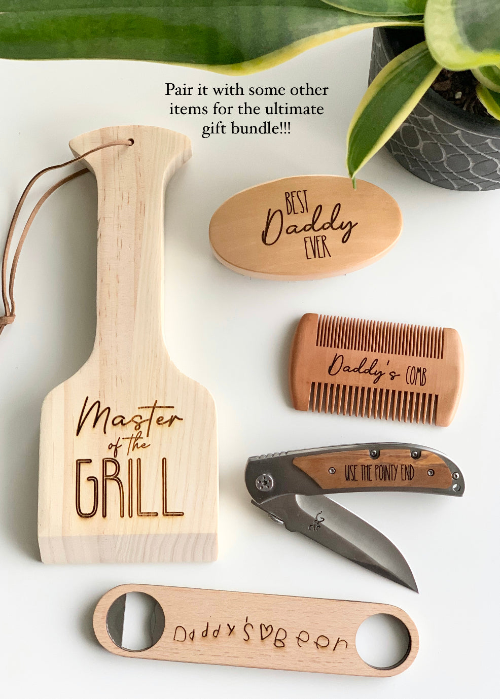 Pair it with our pocket knife , Bottle Opener, or Beard & Comb Sets for the ultimate gift bundle.