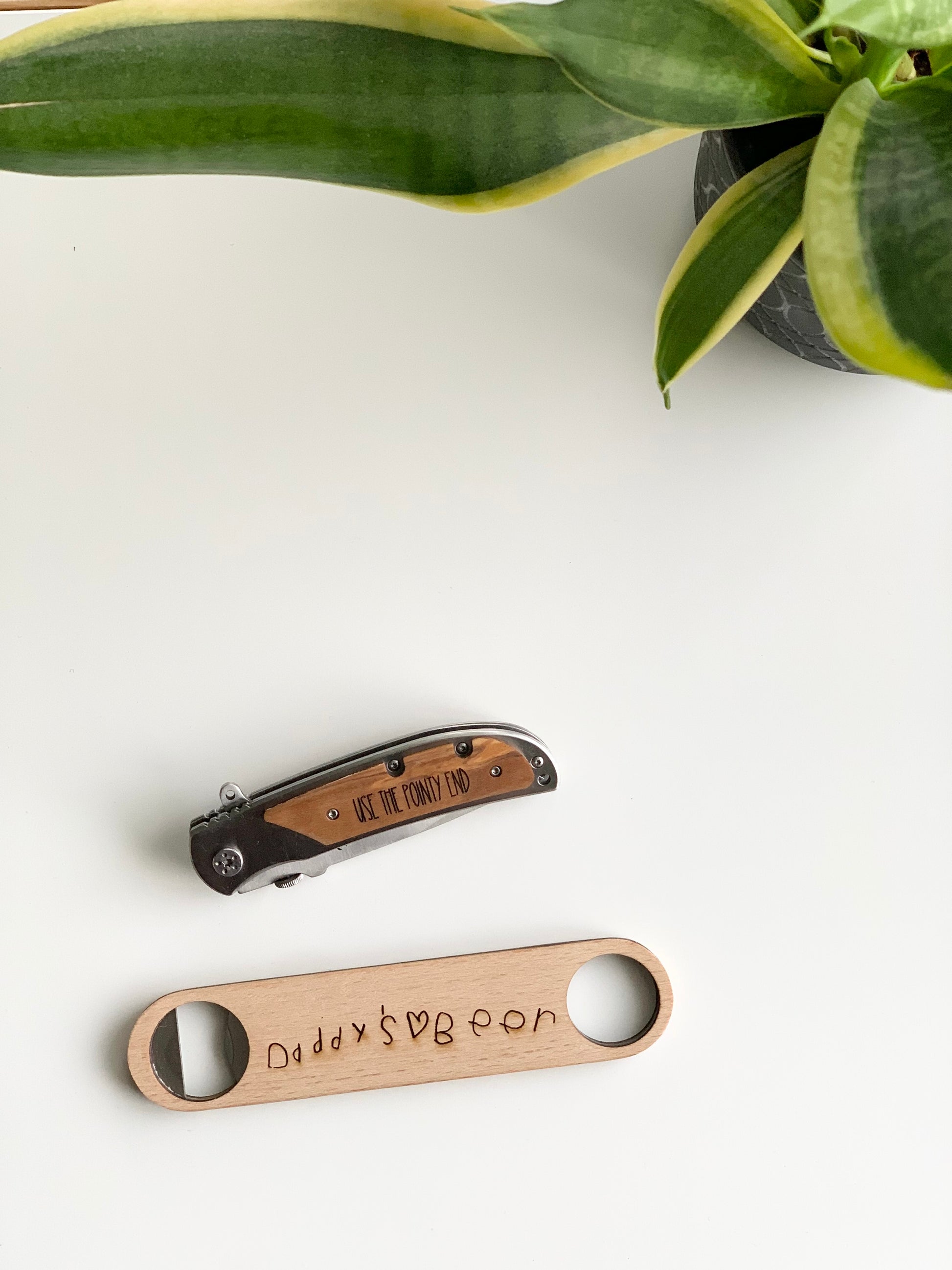 Want to use your or your kiddo’s writing on the knife? Choose the “Handwritten” option and then reply to your confirmation email with a bright, white picture of the handwriting in mind.