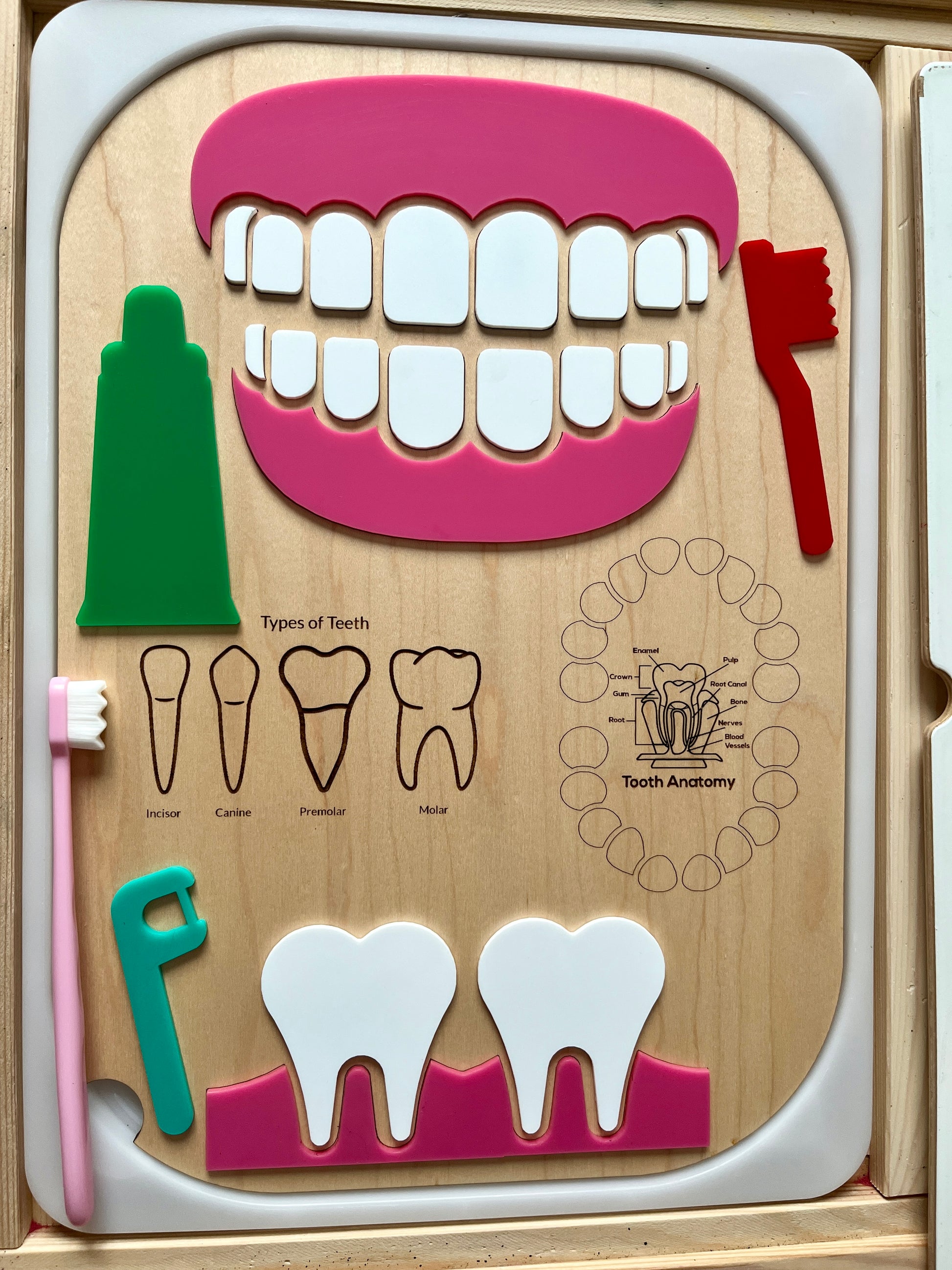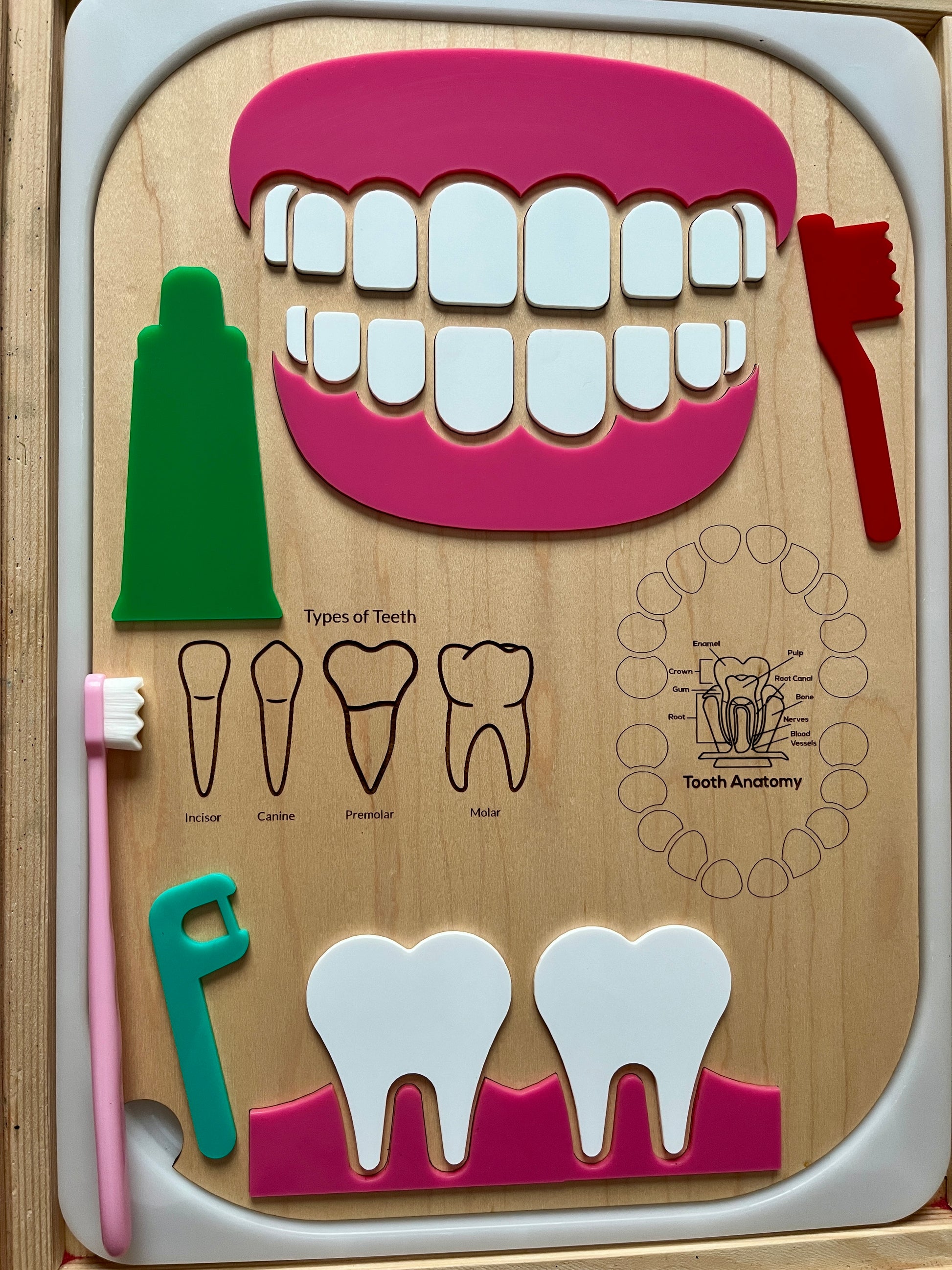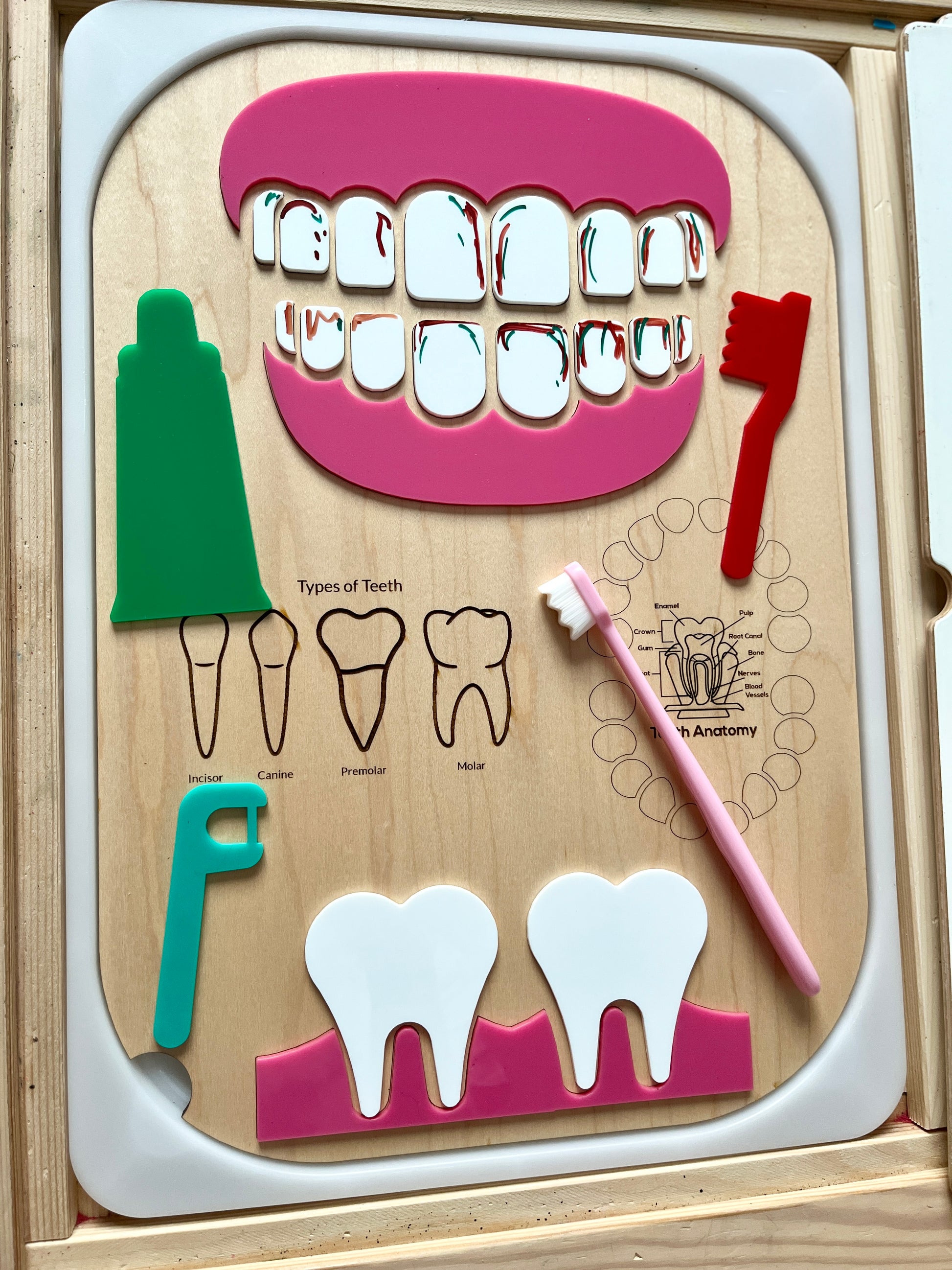Dentist / Dental Educational Board / Dry Erase Flisat Insert with Pieces and Toothbrush