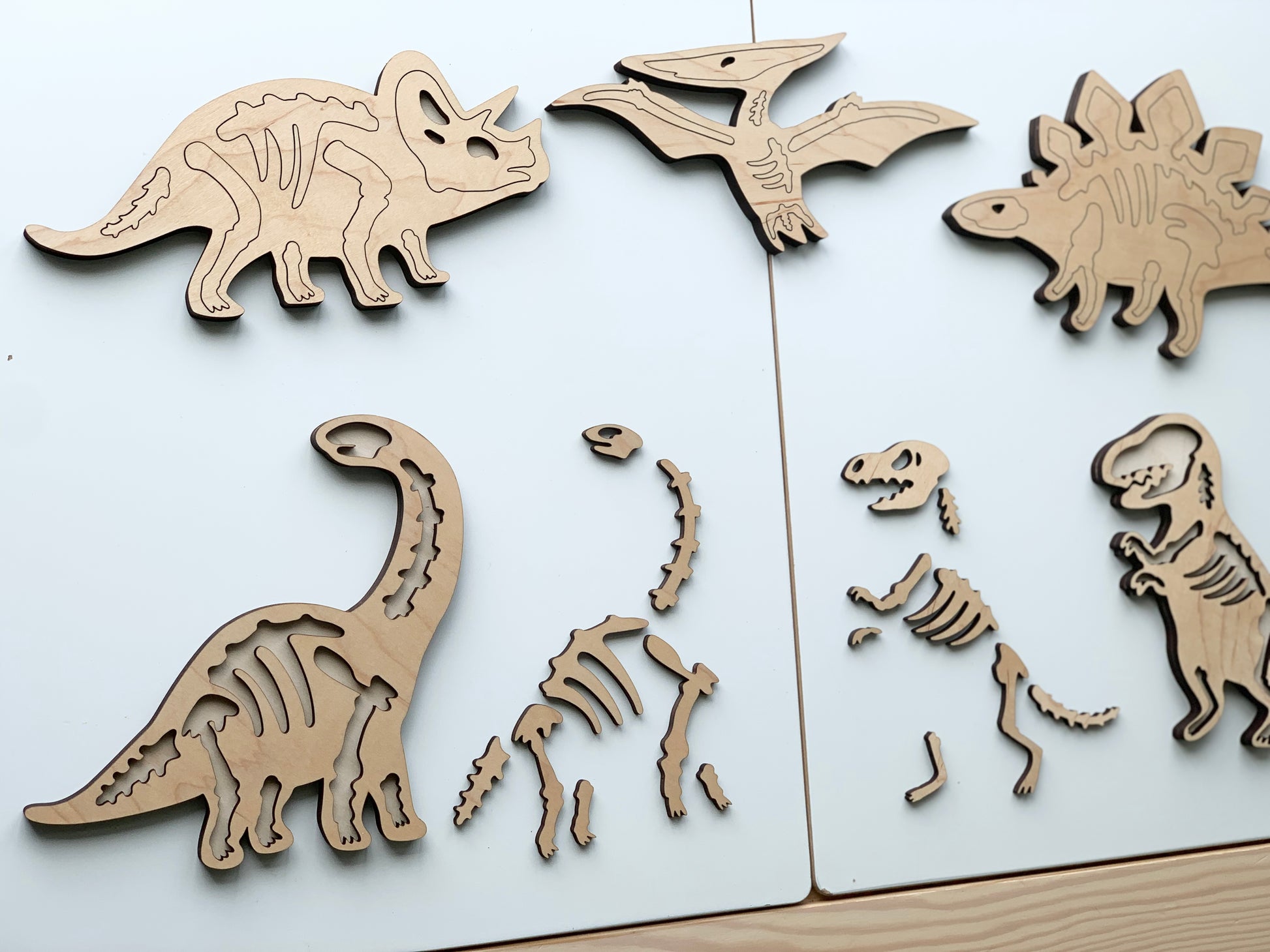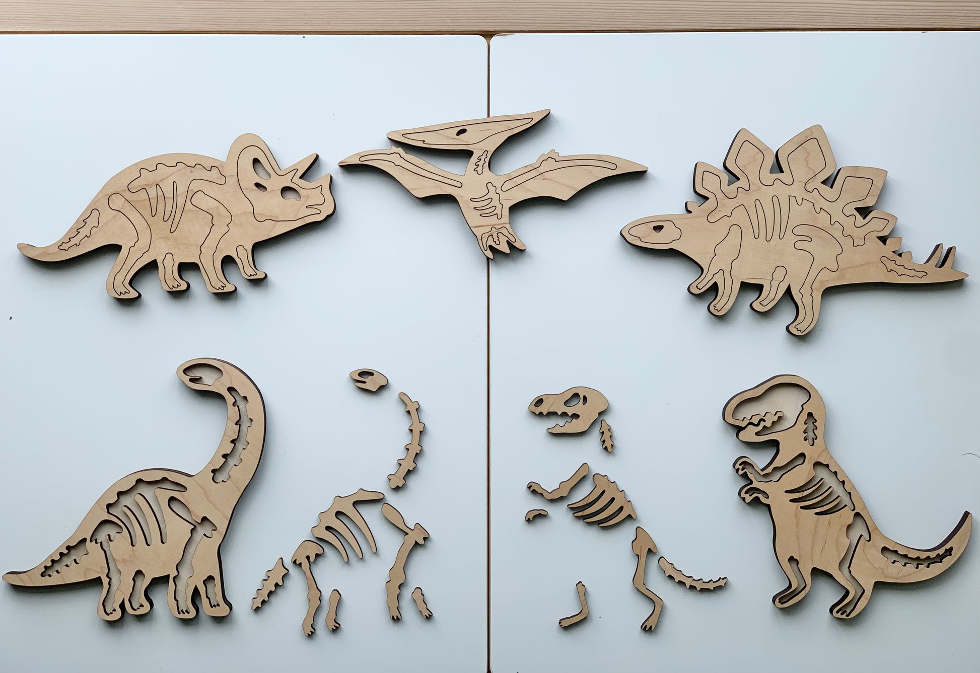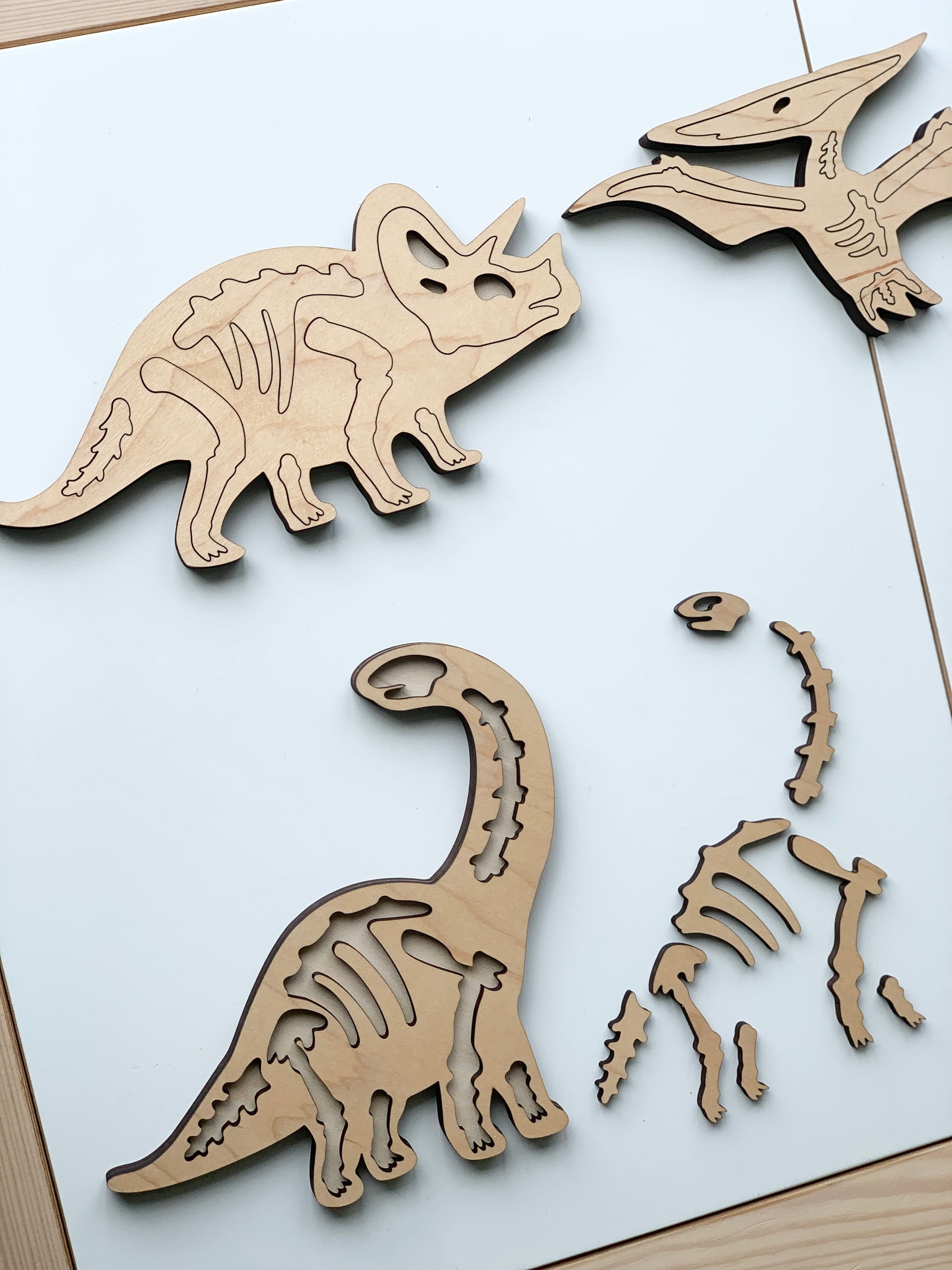 Dinosaur Bone Puzzles! Use them for regular puzzles, dino digs, in your dinosaur play set ups - the options are endless. Hide the bones in some sensory sand, and have your kiddos dig them out with tweezers or other sensory tools. Looking for something a little more tricky for your older kiddo? Dump the bones from all 5 dinosaurs in at once and challenge them to see how fast they can do it. Due to some of the bones being small in size, this is definitely meant for older kiddos who are no longer mouthing their toys.