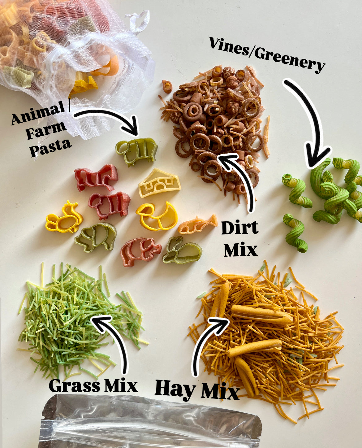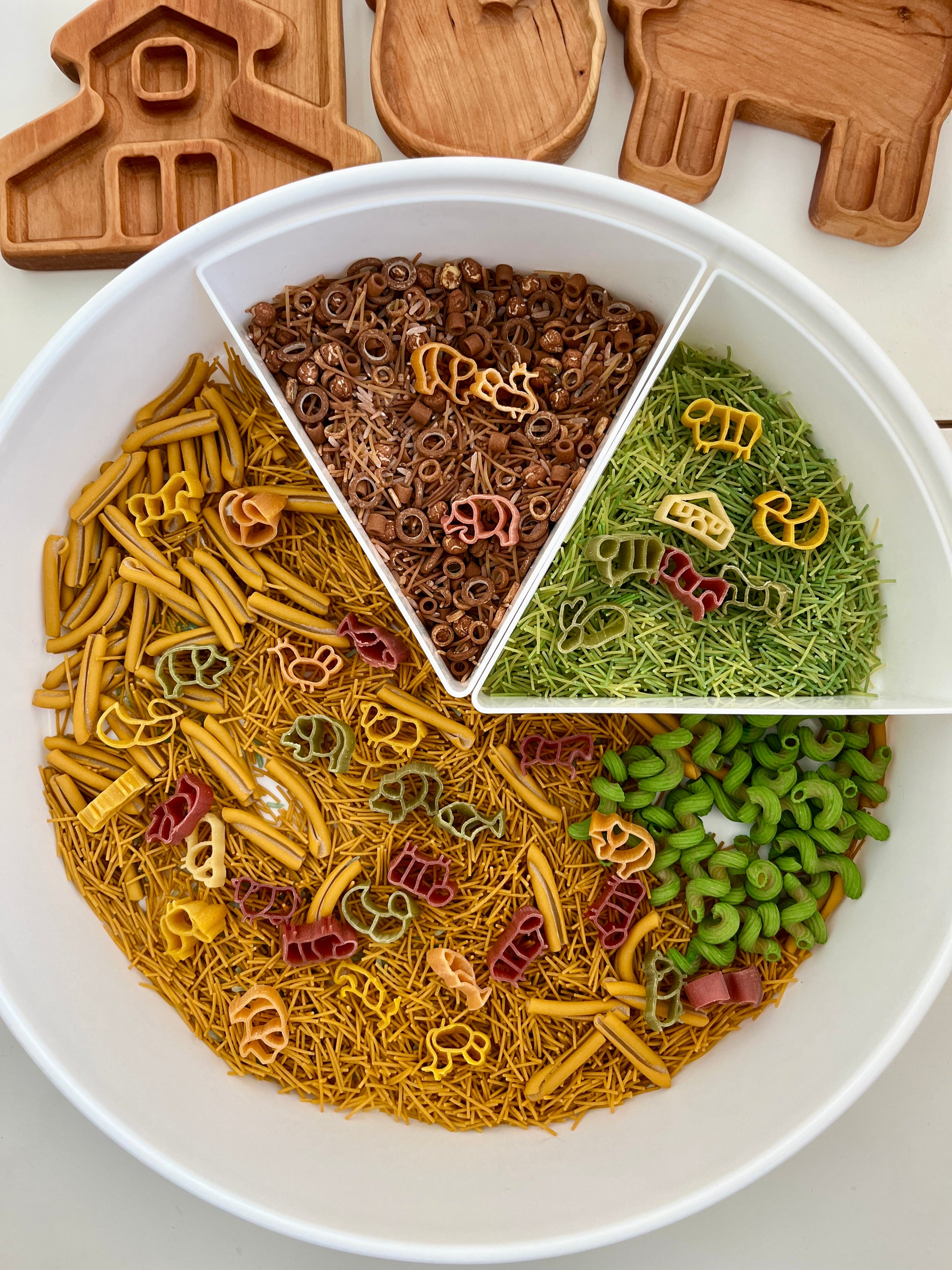 • Adorable farm-themed pasta featuring fun shapes like animals and barns