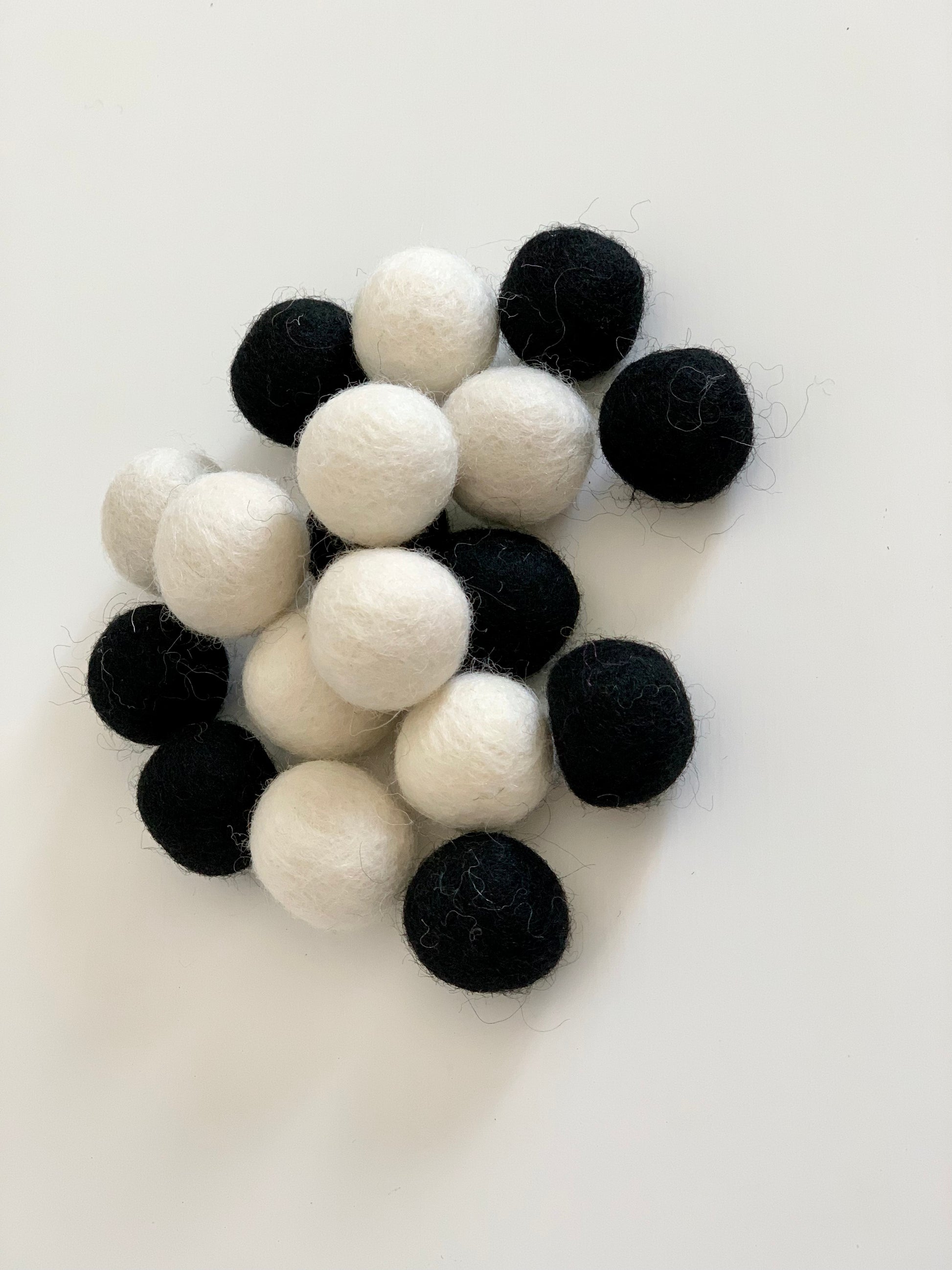 18 felt balls. Each ball is approximately 1.7-2.2cm in size.