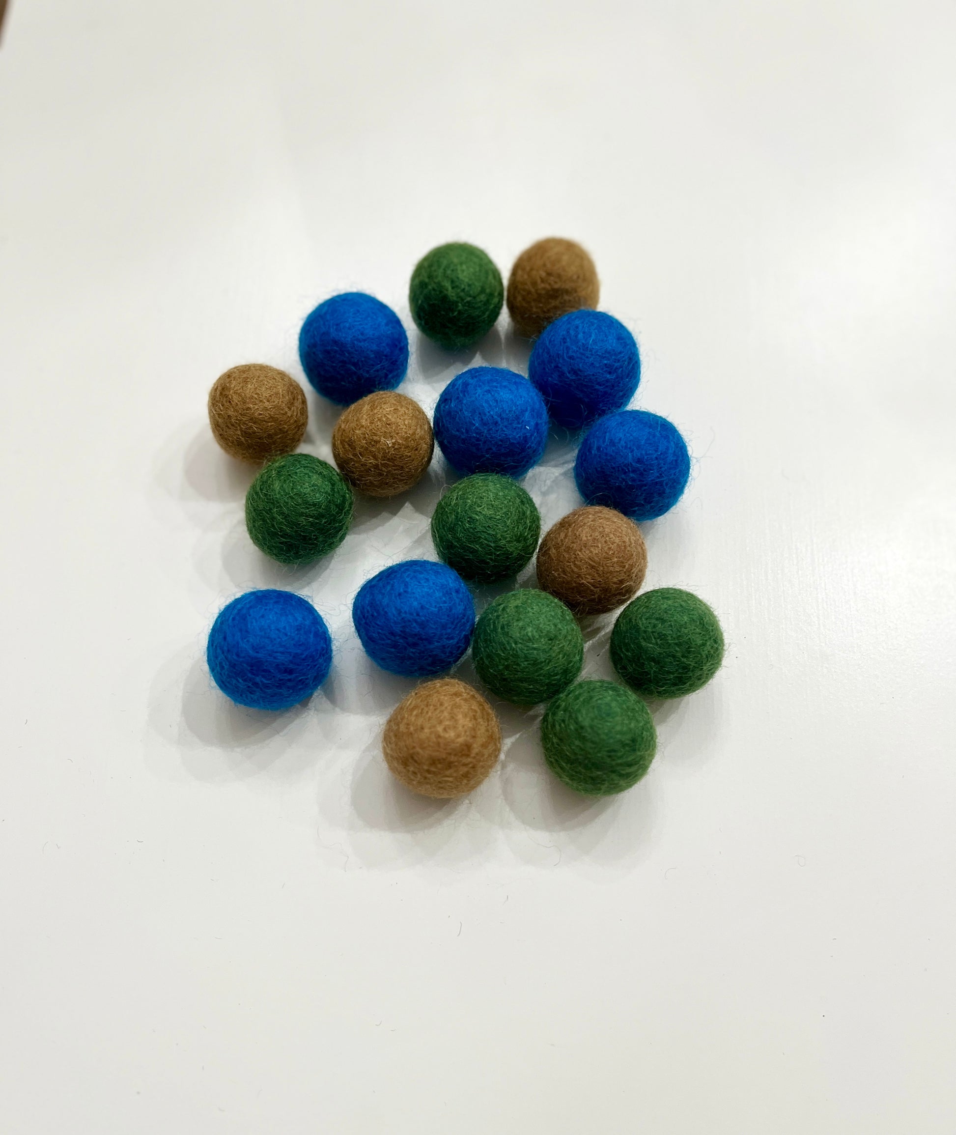 17 felt balls. Each ball is approximately 1.8-2.2cm in size.