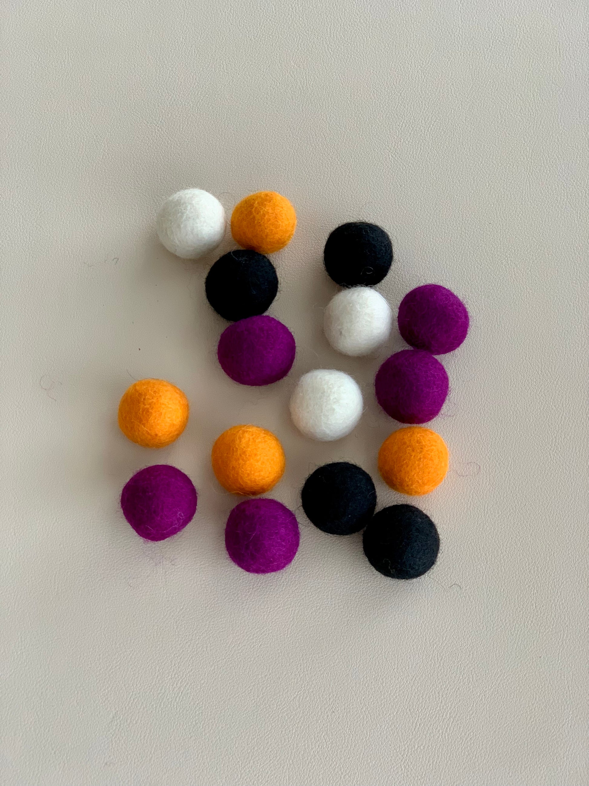16 felt balls. Each ball is approximately 1.8-2.2cm in size.