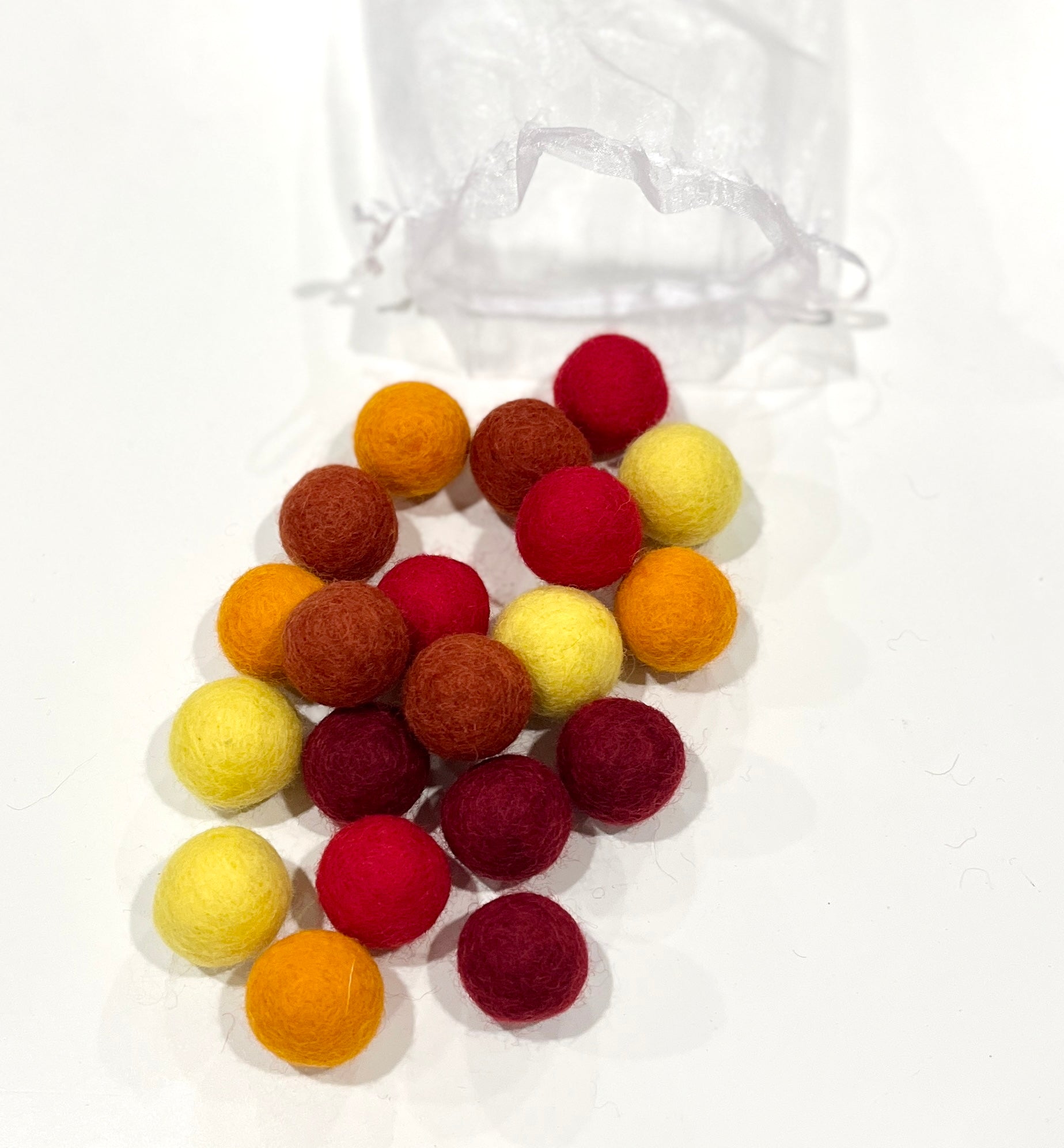 20 felt balls. Each ball is approximately 1.8-2.2cm in size.