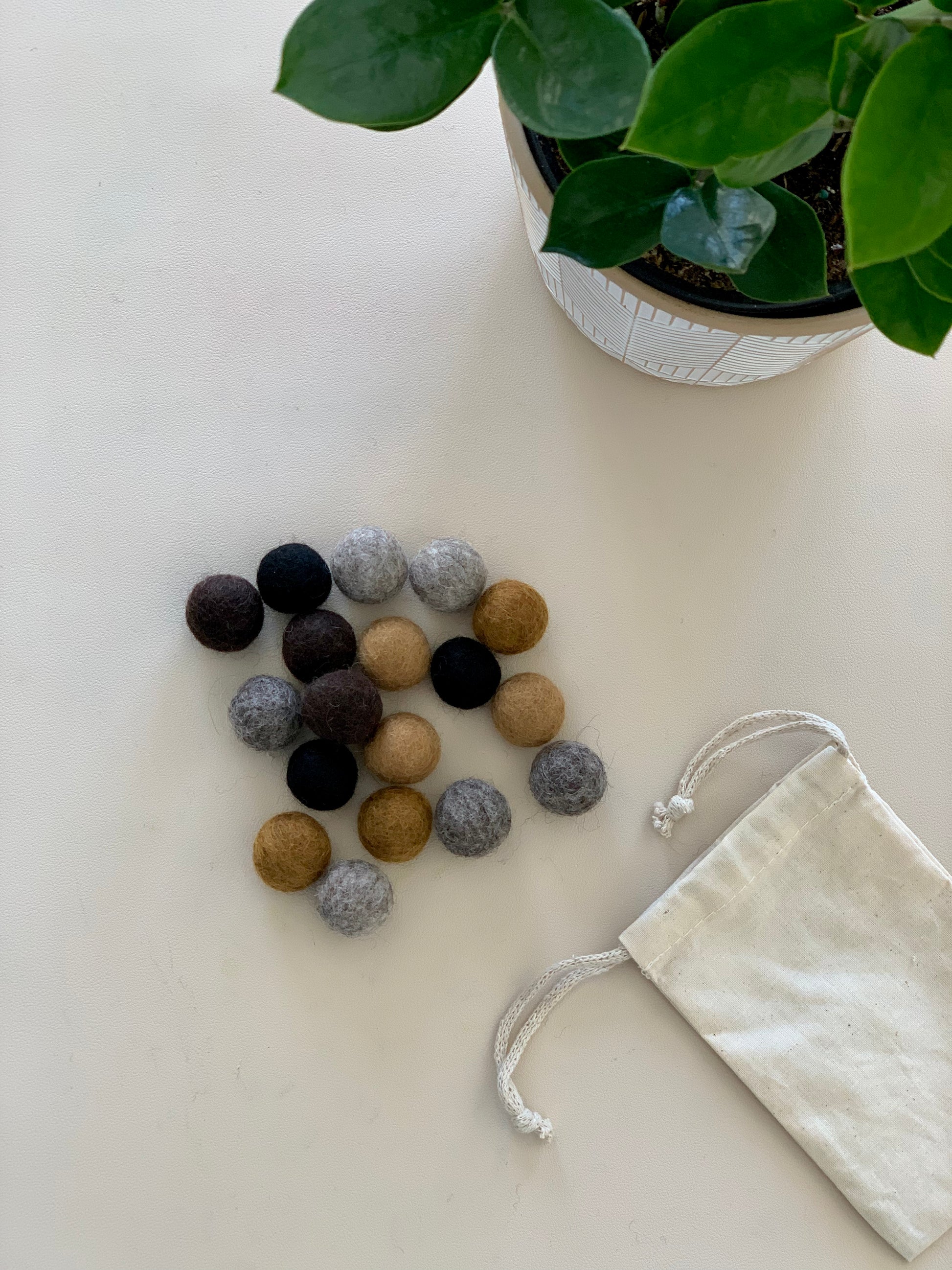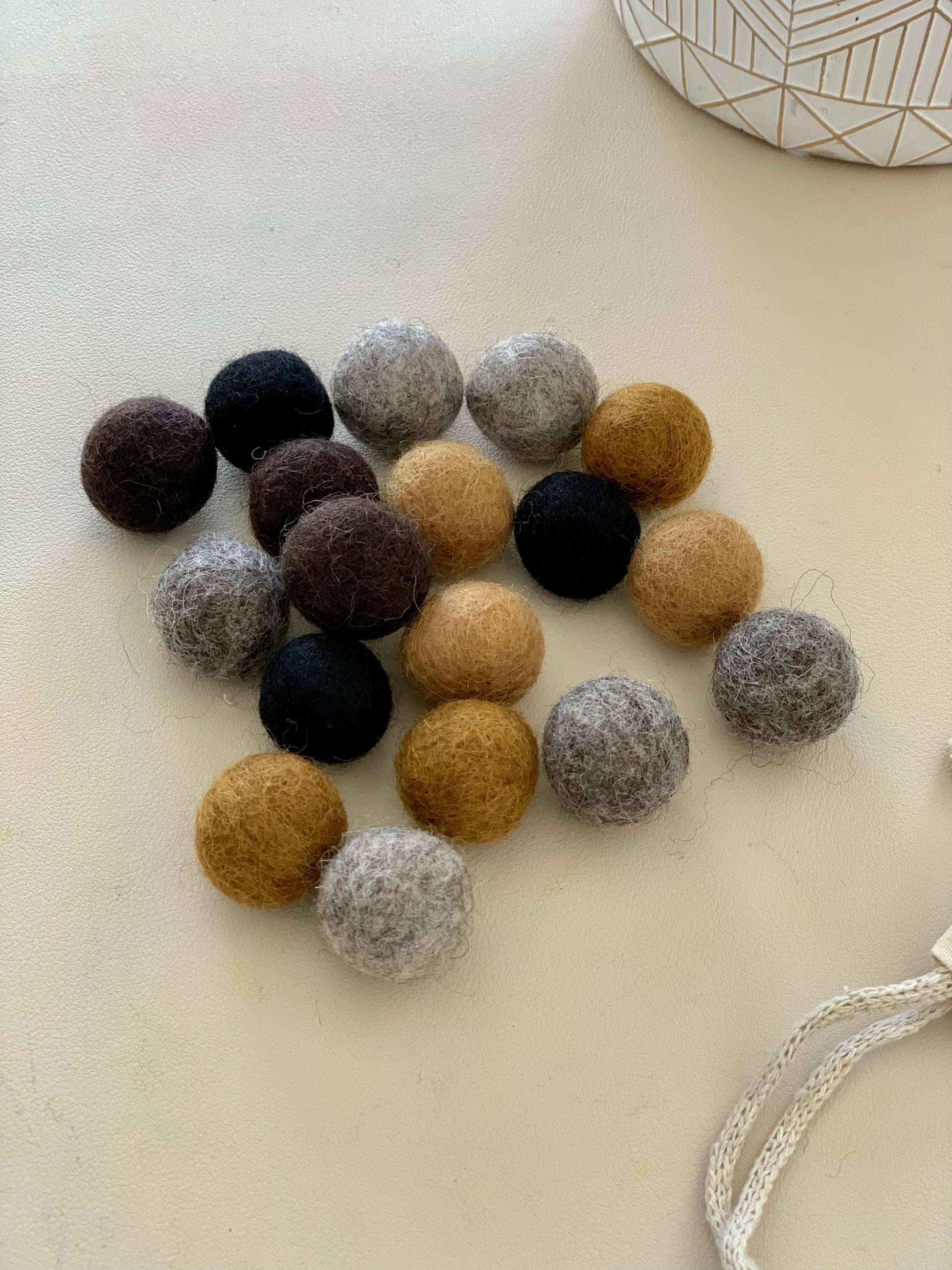 18 felt balls. Each ball is approximately 2-2.2cm in size.