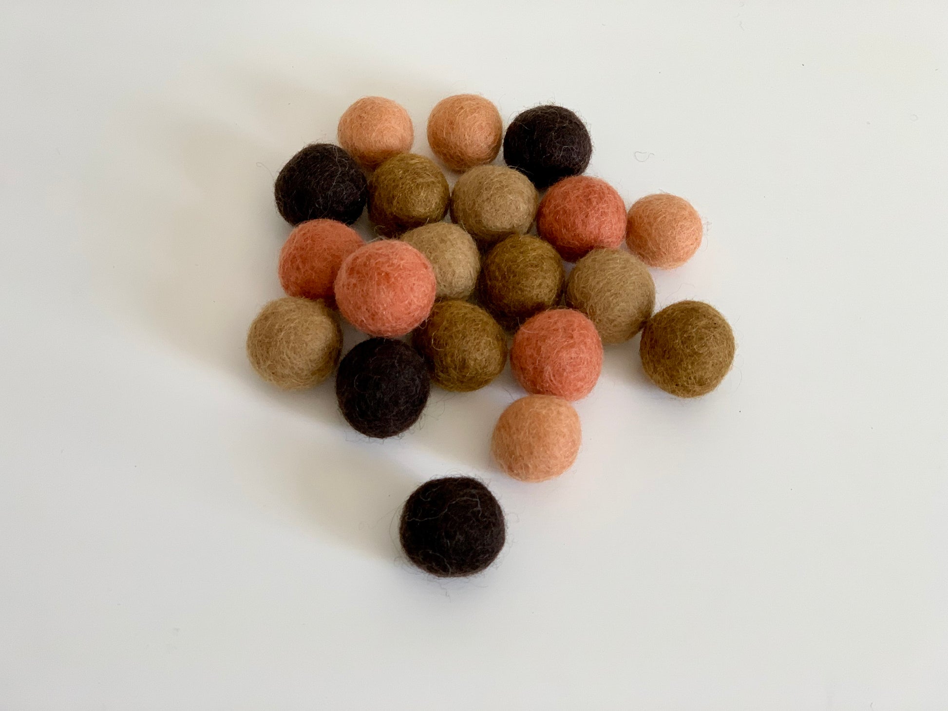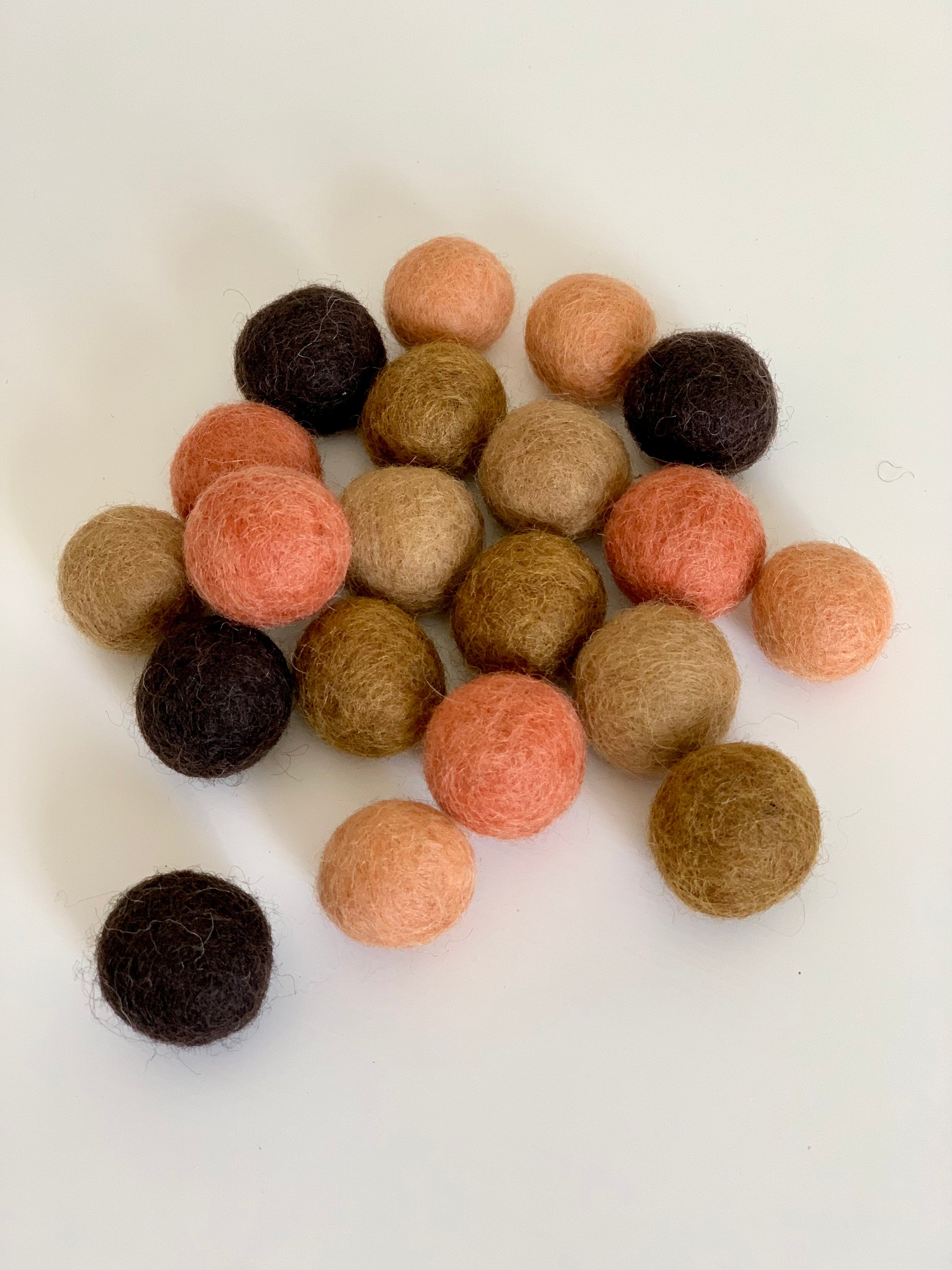 20 felt balls. Each ball is approximately 1.8-2.2cm in size.