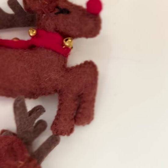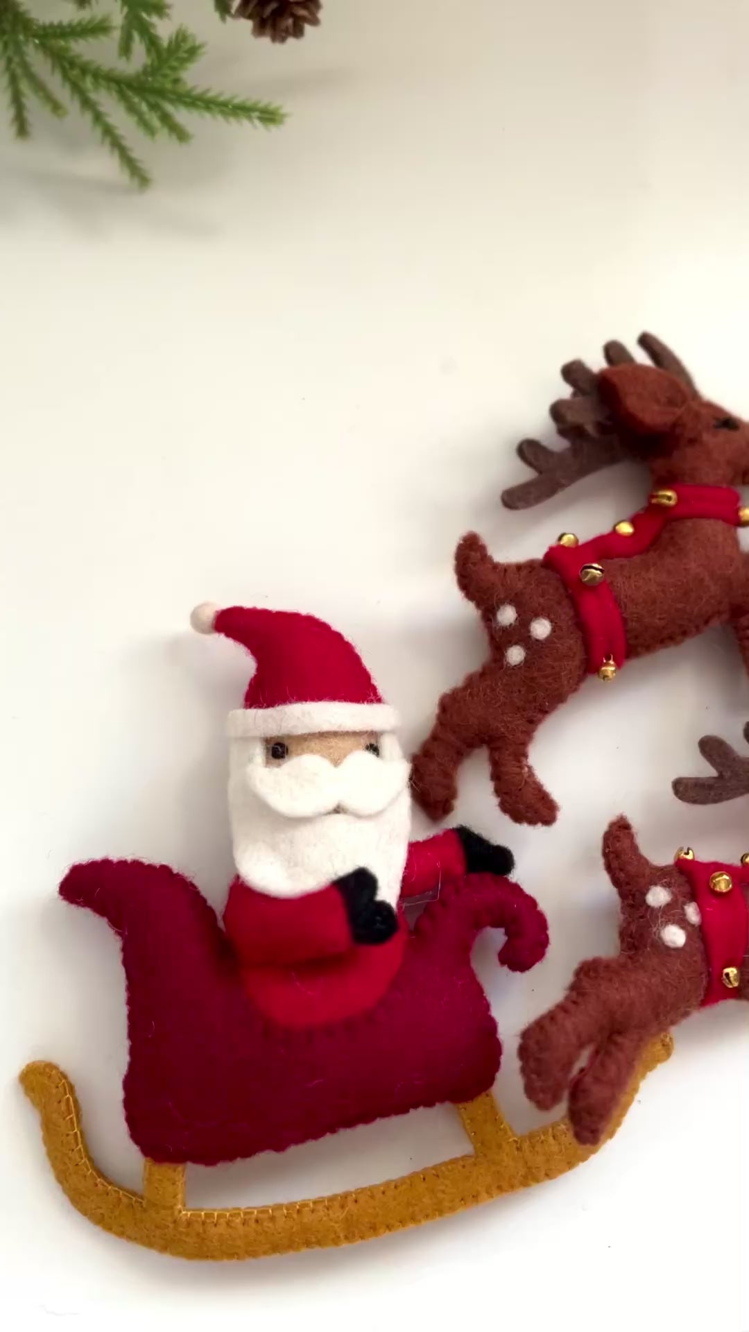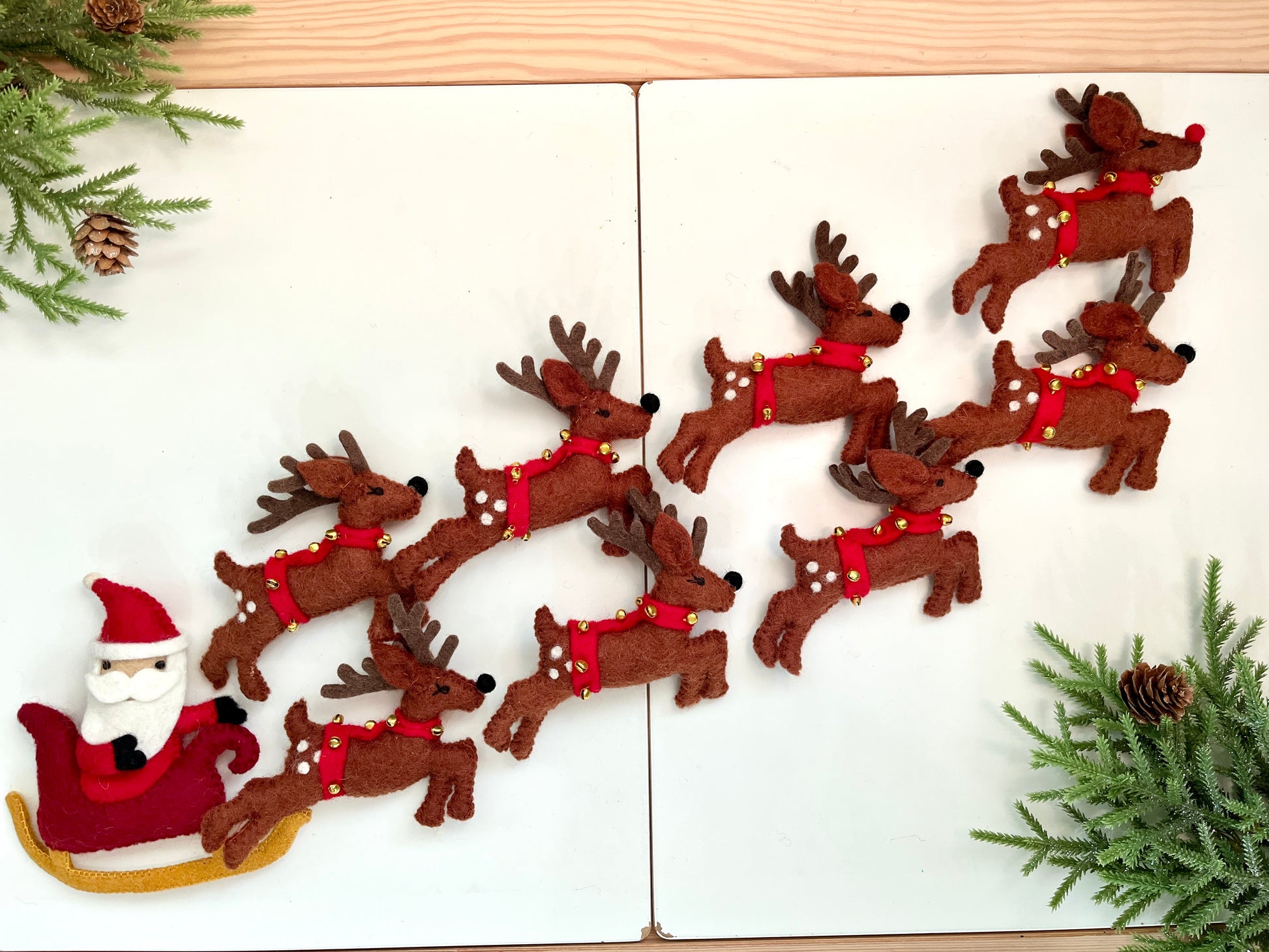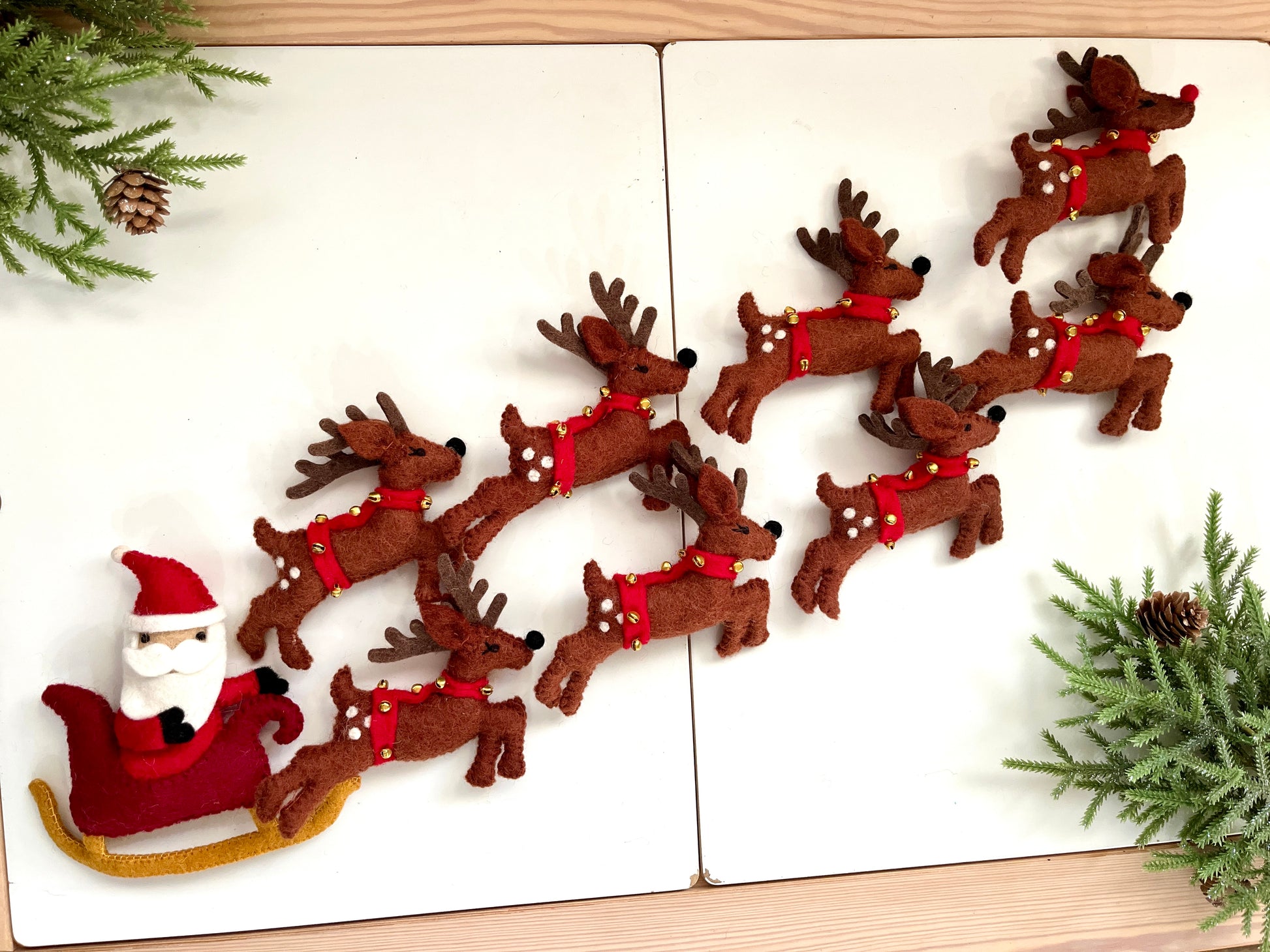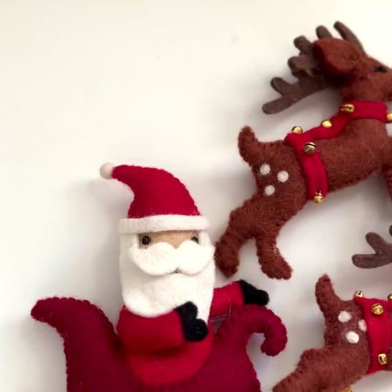 Set of 9 Felt Santa on Sleigh, Reindeer & Rudolph Set