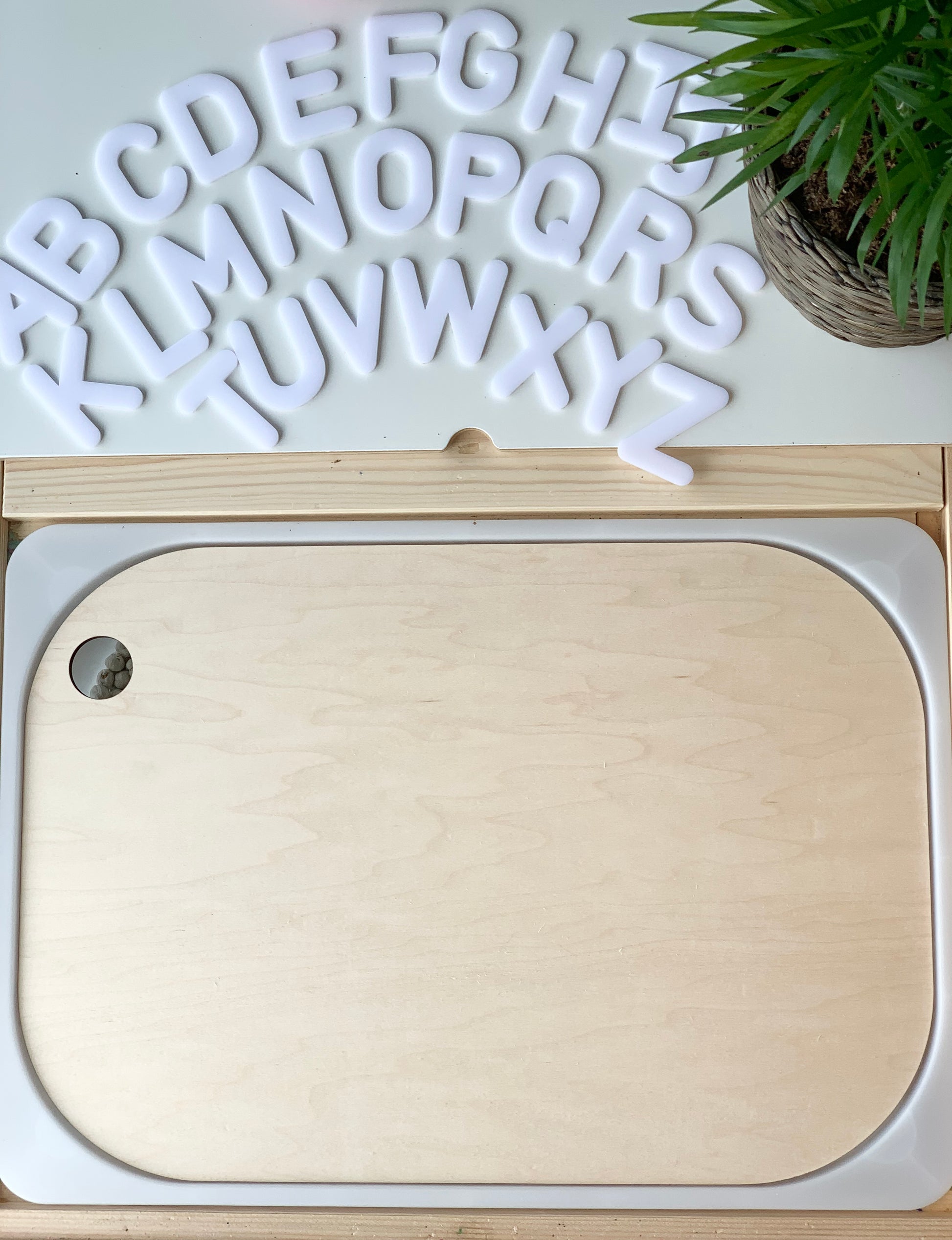 These Flisat inserts/table tops are made from Maple Plywood which is fused together with food safe soy materials and not formaldehyde. They are made to fit the small and large Flisat bins.