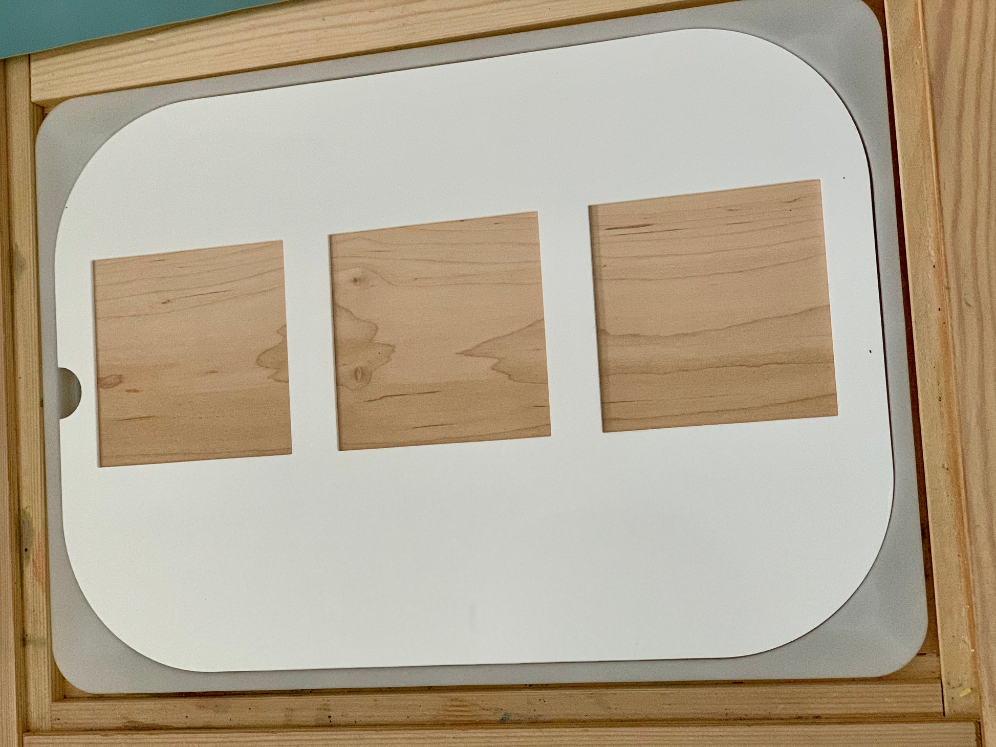 A note about wood : wood is prone to warping under high or low temperatures and moisture levels. The wood used for these inserts has a water-resistant composition which has a higher moisture tolerance than panels made with formaldehyde and is less likely to warp. Regardless of this, we cannot guarantee that each and every insert remains completely flat due to changes in environment. If you find your insert isn’t as flat as you’d like, you can try spraying the bottom with a very light amount of water and putting the board under some heavy items to help flatten it out.