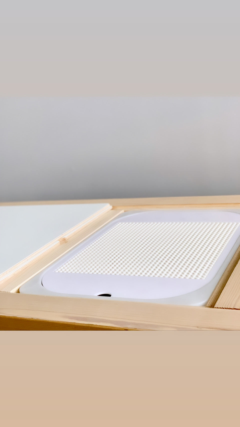Flisat Table Top Insert with Lego Insert, White Acrylic is Dry Erasable, Double Sided — Finished Wood on the Opposite Side