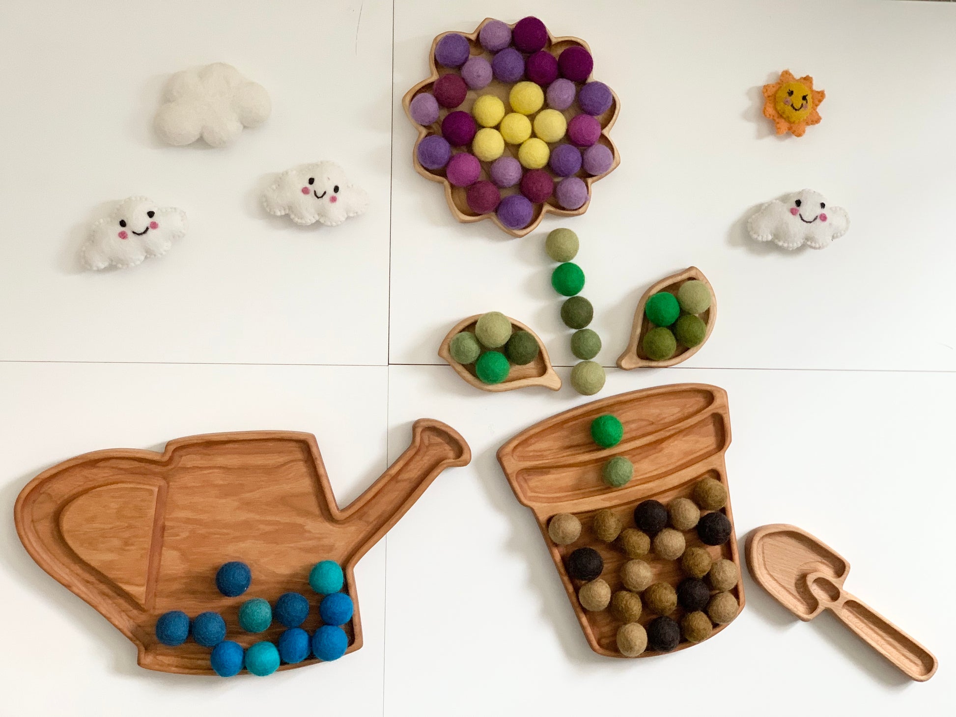 It pairs perfectly with our flower trays, watering can tray, shovel tray, and other beach themed items coming soon 😉. We also have dirt & soil inspired colour felt balls.