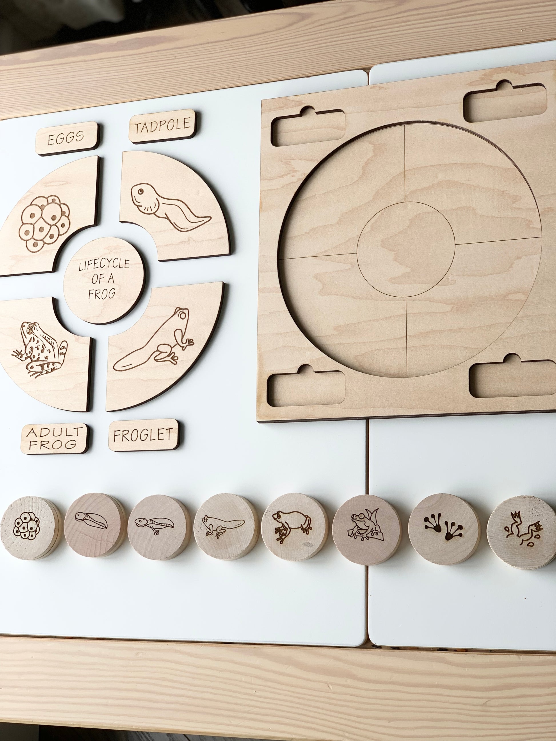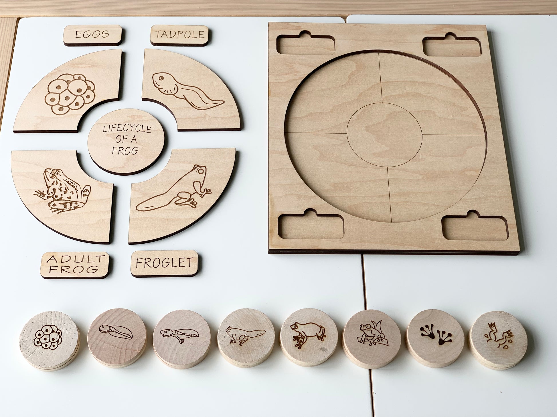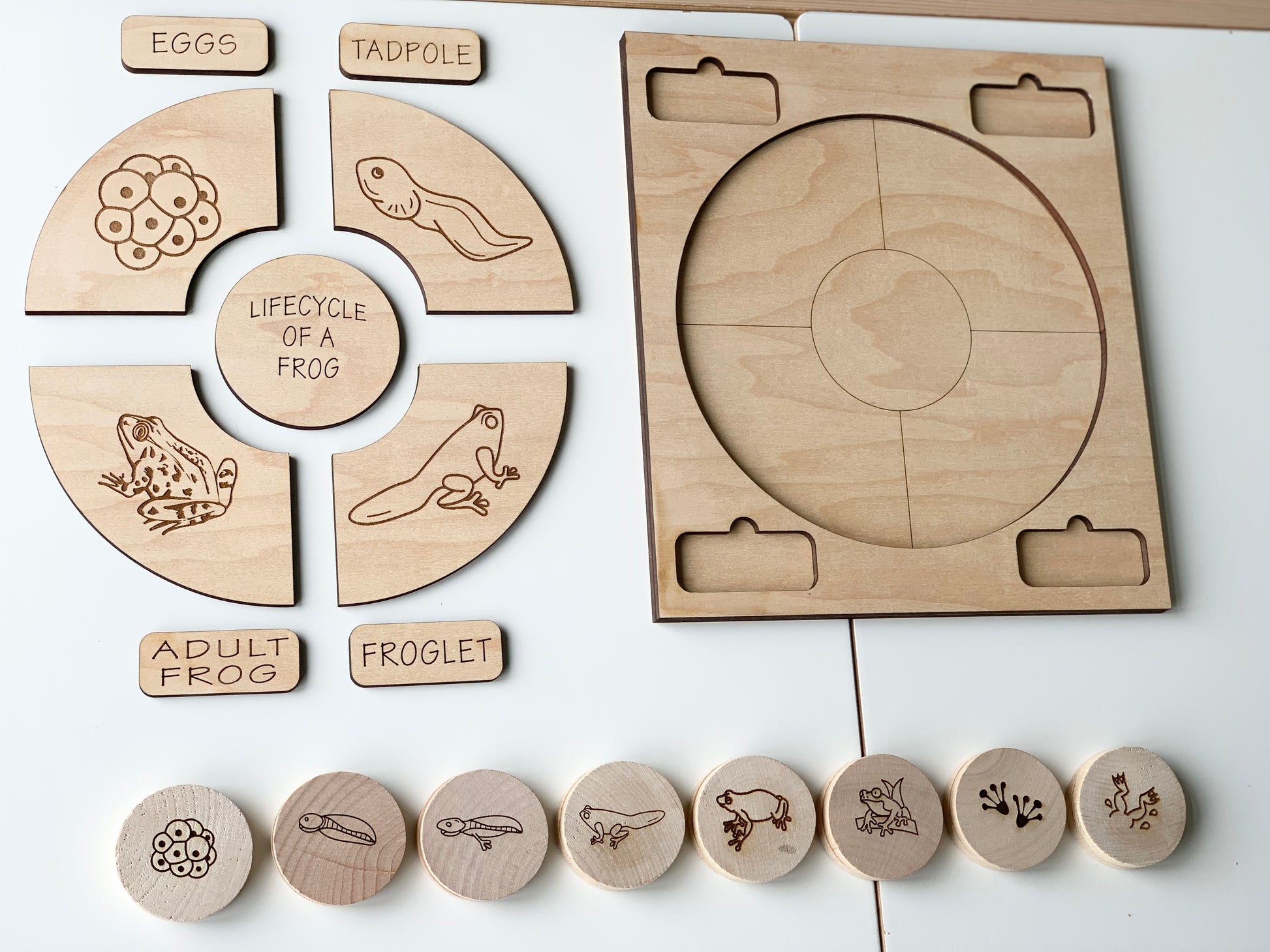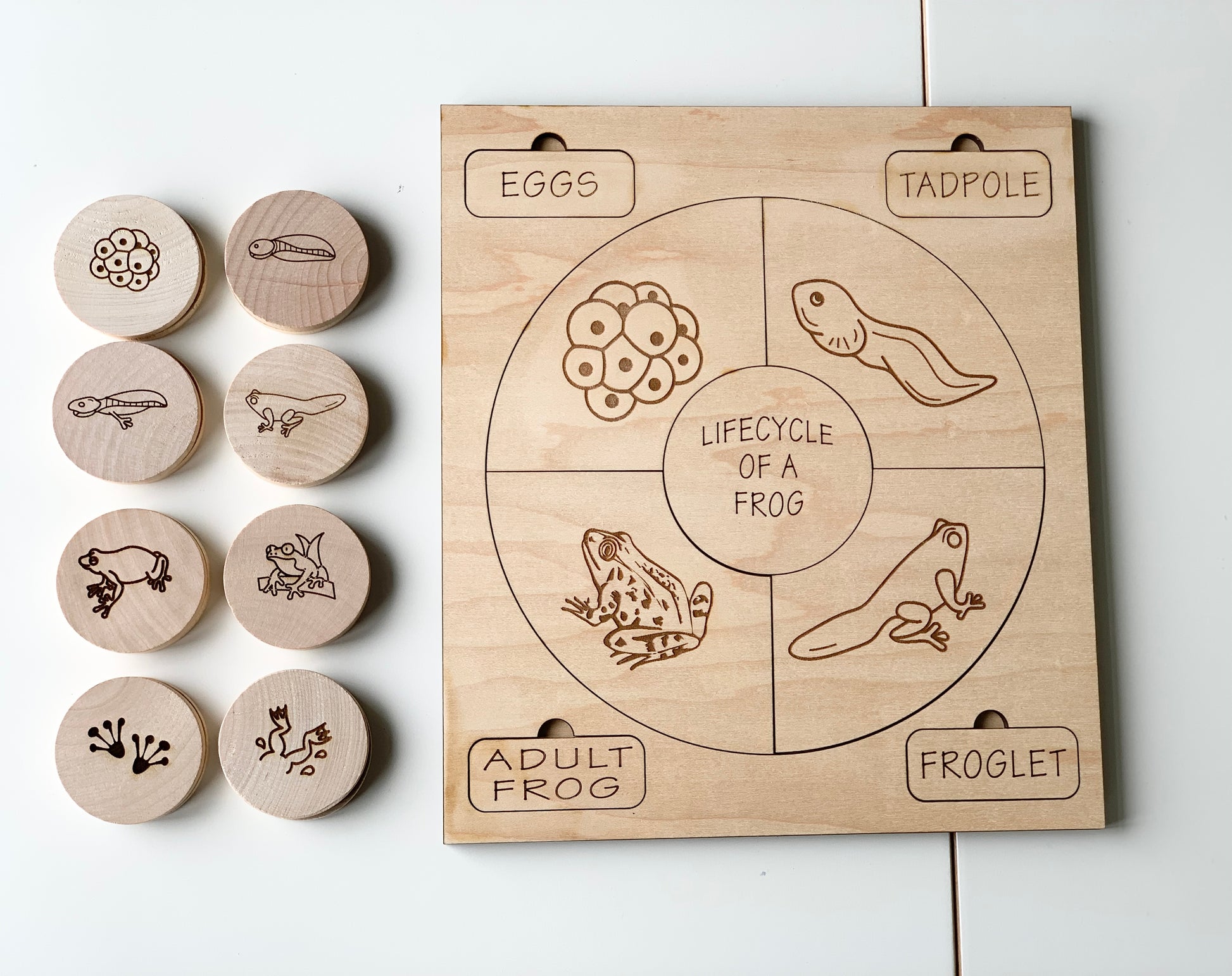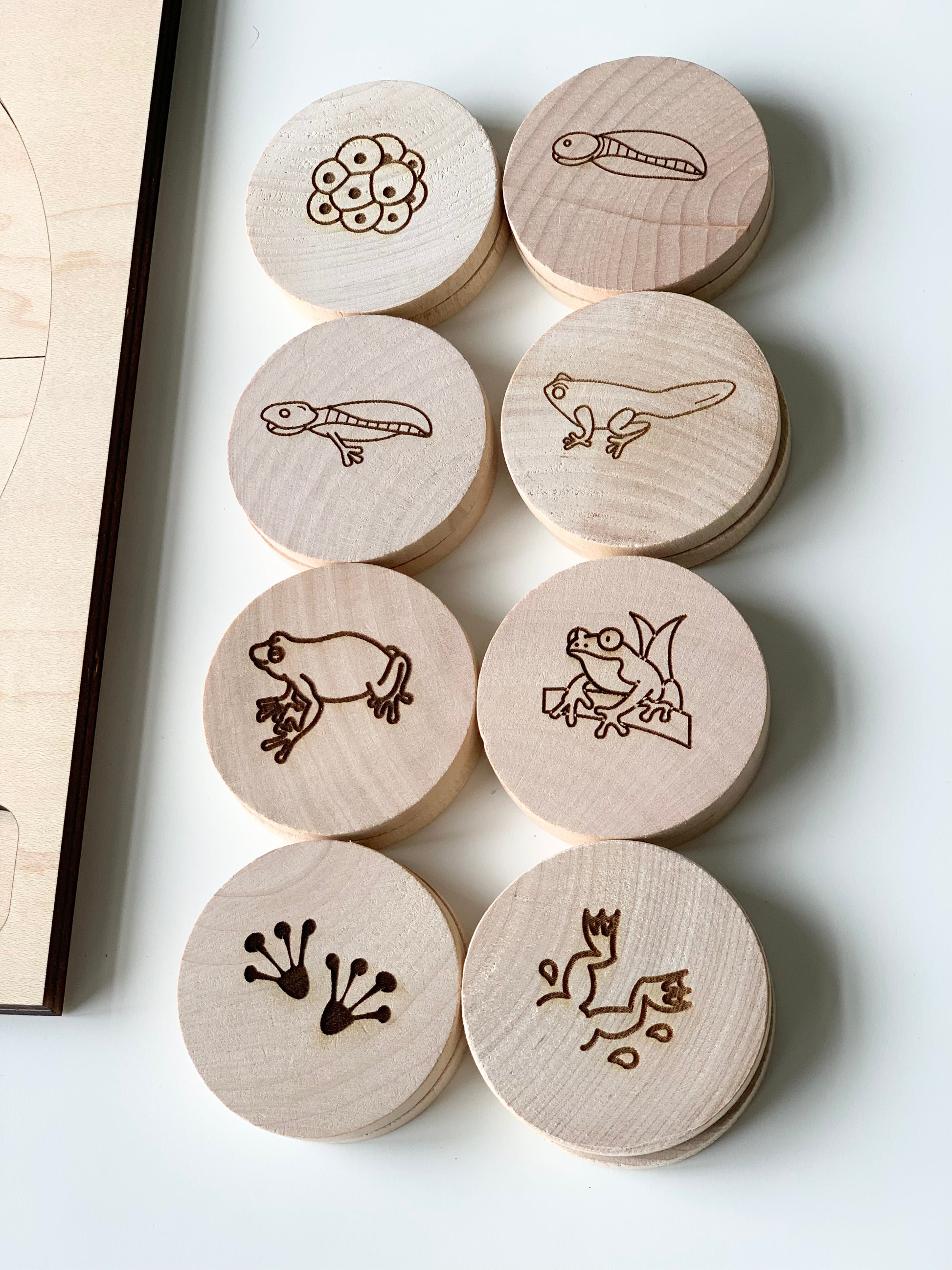 All images are laser burned into the wood, creating a permanent non toxic image. Order a set today to keep your little one busy.