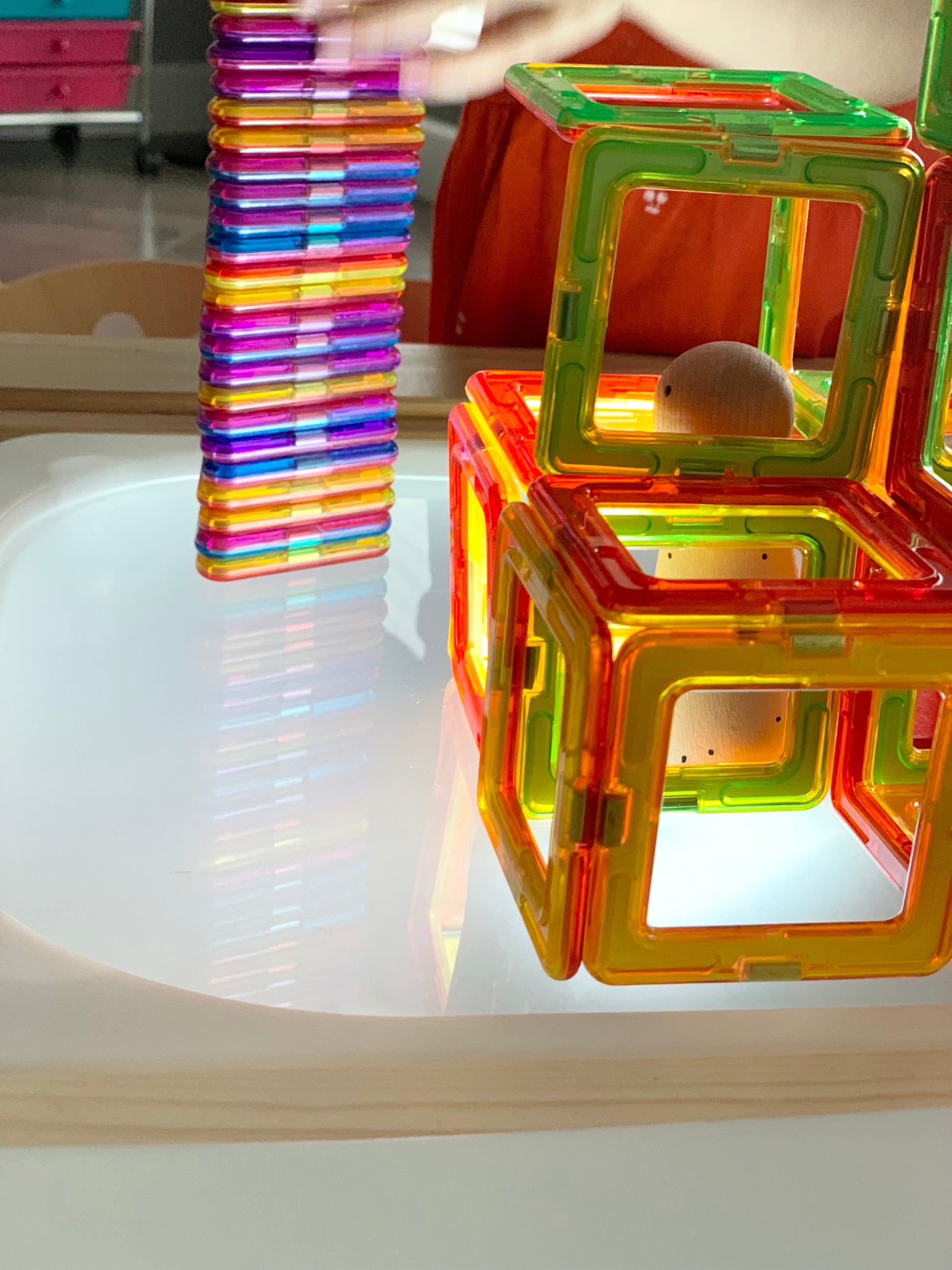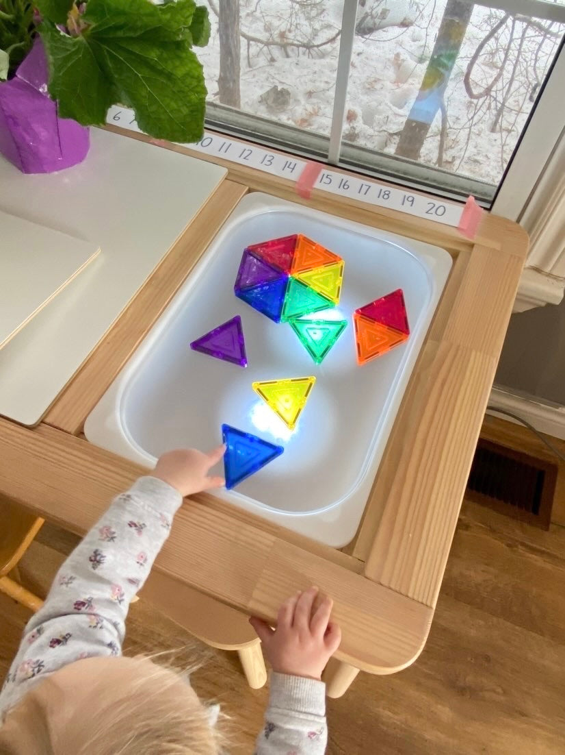 We love this insert to turn our sensory table into a light table! It works well with all the little dry erasable too!