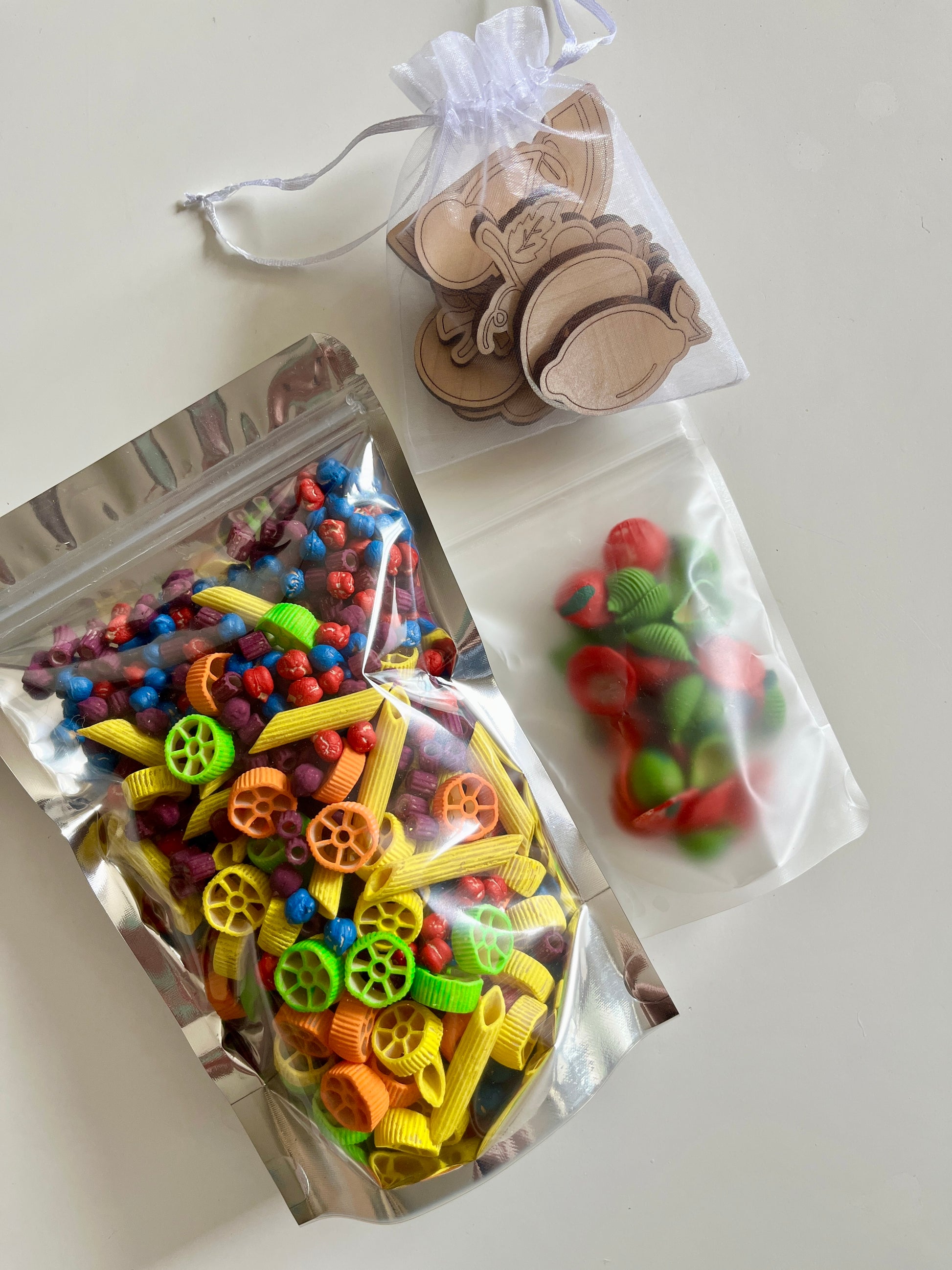 Wood Parts in this kit are a wicked deal and almost free, which is just another reason why we love this sensory kit. However, if you’d like the wood parts on their own - find them here. Perfect for sensory bins, small world play, and learning activities, this mix invites children to scoop, pour, and explore the textures of fruit. We pride ourselves on having sensory mixes with a wide variety of shapes and textures to explore. Pair it with our fruit trays, little dry erasables, felt fruit, or more for endless open-ended fun!