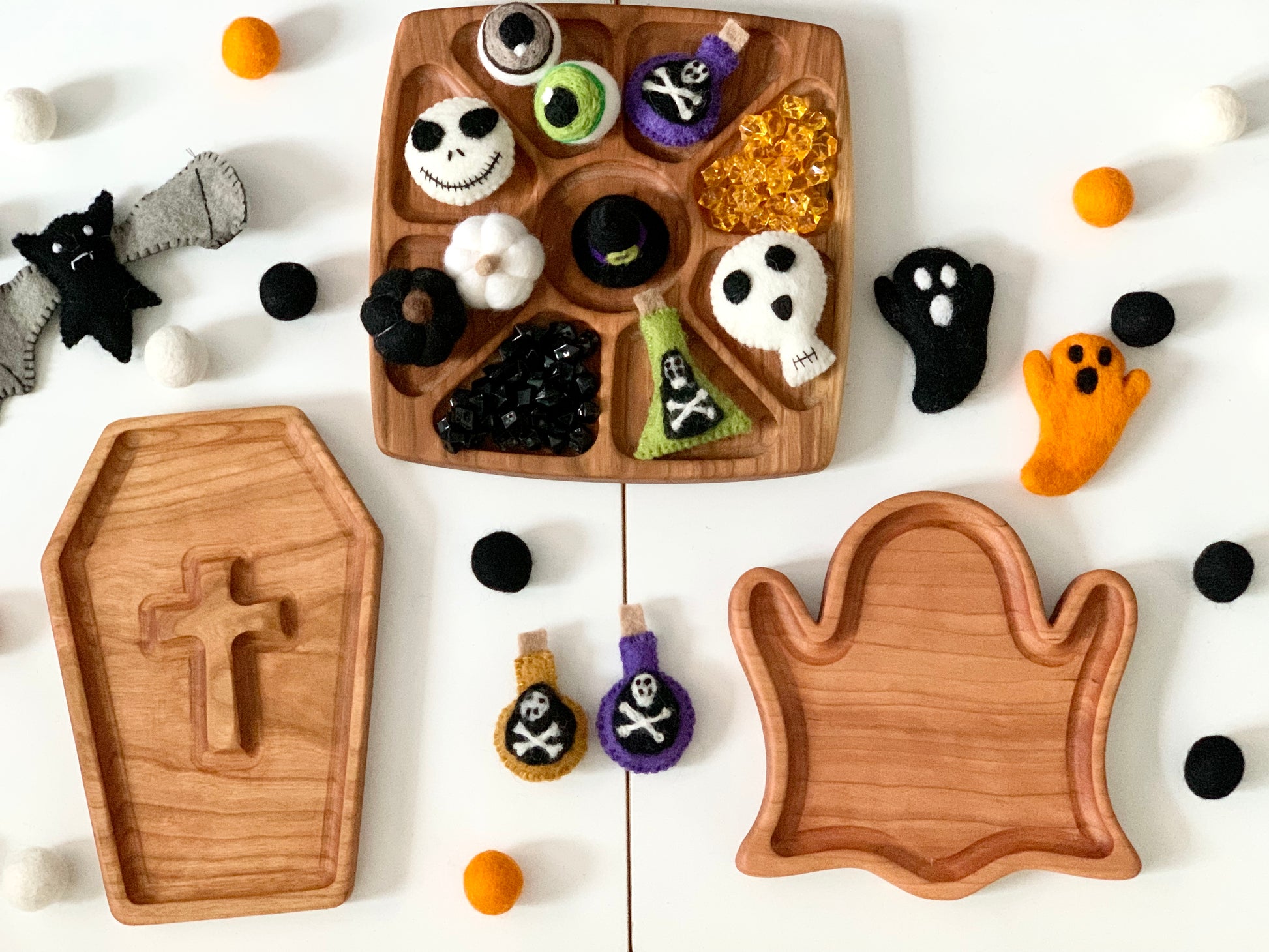 Wood Sensory Tray | Wood Ghost Plate | Halloween Toys | Wood Tray | Kids Gift | Montessori | Wood Toy | Flisat | Sensory Bin | Homeschool