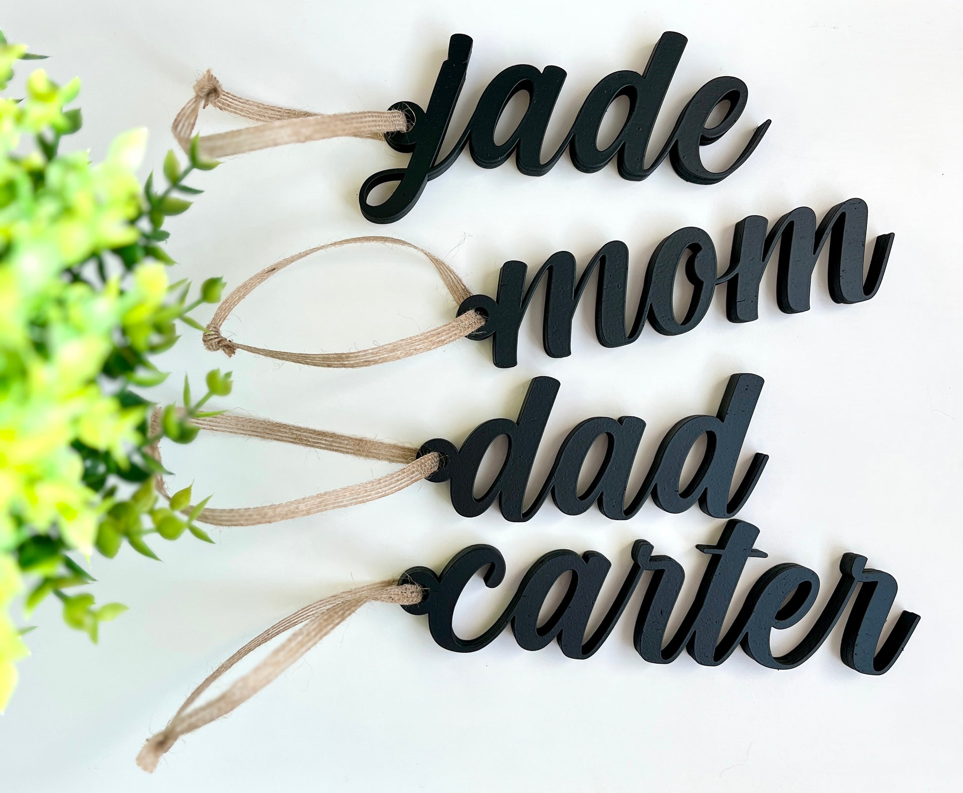 Lengths will vary depending on the name but for reference the names in the photos are between 6 and 11 inches in length