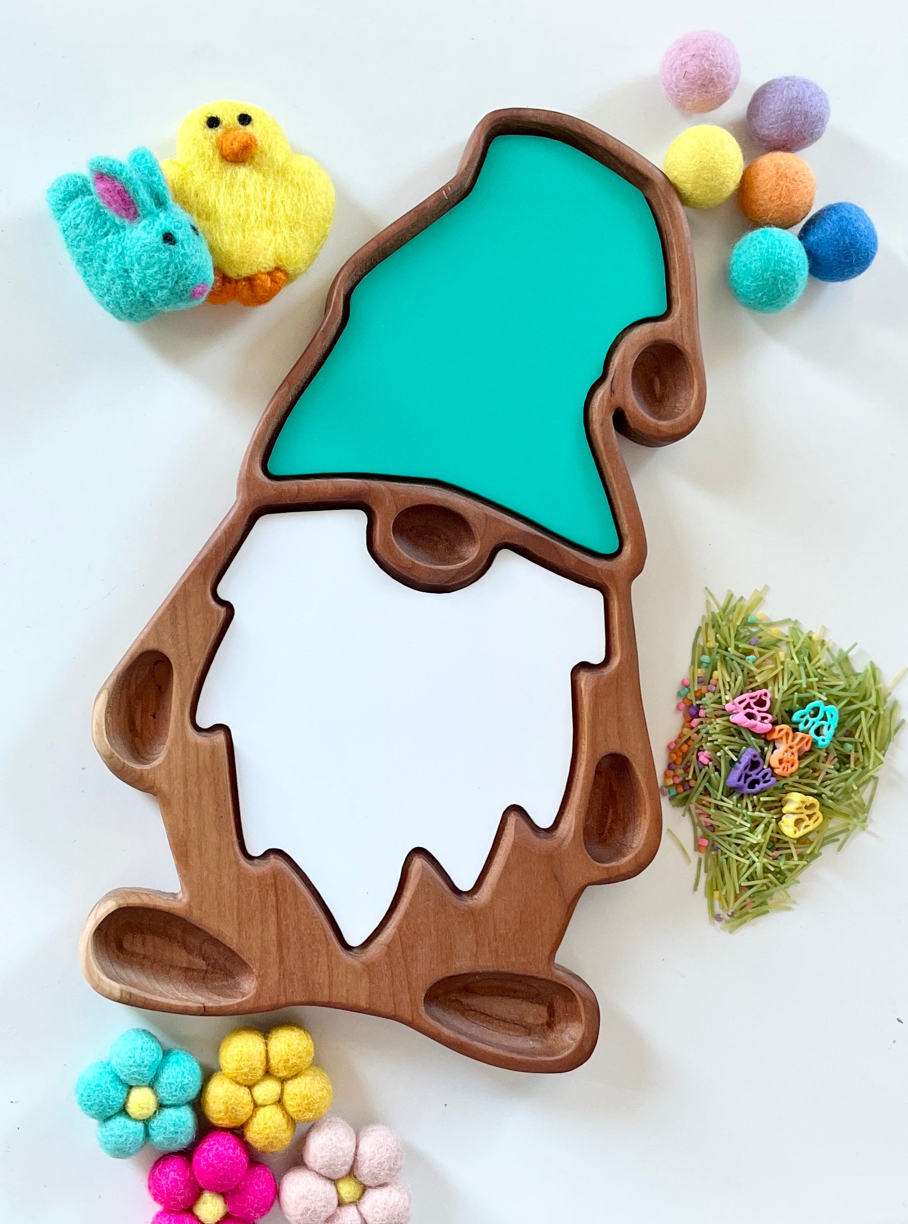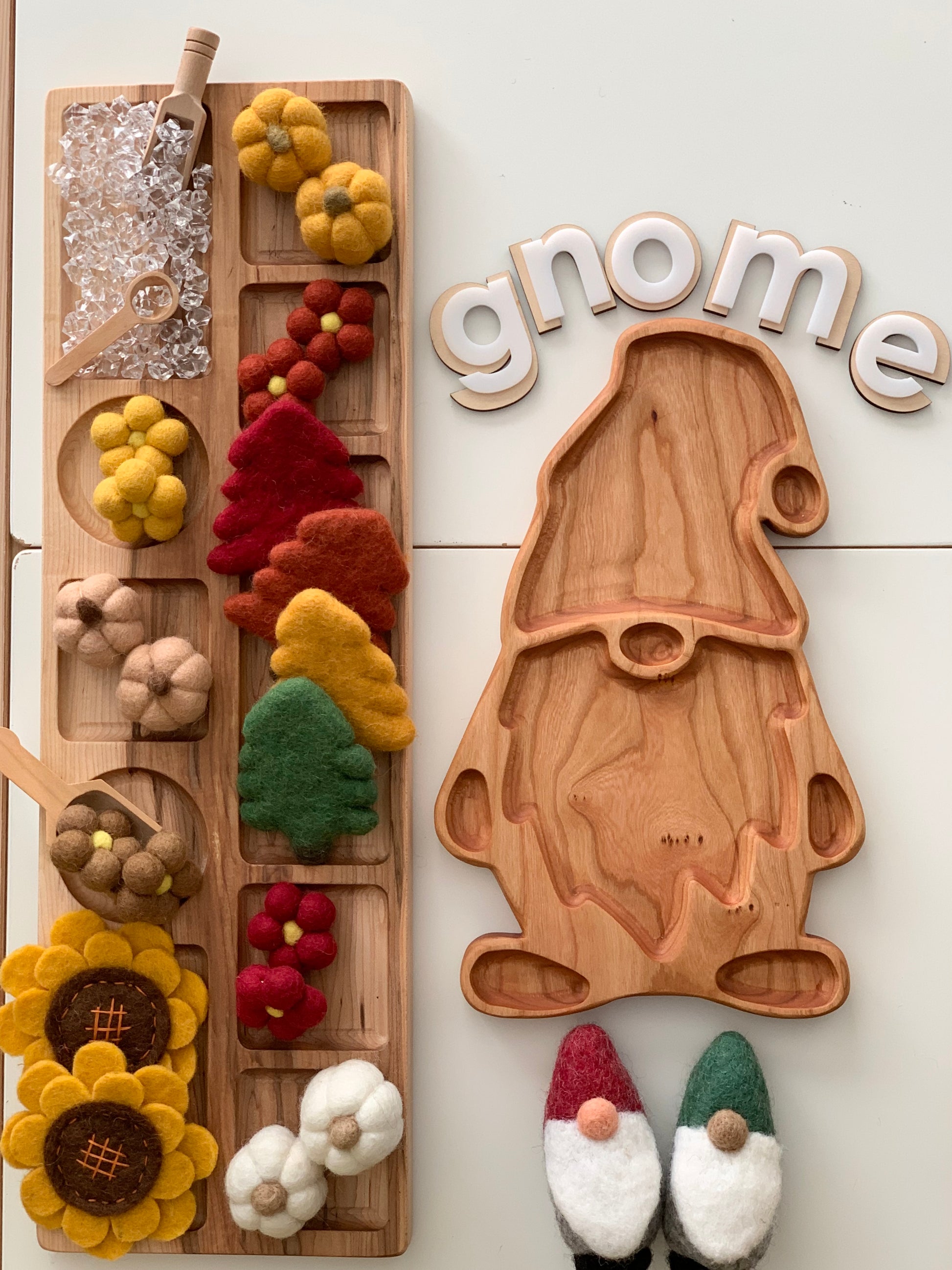 We love our gnomie tray! He is so fun for sensory play, decorating for all seasons and learning!